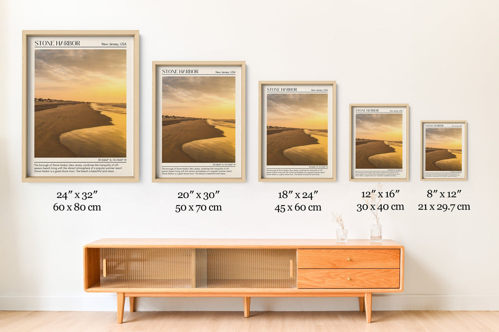 At Joyie, we understand the importance of preserving your travel memories. Our collection of Stone Harbor posters and wall art is designed to bring the charm and beauty of this family-friendly destination into your home. From city art prints to Stone Harbor paintings, each piece reflects the vibrant city color palette and unique character of Stone Harbor.