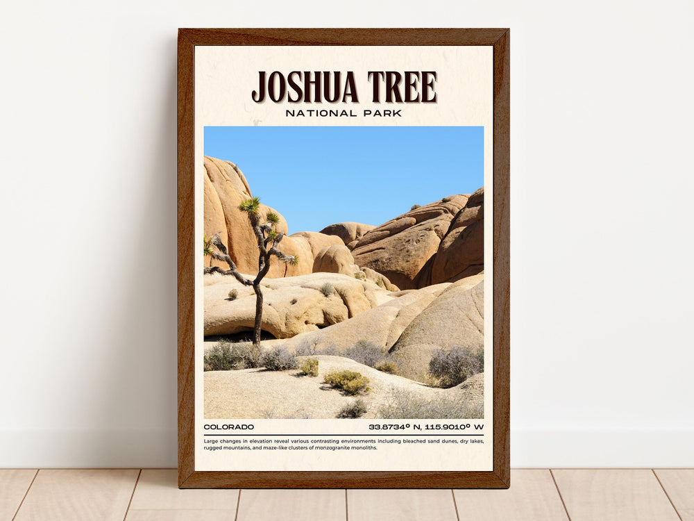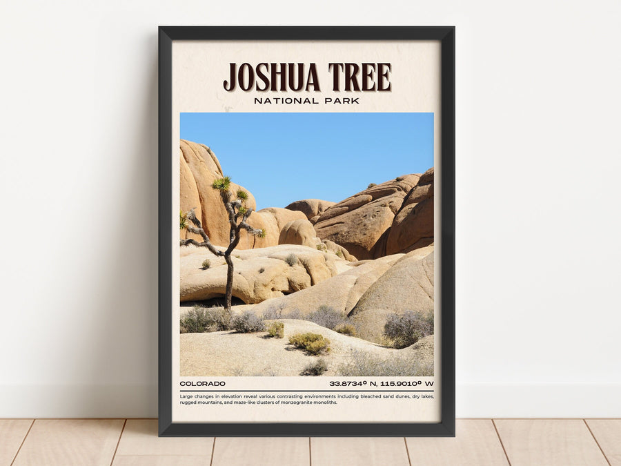 Joshua Tree National Park offers an abundance of natural wonders and activities that will leave you in awe. Immerse yourself in the beauty of this desert paradise, and don't forget to bring a piece of it home with you. With vintage wall art, canvas prints, framed posters, and captivating photographs from Joyie.co, you can cherish the memories of Joshua Tree forever. Whether you're an outdoor enthusiast or an art lover, let Joshua Tree's captivating landscapes inspire and captivate you. Start planning your visit today and prepare to embark on an unforgettable adventure!