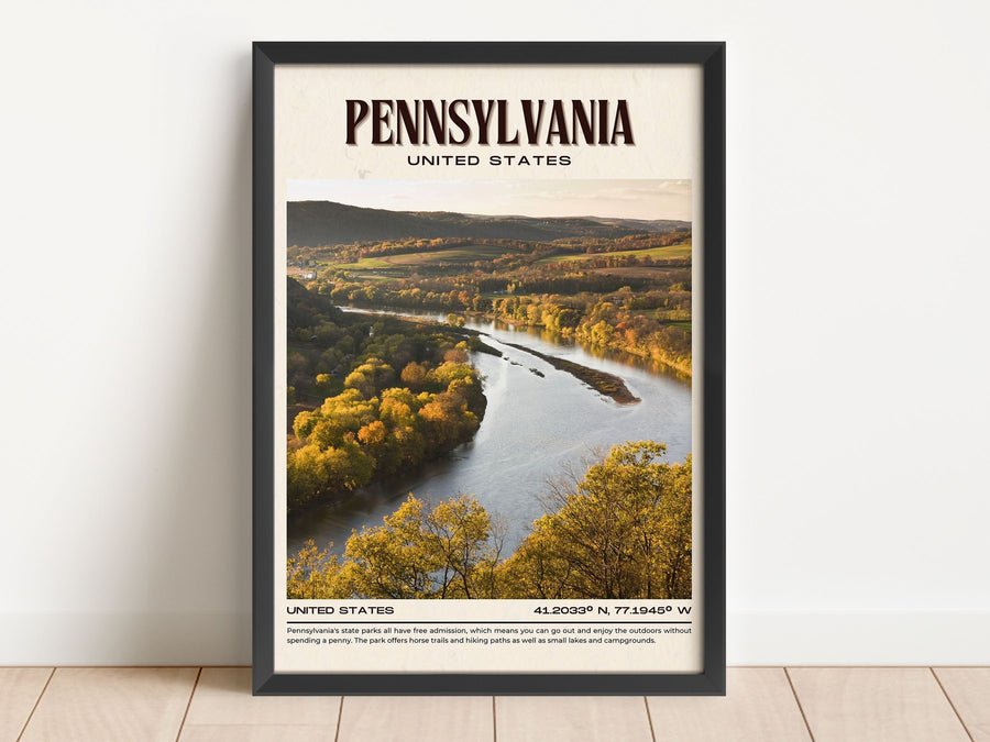 Pennsylvania offers a myriad of experiences for travelers seeking history, natural beauty, and urban excitement. With our collection of city posters, art prints, and wall art capturing the essence of Pennsylvania, you can bring the magic of the Keystone State into your home. Explore Philadelphia's historic treasures, embrace the charm of Amish Country, marvel at the natural splendor of the Pocono Mountains, immerse yourself in Pittsburgh's urban vibe, and get lost in the stunning Ricketts Glen State Park. Begin your Pennsylvania journey with Joyie.co, where art meets travel, and create memories that will last a lifetime.