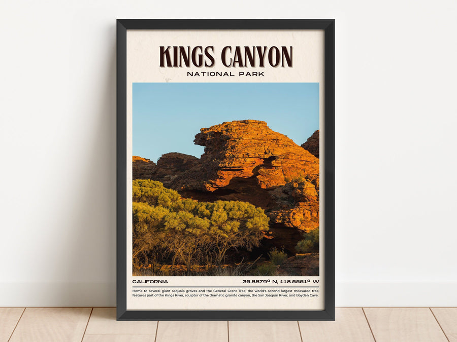- Camp under the Starlit Sky: Experience the magic of Kings Canyon after dark by camping beneath the starlit sky in one of the park's designated campgrounds. Fall asleep to the soothing sounds of nature and awaken to the soft glow of sunrise illuminating the rugged landscape. Whether you're pitching a tent, parking an RV, or sleeping under the stars, camping in Kings Canyon offers a unique opportunity to connect with nature. Bring the spirit of the wilderness into your home with a captivating Kings Canyon poster, reminding you of the adventures that await in this legendary national park.