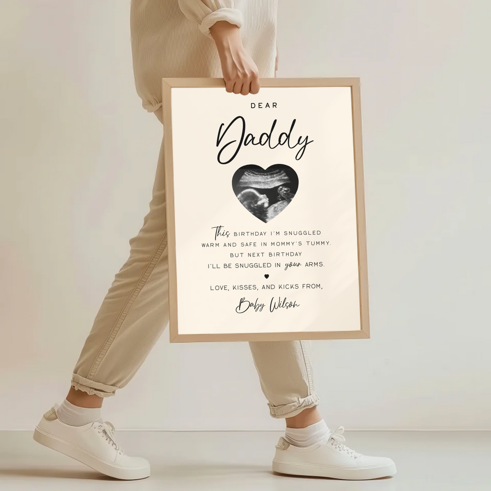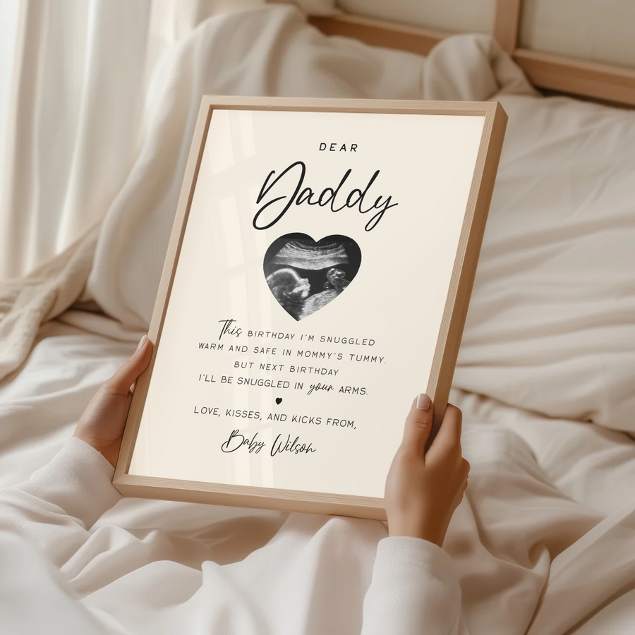 Celebrate the journey to fatherhood with our Ultrasound Keepsake Print — a heartfelt gift for the dad-to-be. Featuring your baby’s ultrasound photo, a custom message, and his new title of “Dad,” this personalized print is the perfect way to mark his very first Father’s Day.