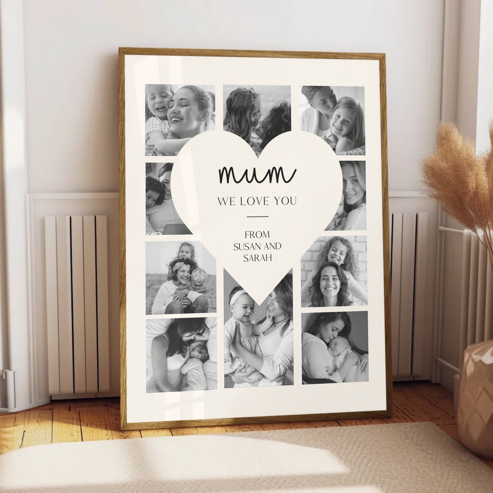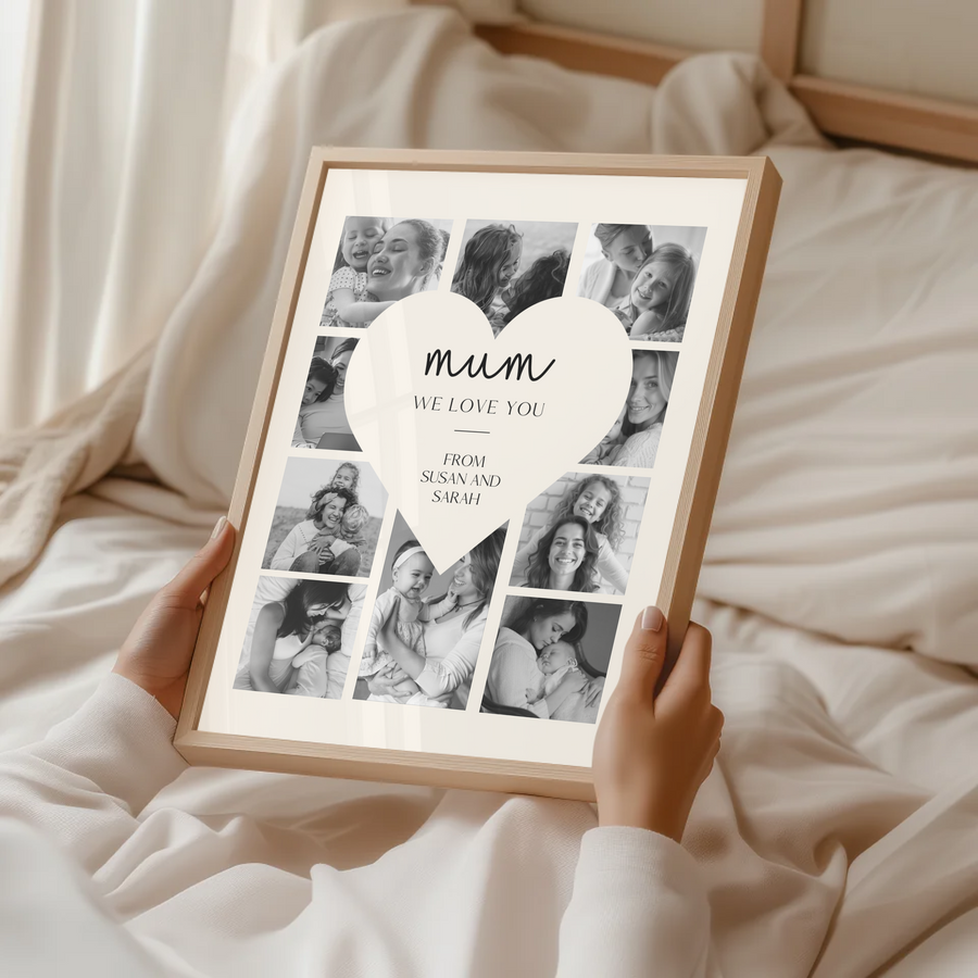 Mark a beautiful milestone with our Collage Heart Poster – a thoughtful and unique Mother’s Day gift for first-time mums. Designed in a heart shape filled with your favourite photos, this print is a touching way to capture memories from pregnancy to baby’s first smiles.