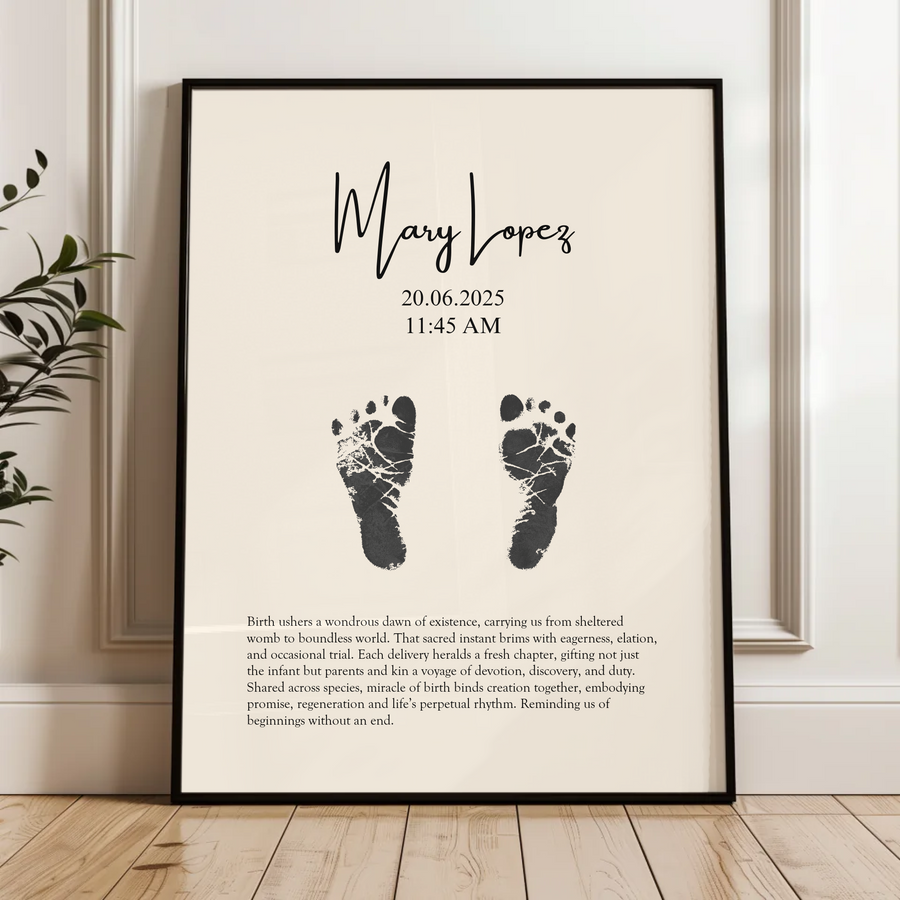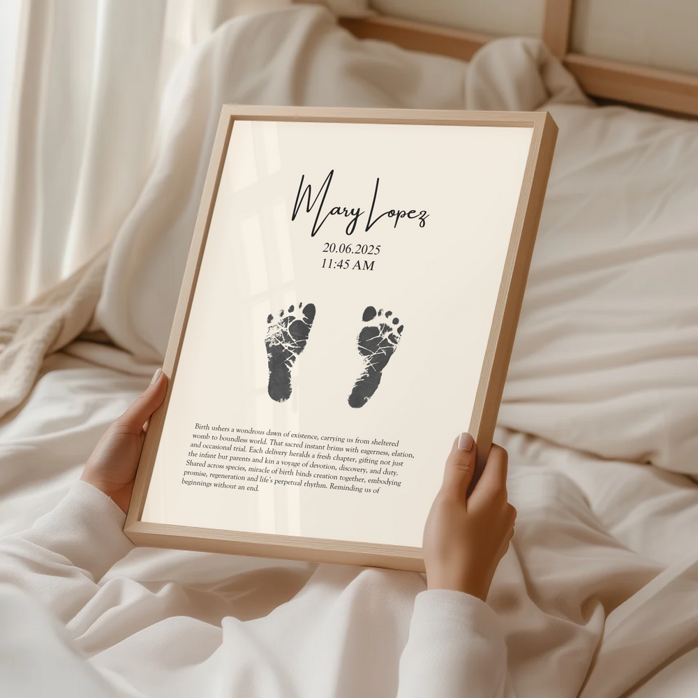 Celebrate your little one’s arrival with this Personalised Pastel Baby Footprint Art — a soft, minimal keepsake that captures the magic of those tiny toes. Featuring a gentle pastel design, this custom print includes your baby's name, birth details, and realistic footprint-style artwork for a timeless nursery piece.