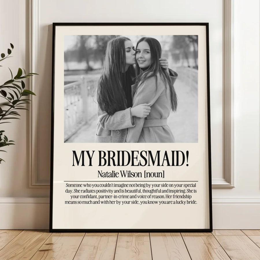 Personalized Bridesmaid Definition Poster, Gift from Bride, Wedding Party Cus...