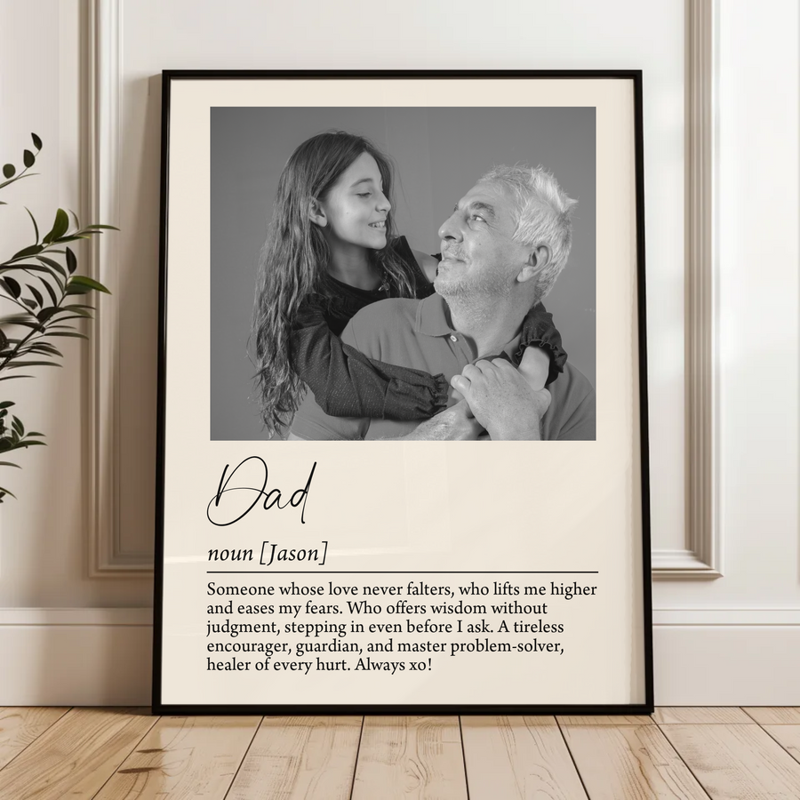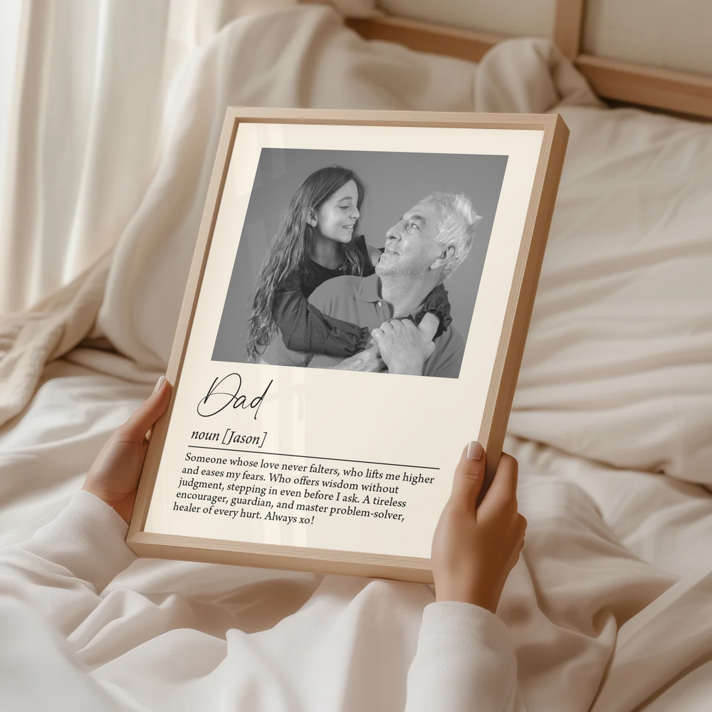 Celebrate the man who’s always been there with our Dad Definition Wall Art — a personalized print that captures what makes your dad one of a kind. Styled like a dictionary entry, this custom artwork includes your own heartfelt definition, name(s), and message to make it truly special.