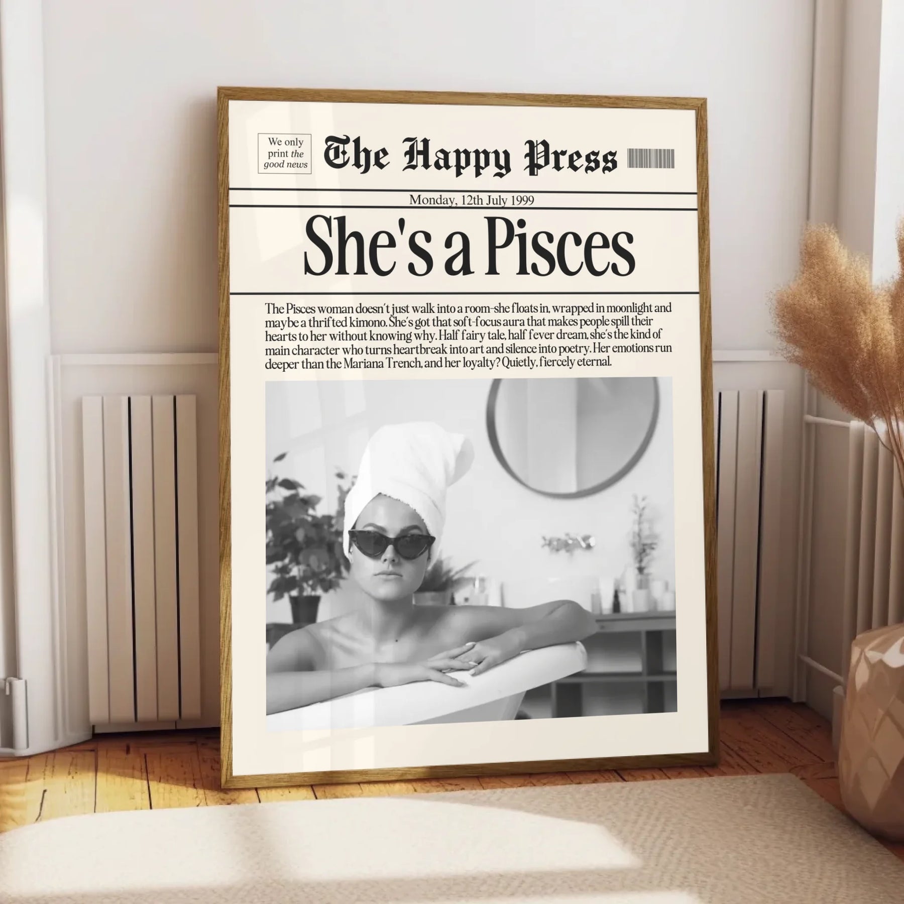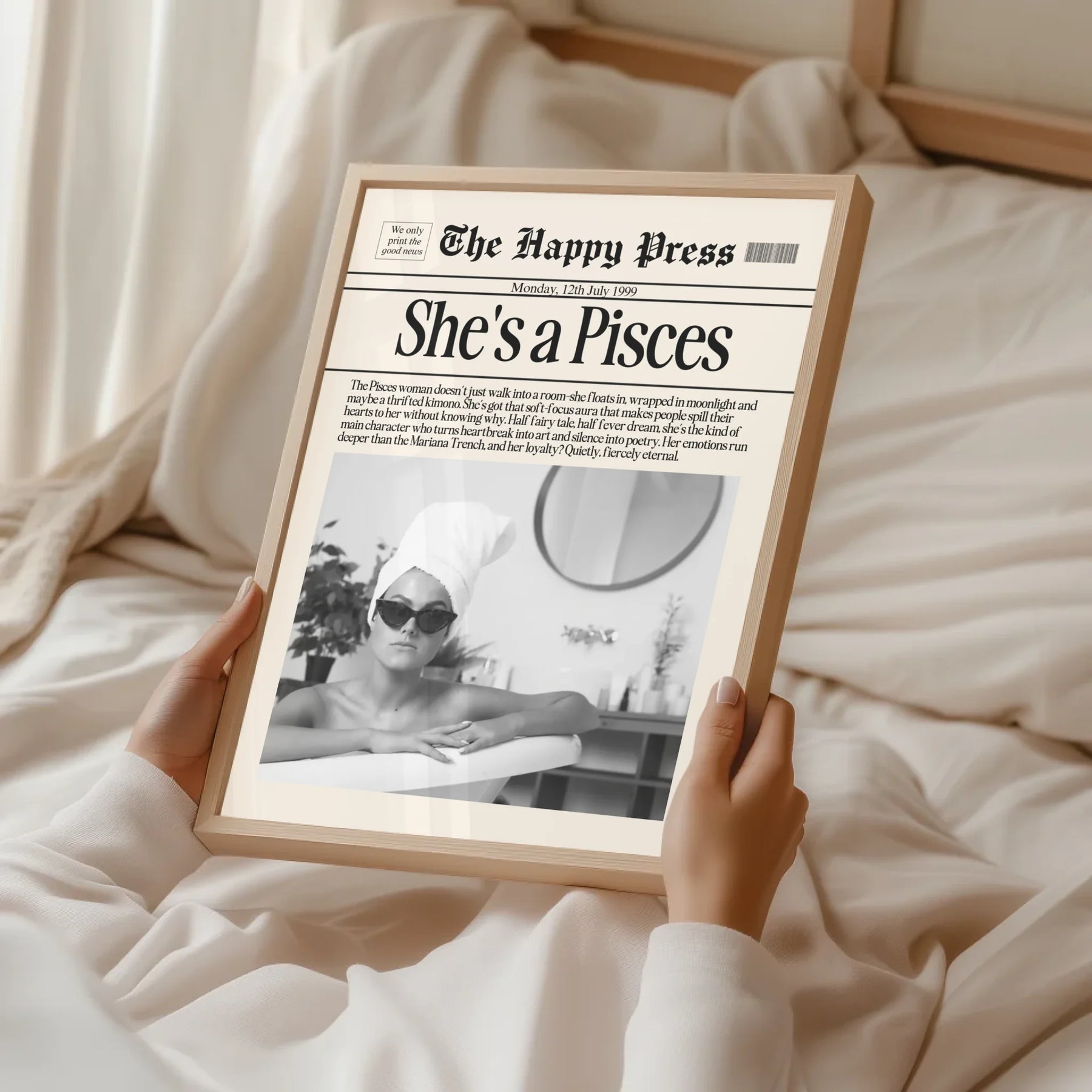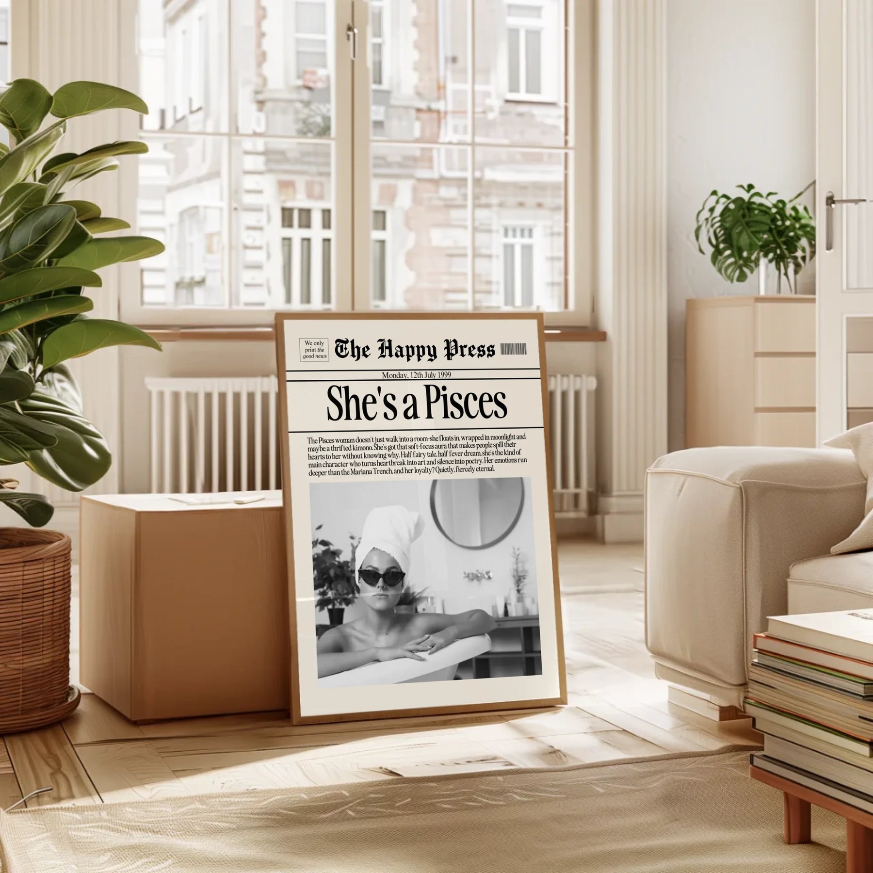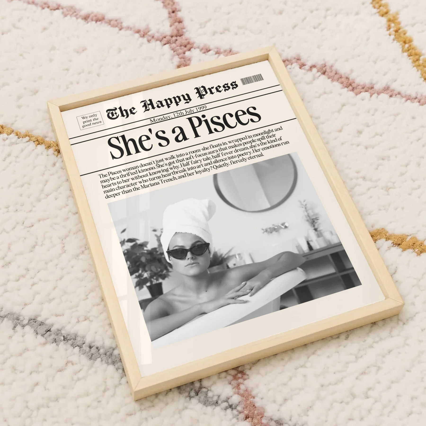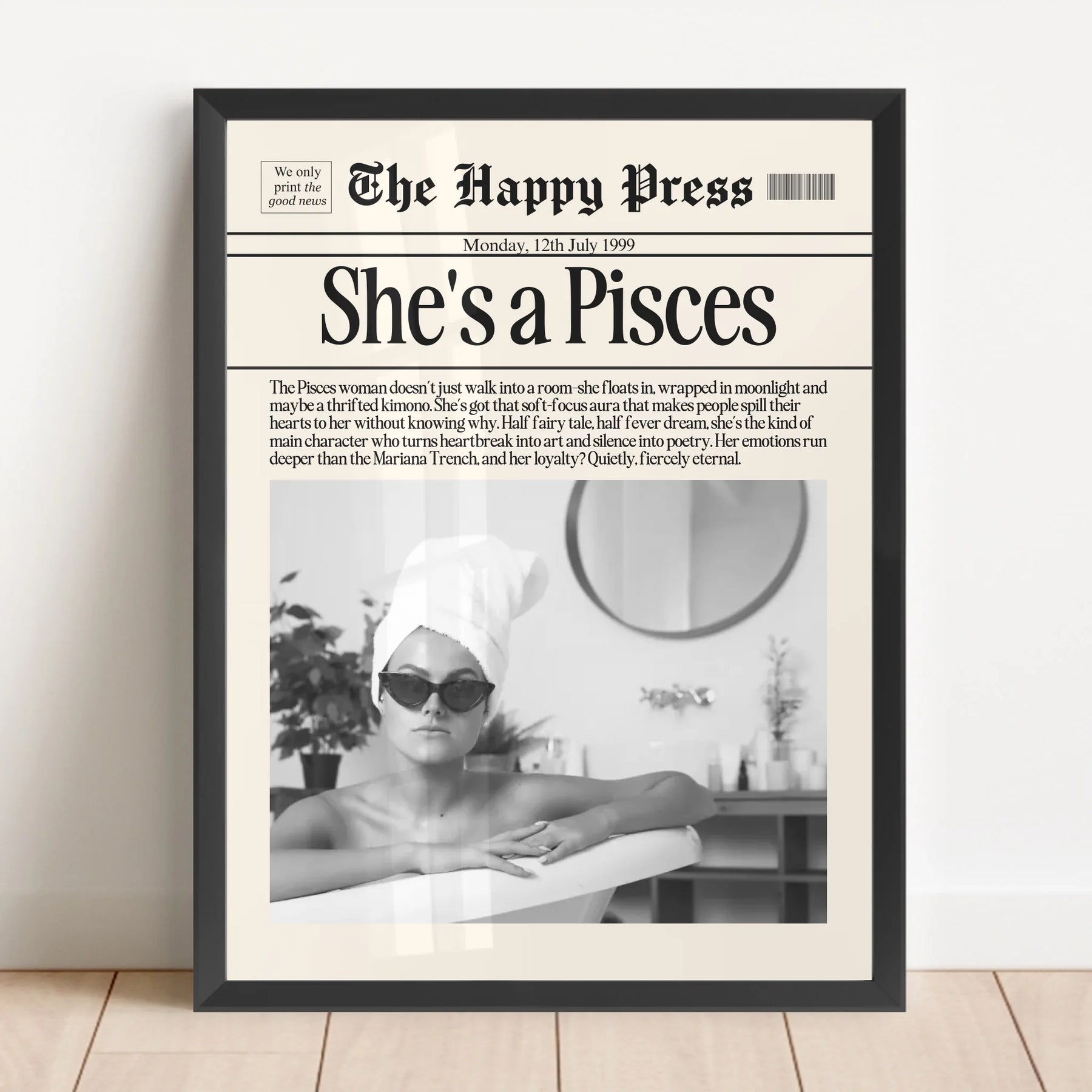 Custom Pisces Zodiac Print, Wall Art, Girly Astrology Room Decor, Newspaper M...