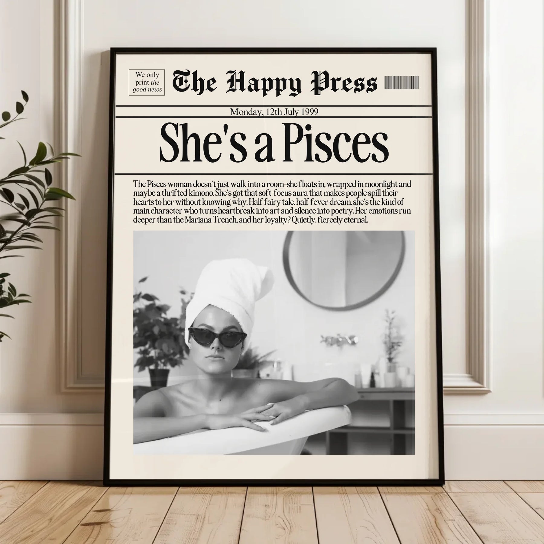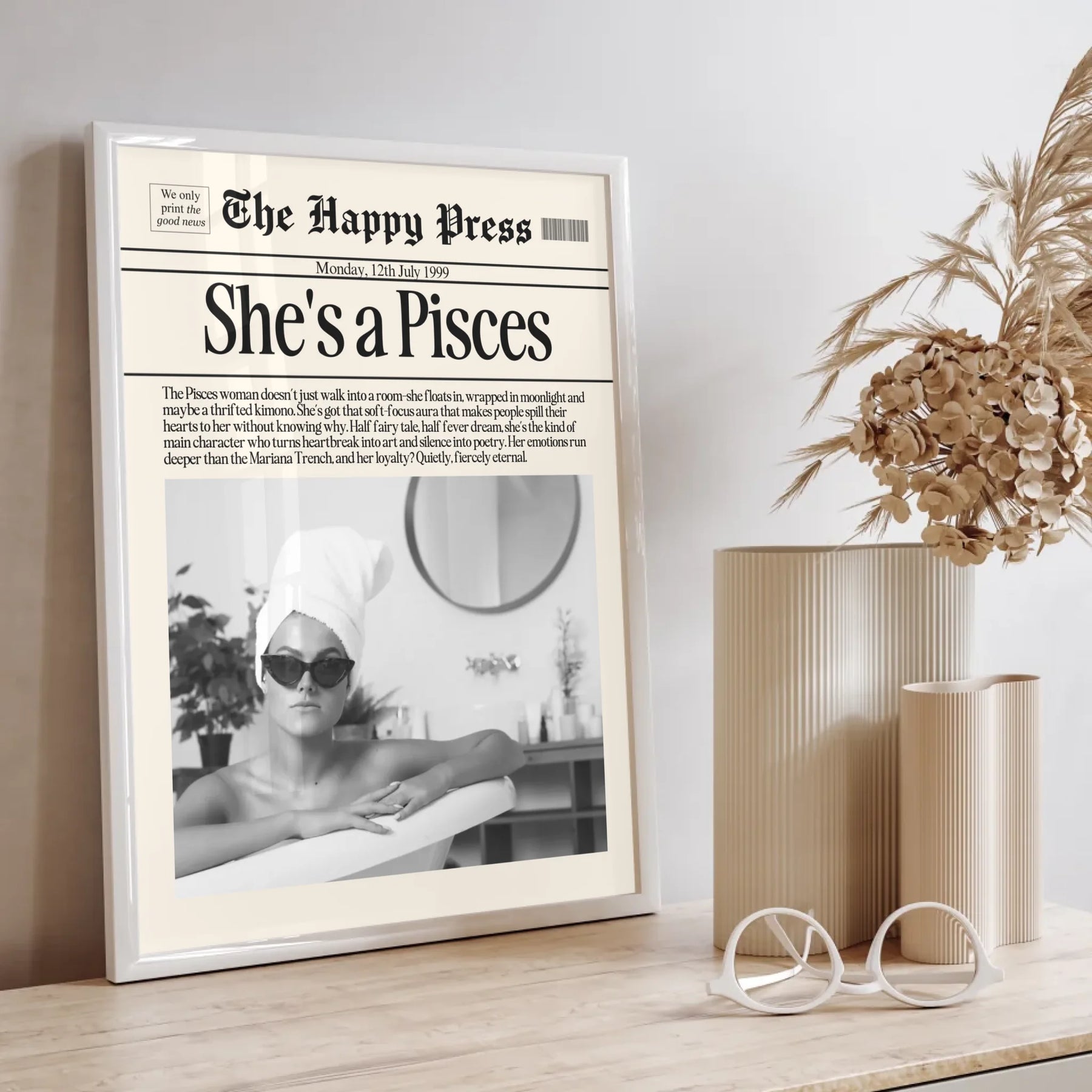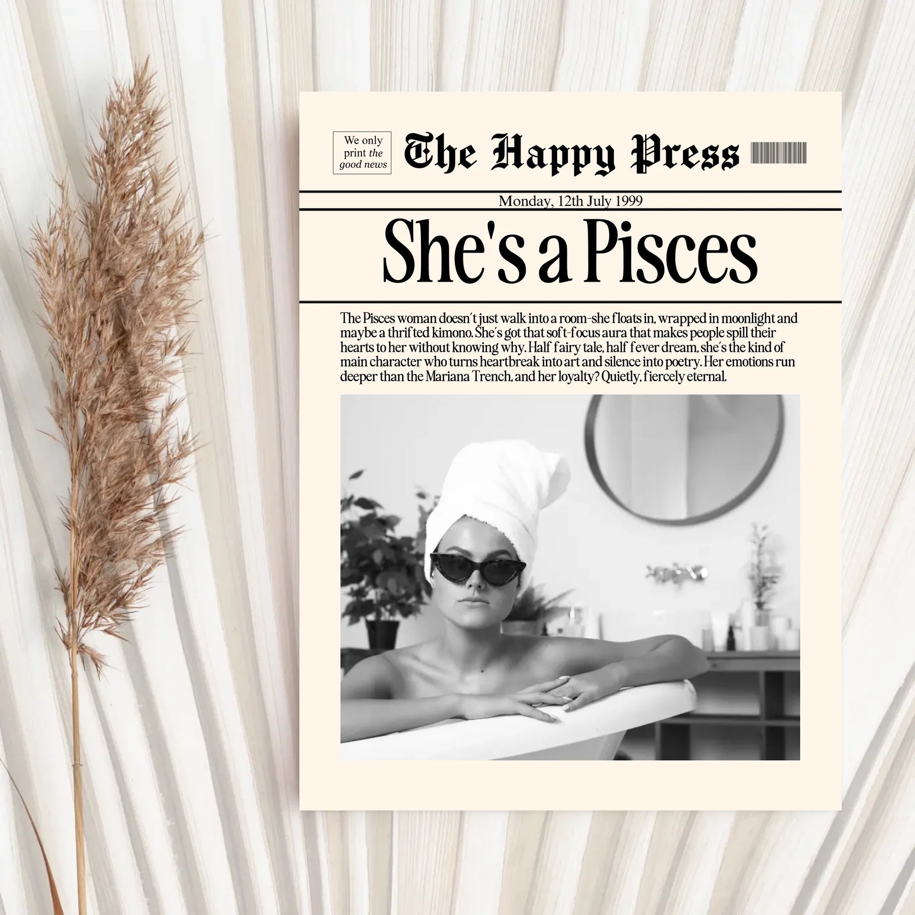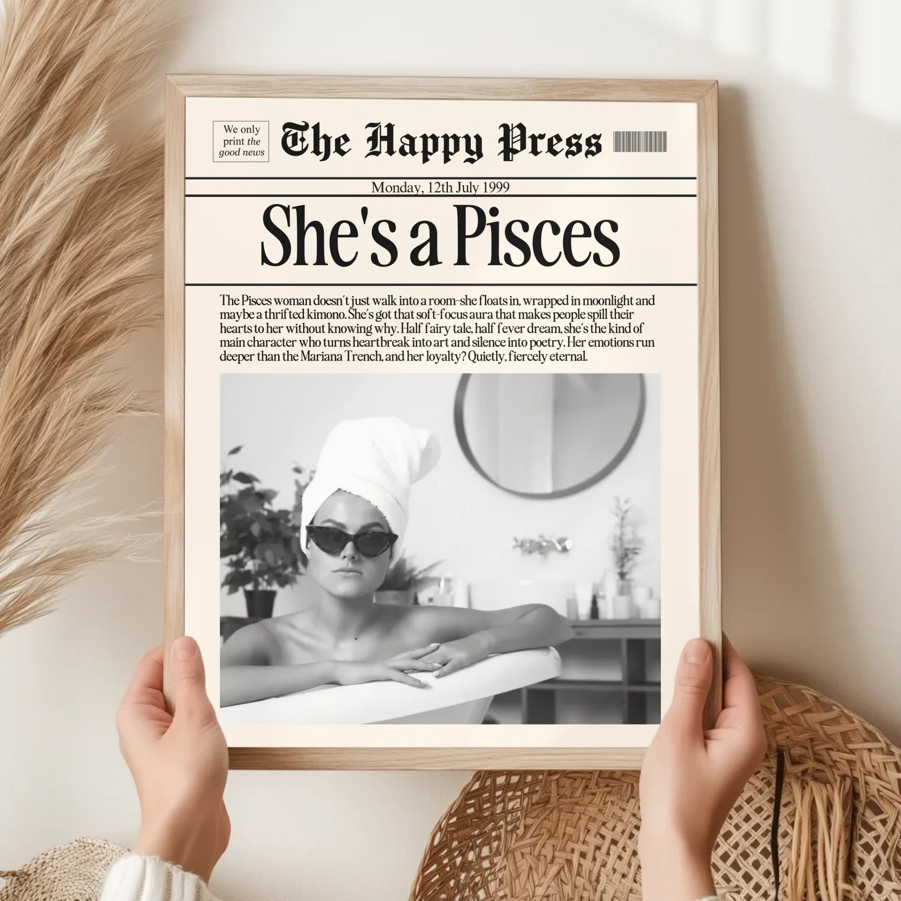 Custom Pisces Zodiac Print, Wall Art, Girly Astrology Room Decor, Newspaper M...