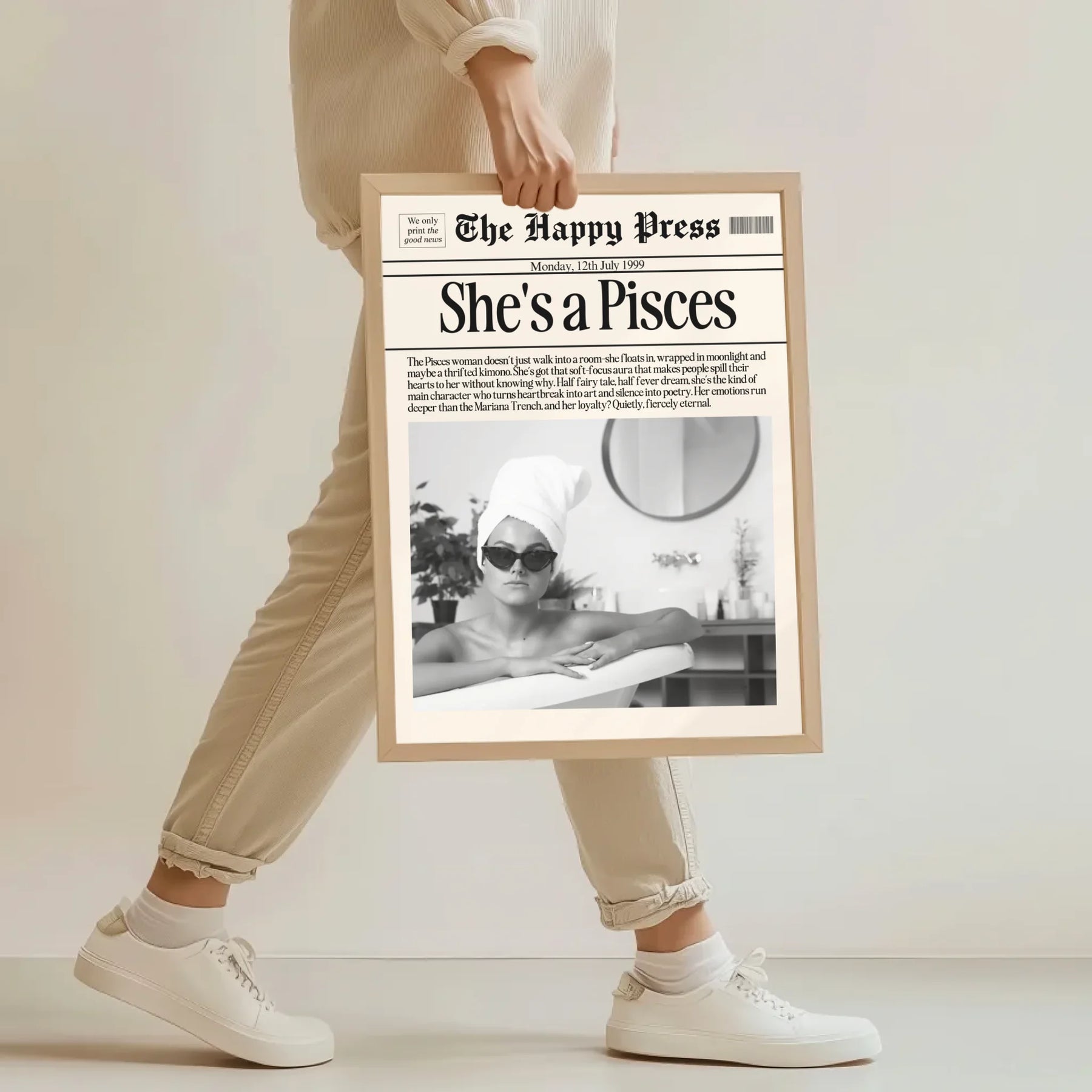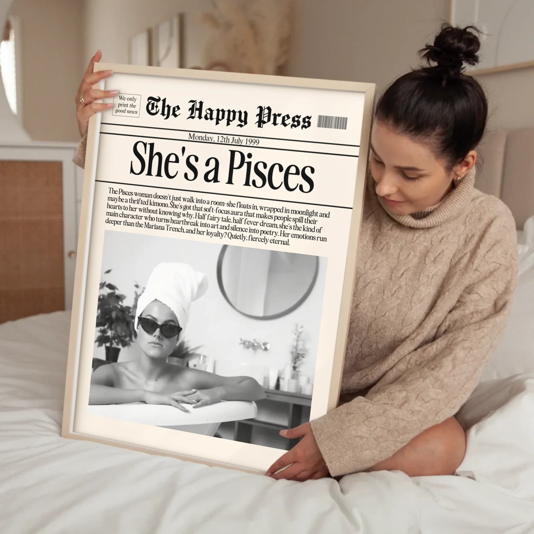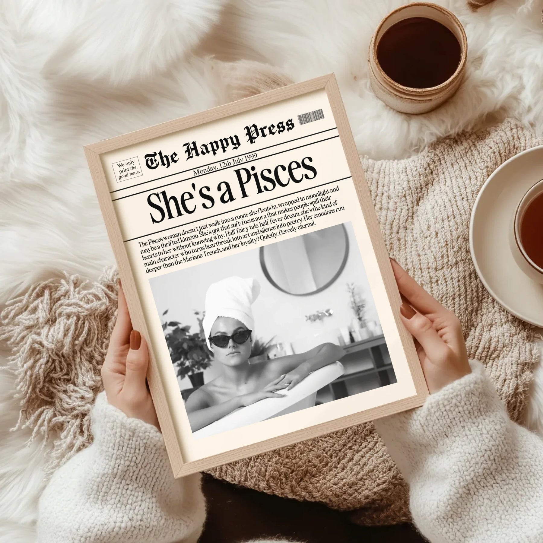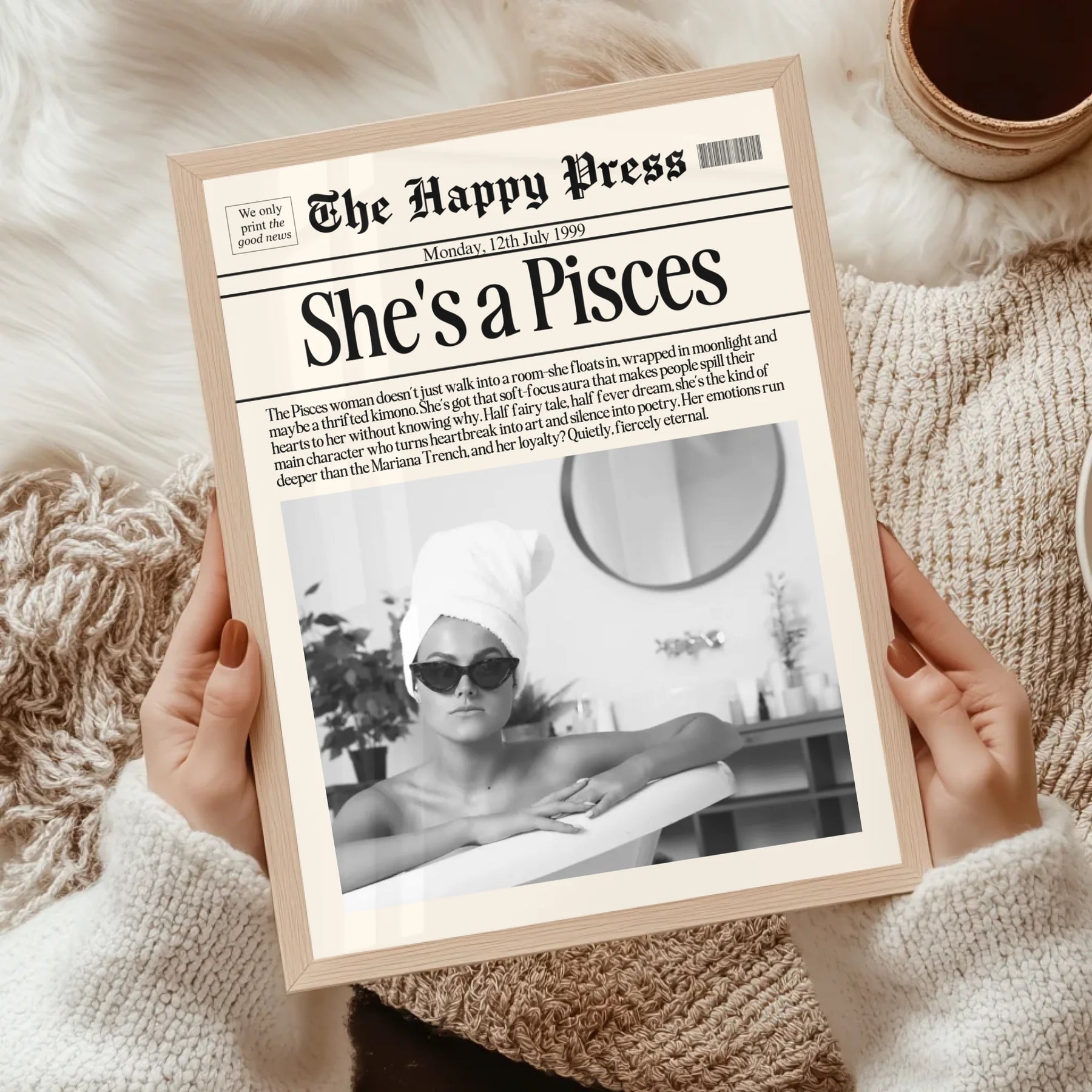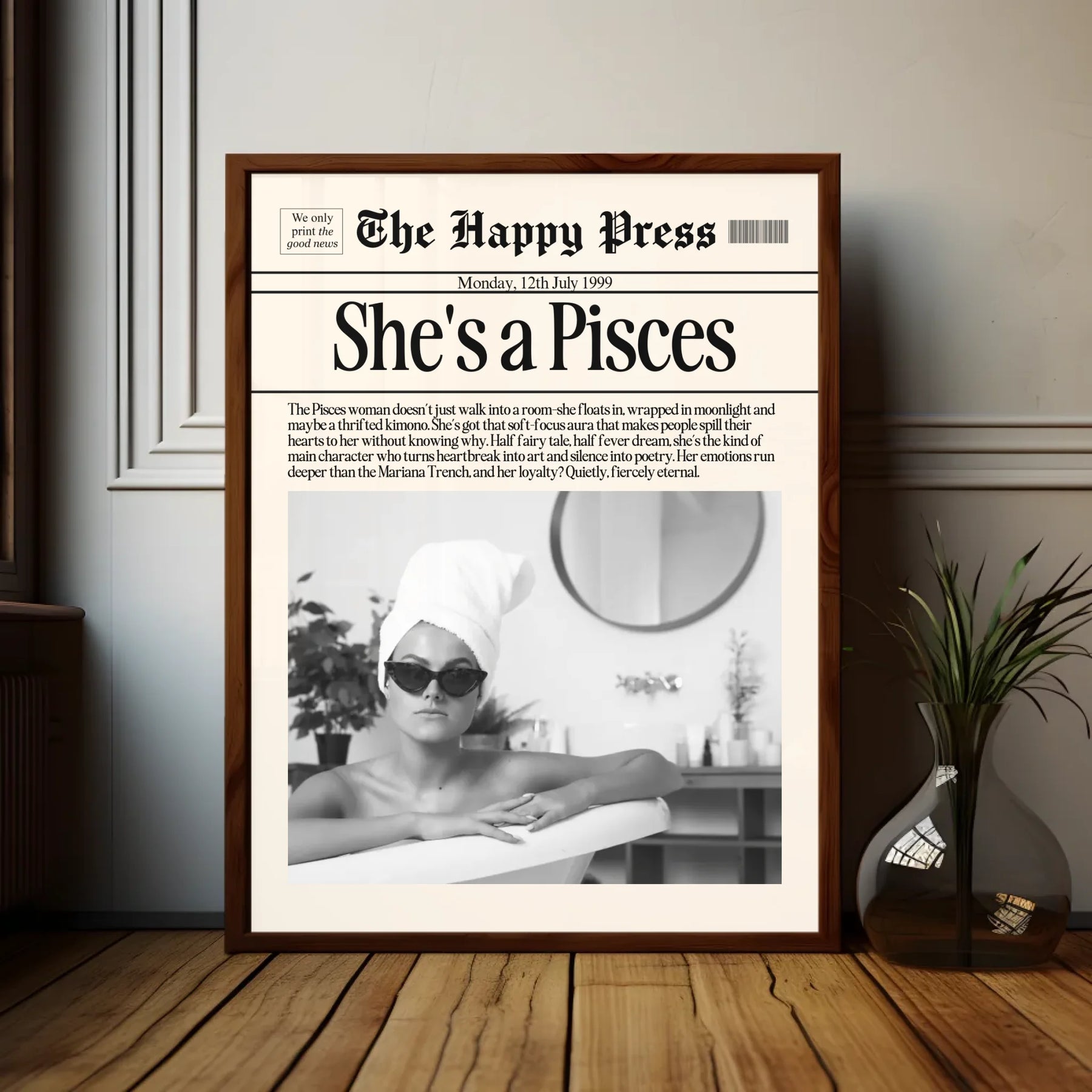 Custom Pisces Zodiac Print, Wall Art, Girly Astrology Room Decor, Newspaper M...