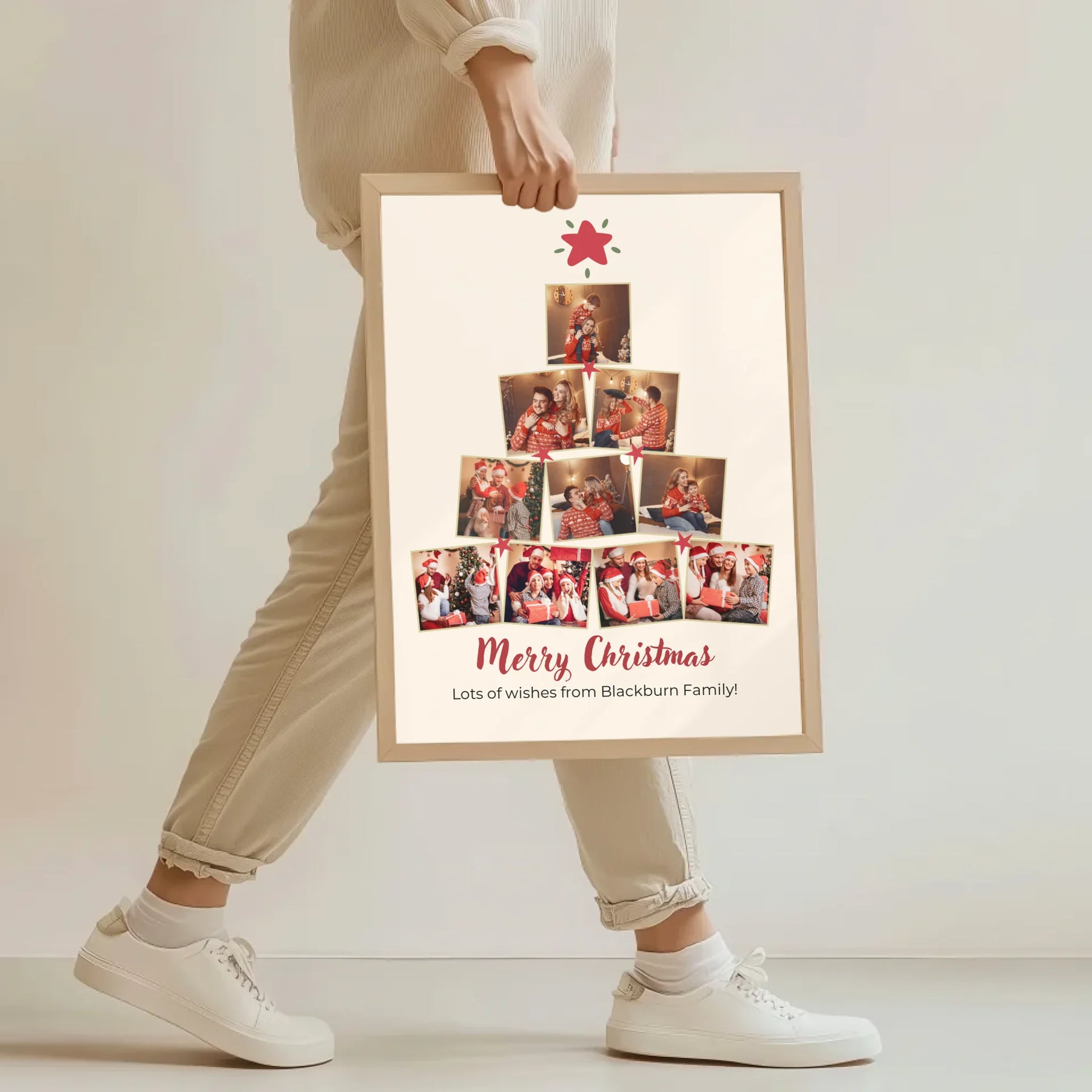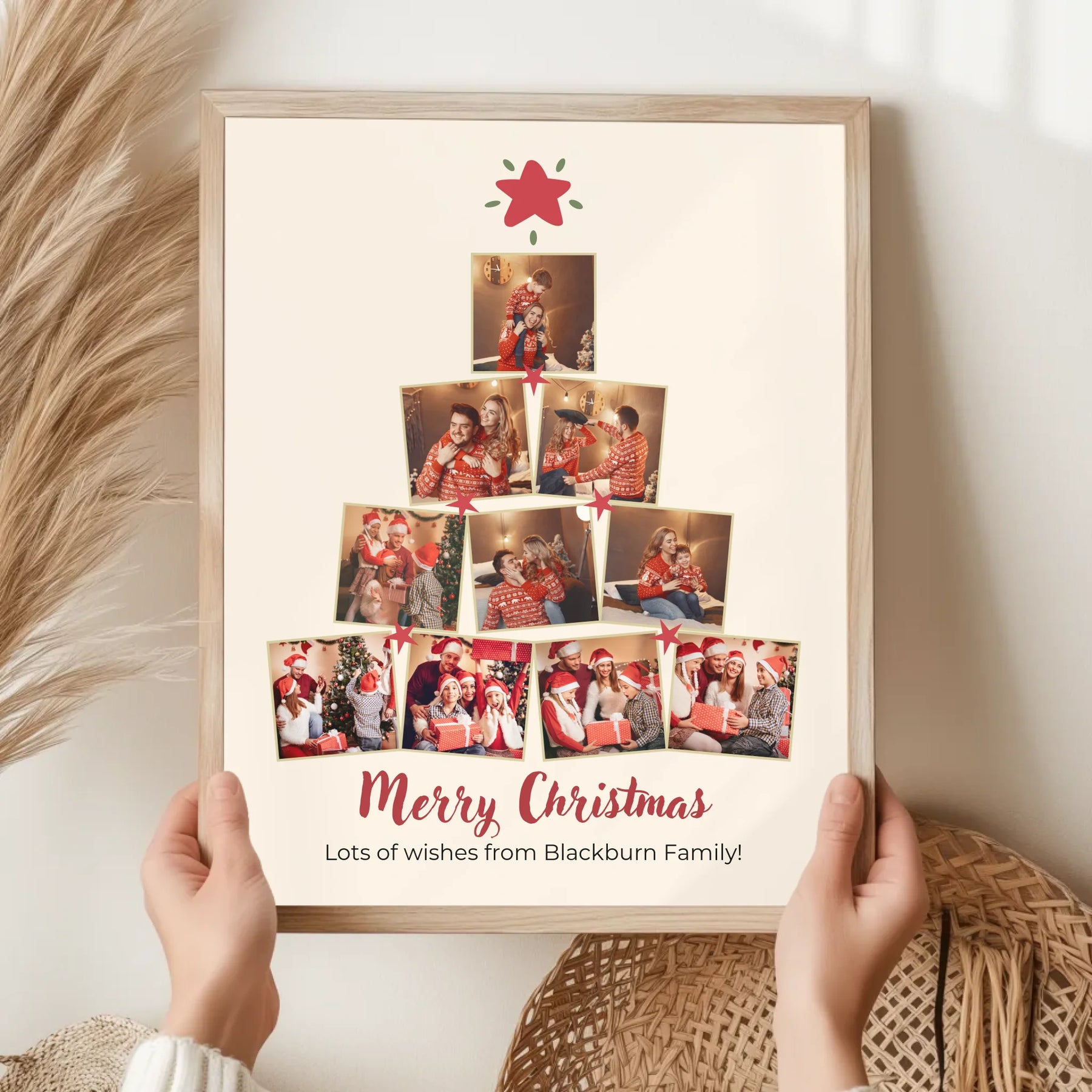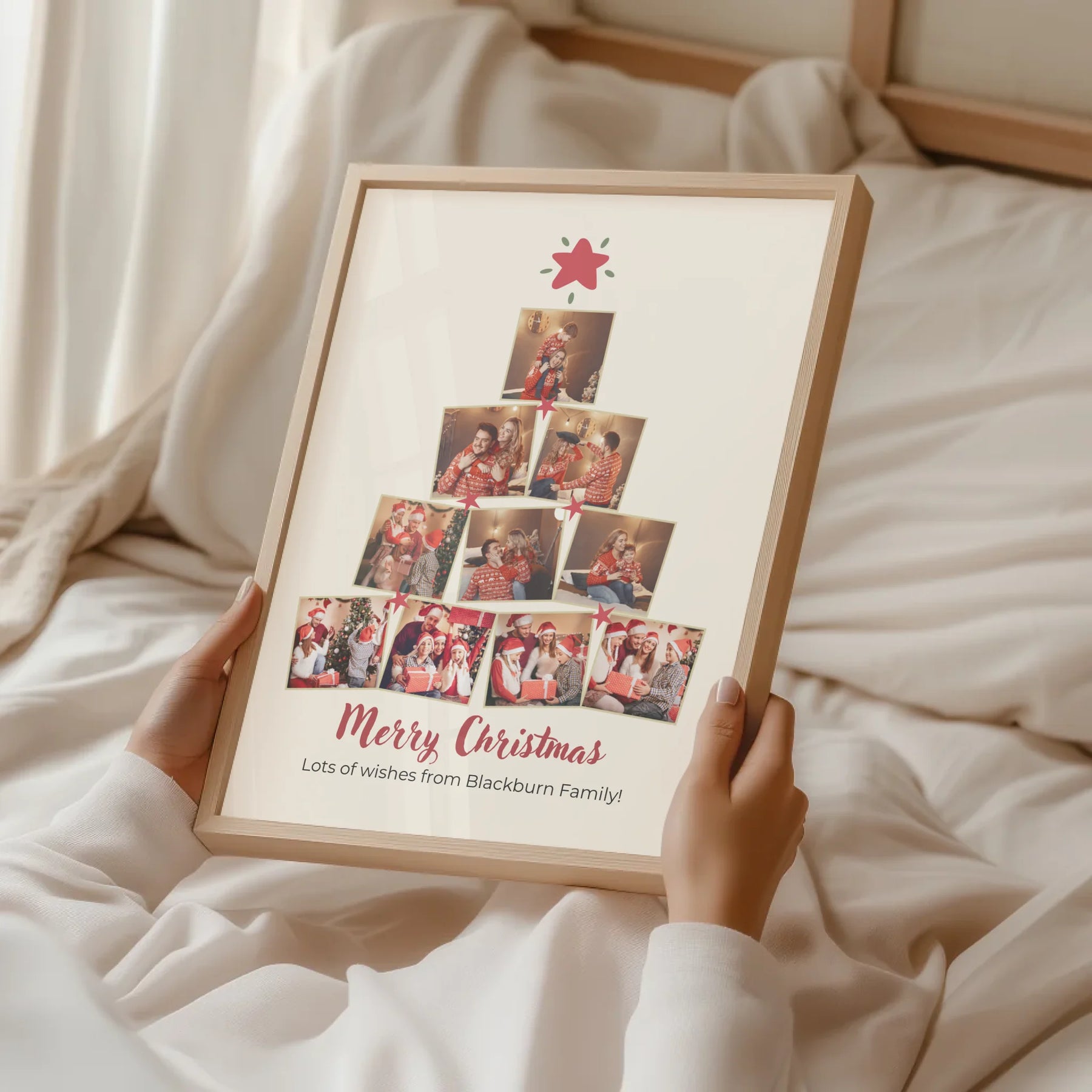 Make this season unforgettable with our Christmas Tree Photo Collage - a festive and personalized print that turns your favorite photos into a beautifully arranged tree-shaped design. Featuring your selected images and a custom message, this unique holiday keepsake brings warmth, love, and cheer to any space.