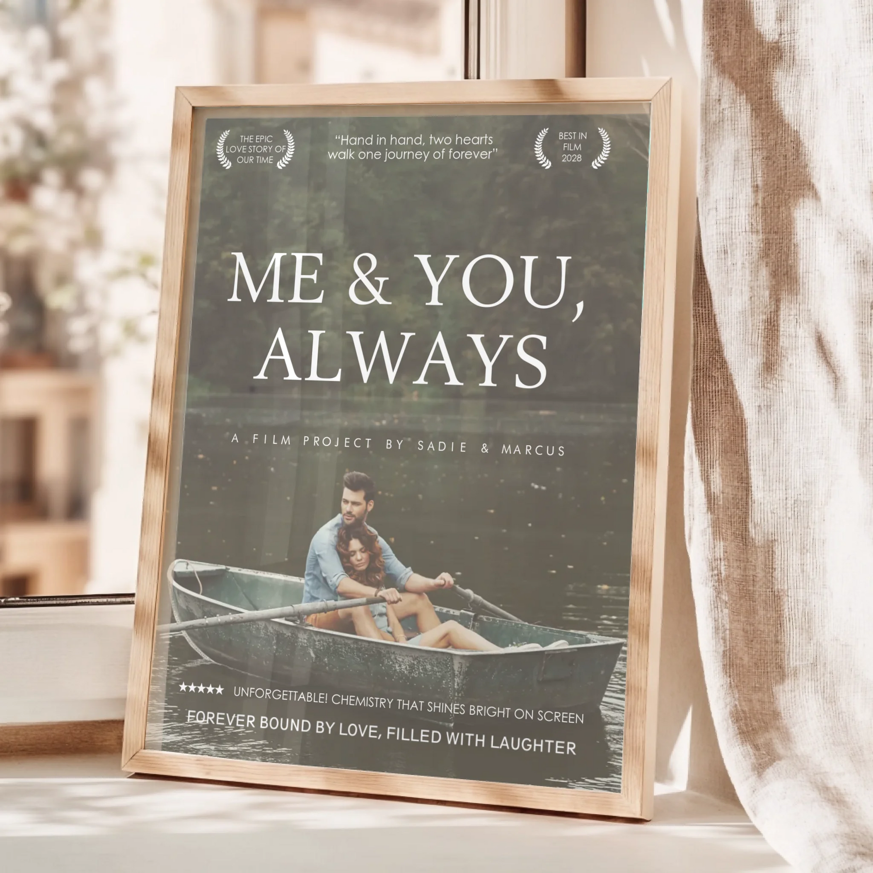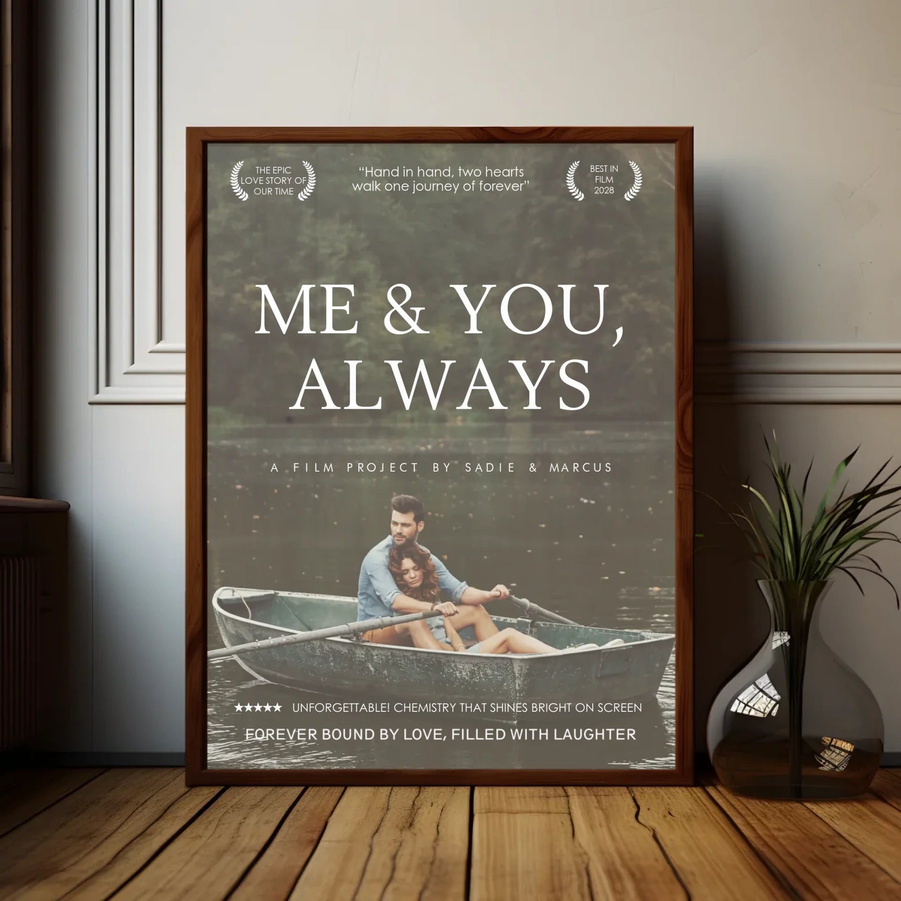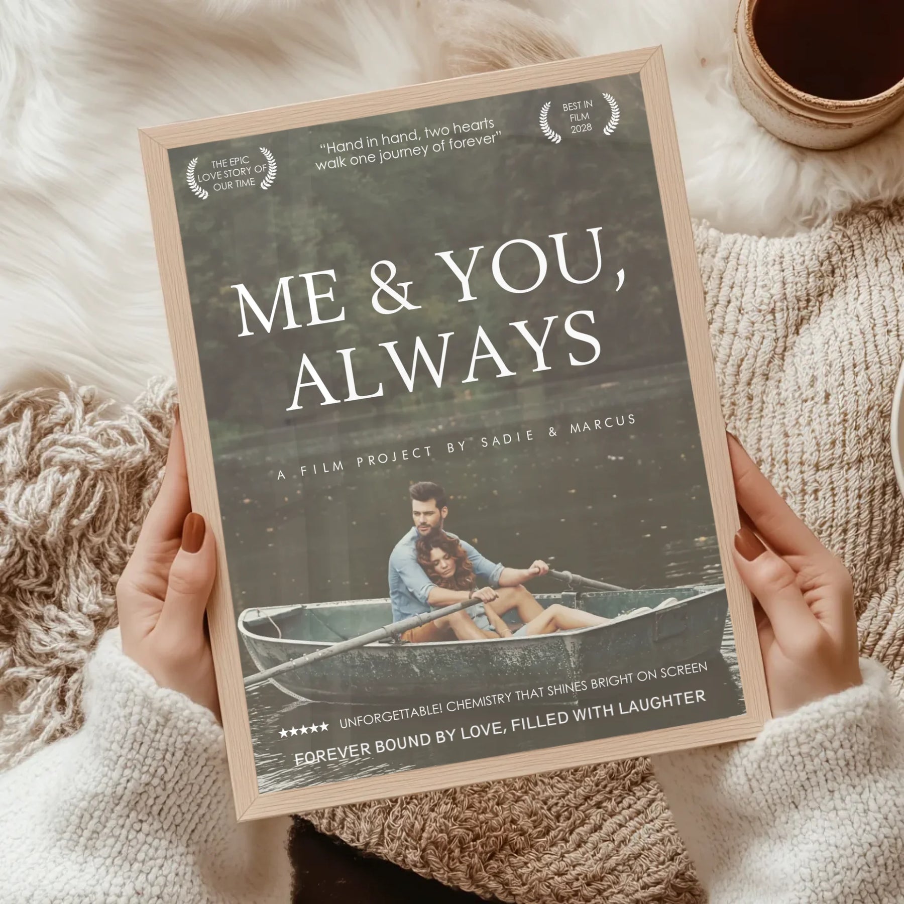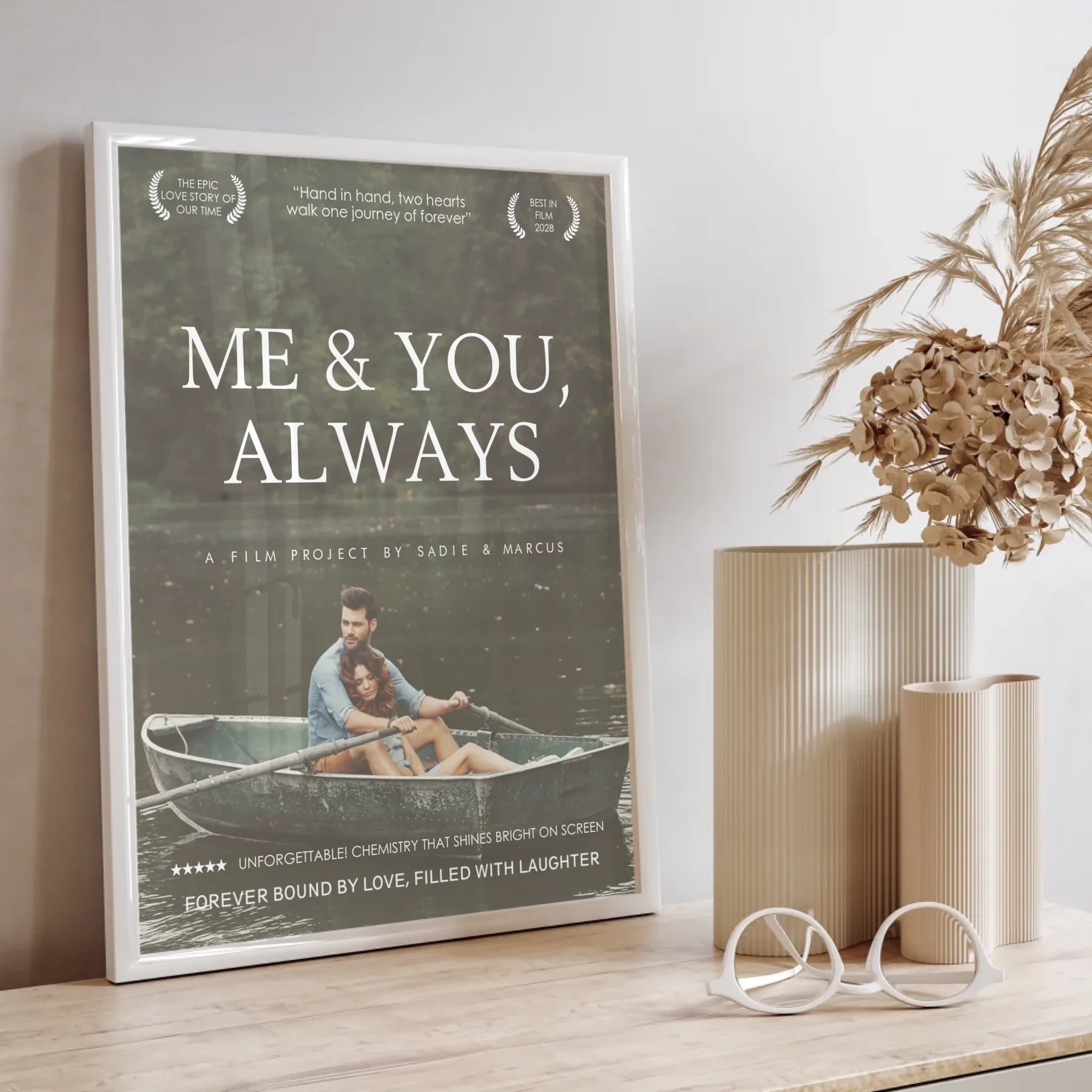 Capture the essence of your relationship with our Custom Movie Poster - Personalized Valentine’s Couple Gift. This striking print frames your names, photo, title, and a tagline in a cinematic layout - turning your story into art.
