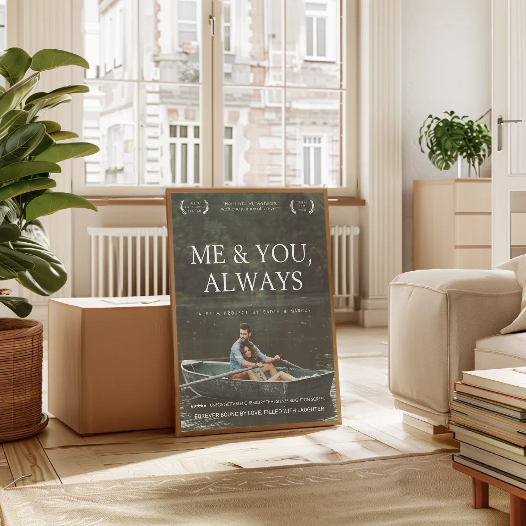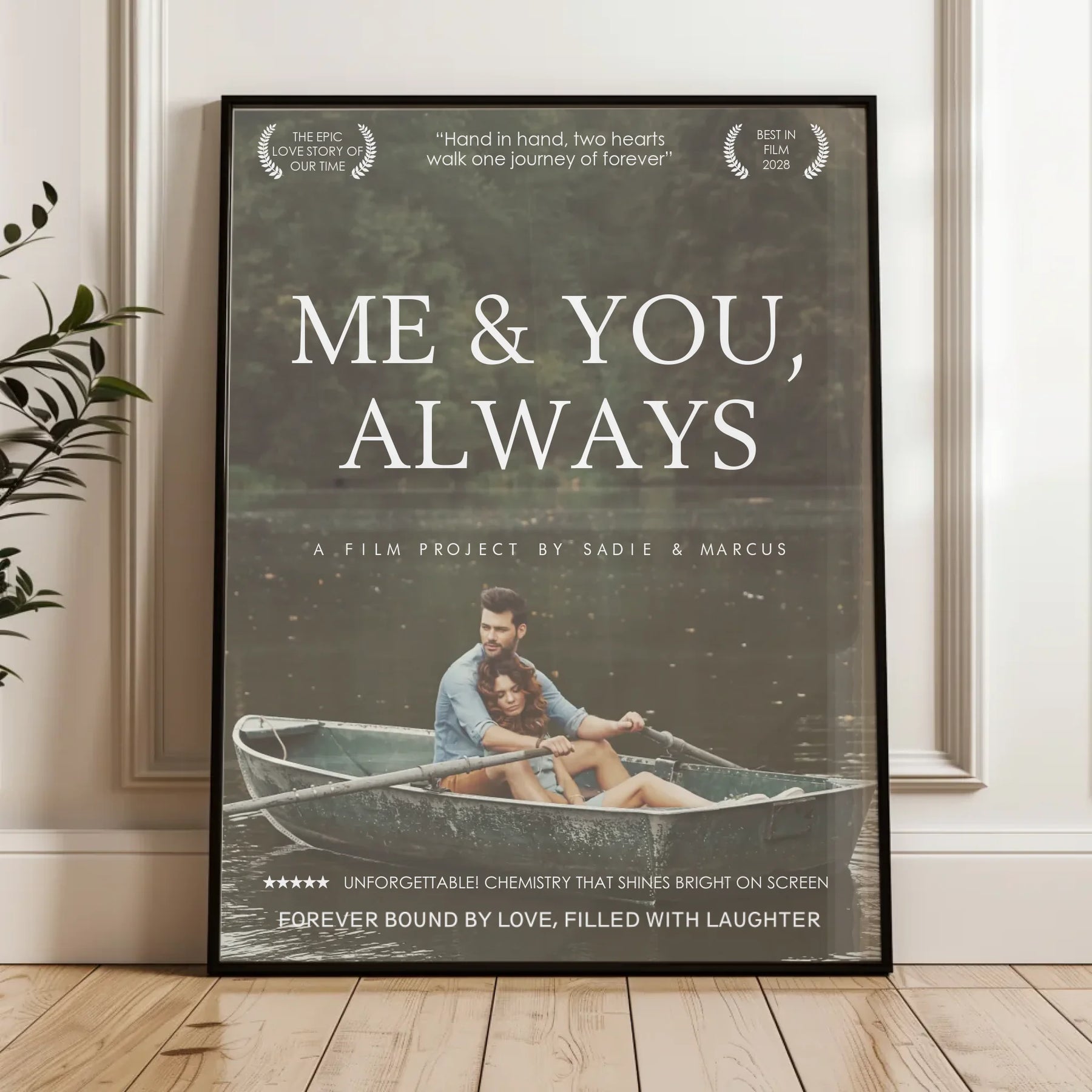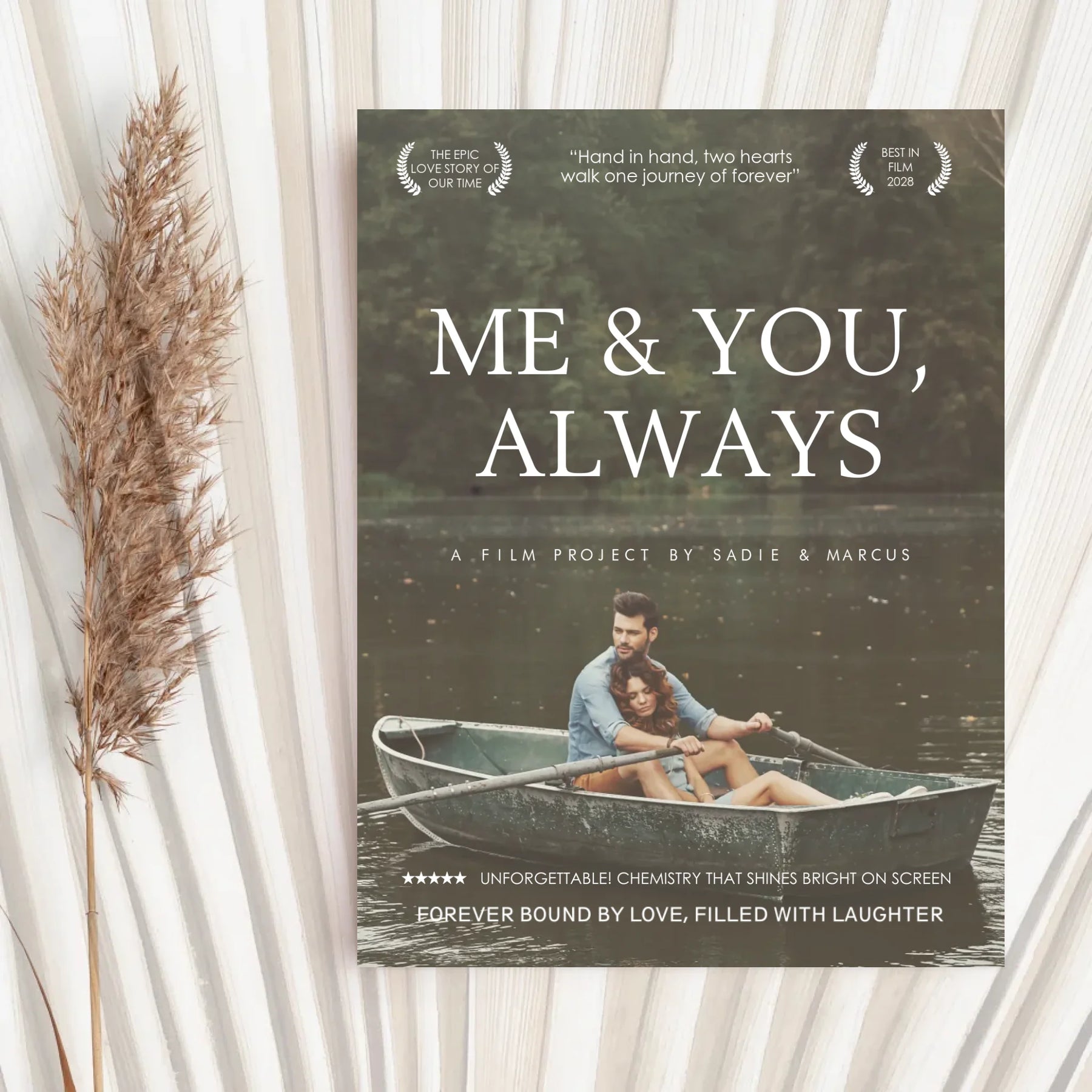 Capture the essence of your relationship with our Custom Movie Poster - Personalized Valentine’s Couple Gift. This striking print frames your names, photo, title, and a tagline in a cinematic layout - turning your story into art.