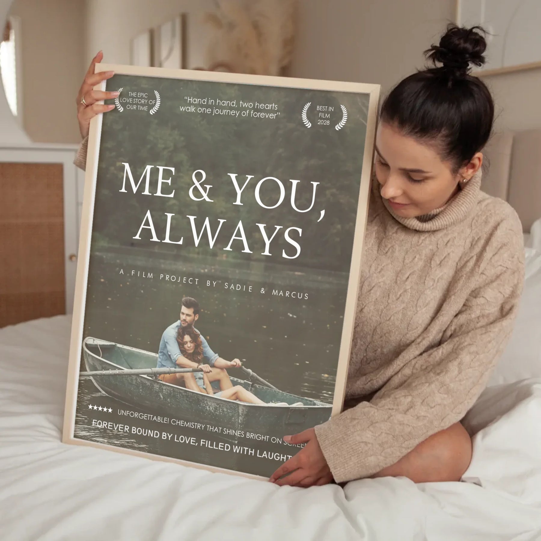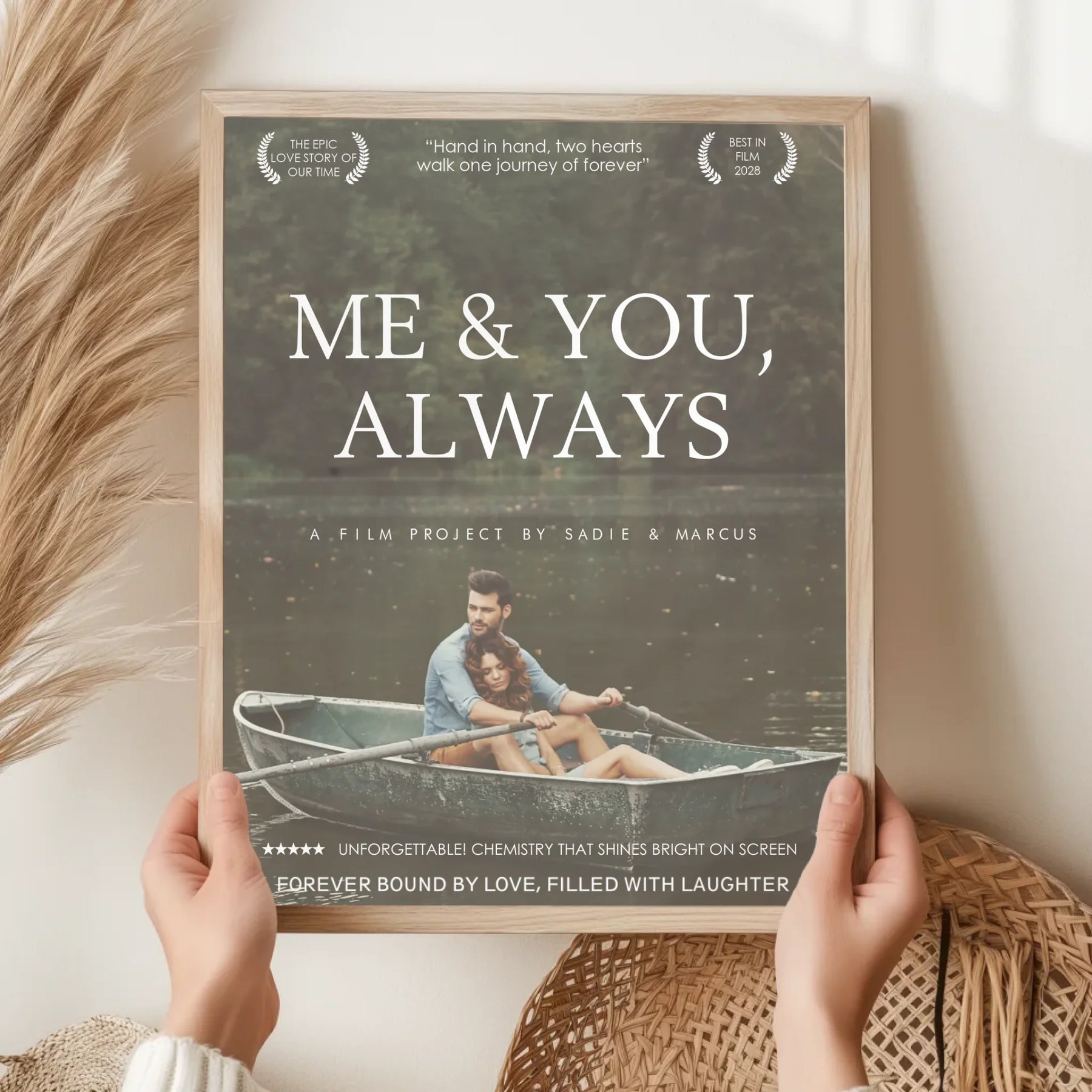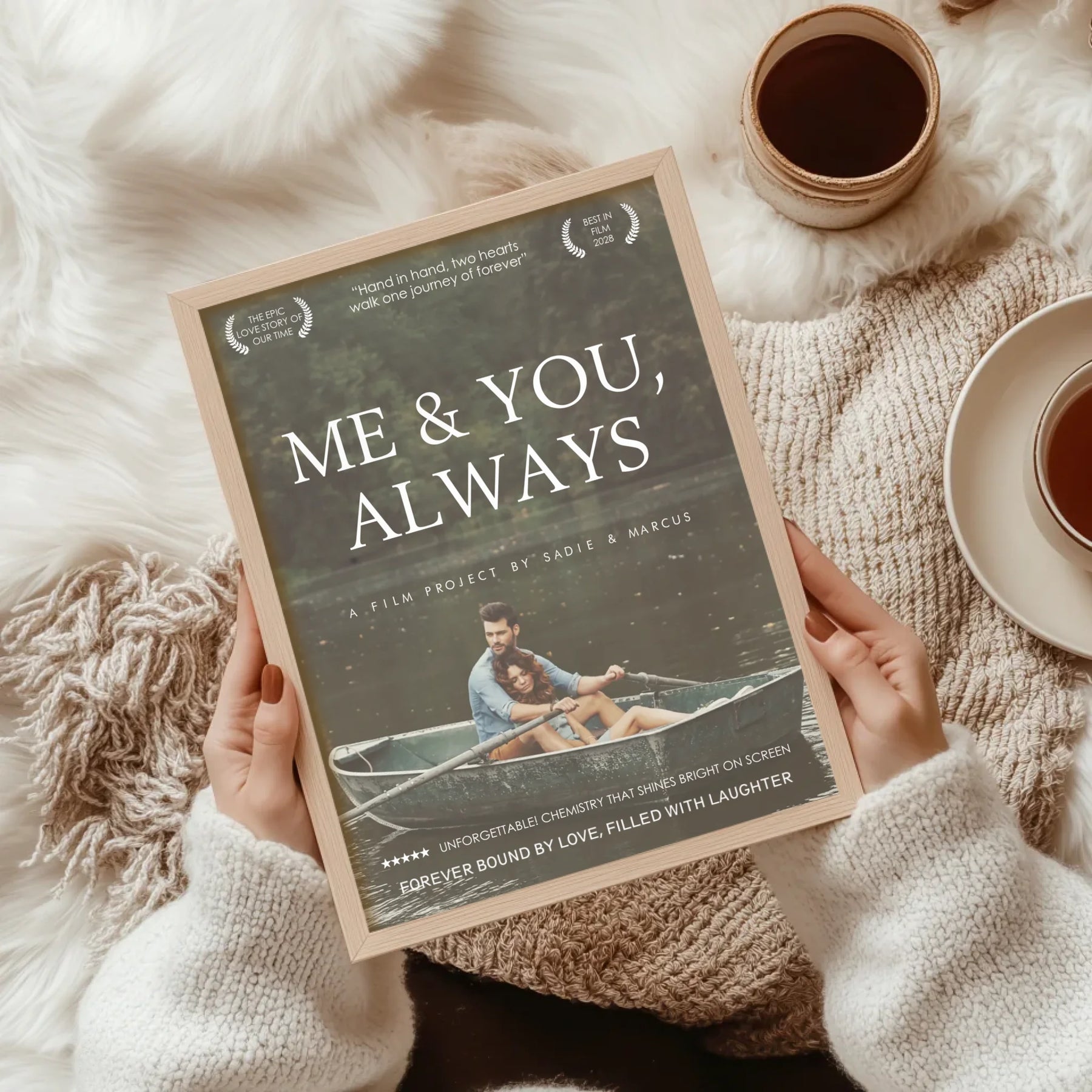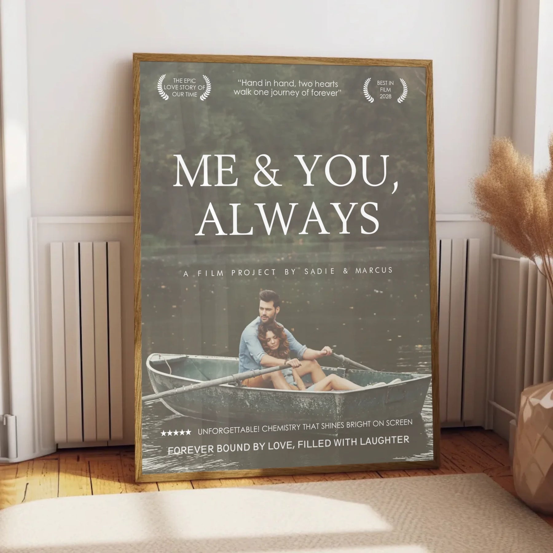 Capture the essence of your relationship with our Custom Movie Poster - Personalized Valentine’s Couple Gift. This striking print frames your names, photo, title, and a tagline in a cinematic layout - turning your story into art.