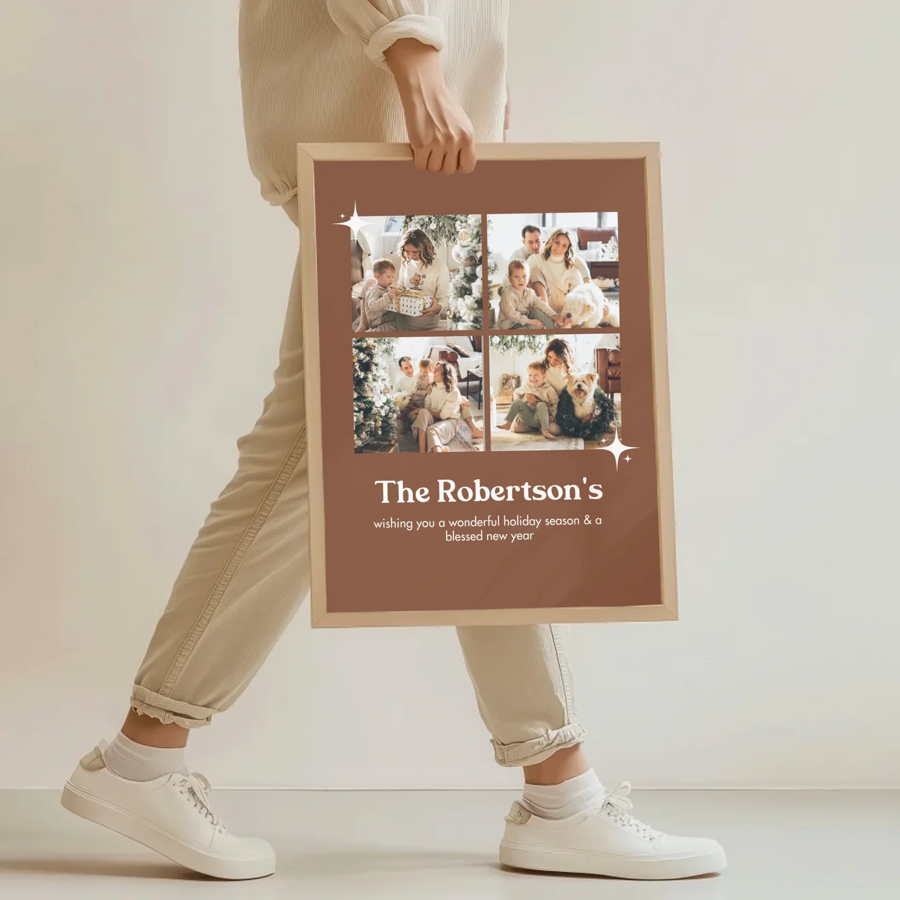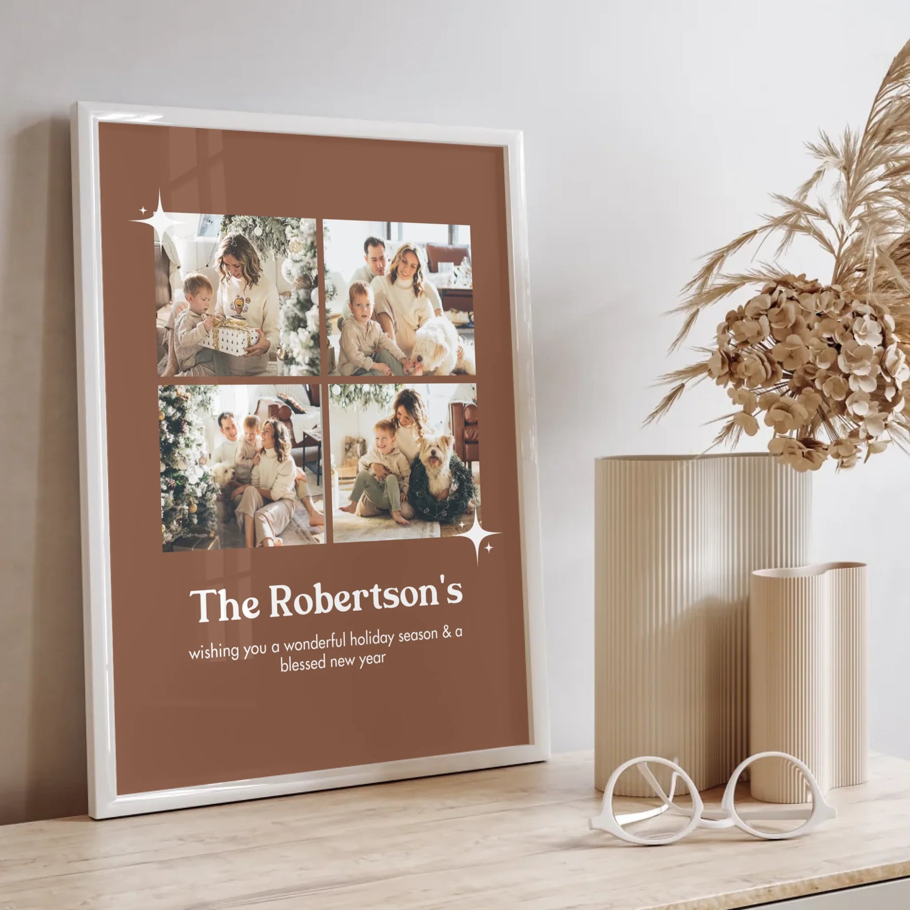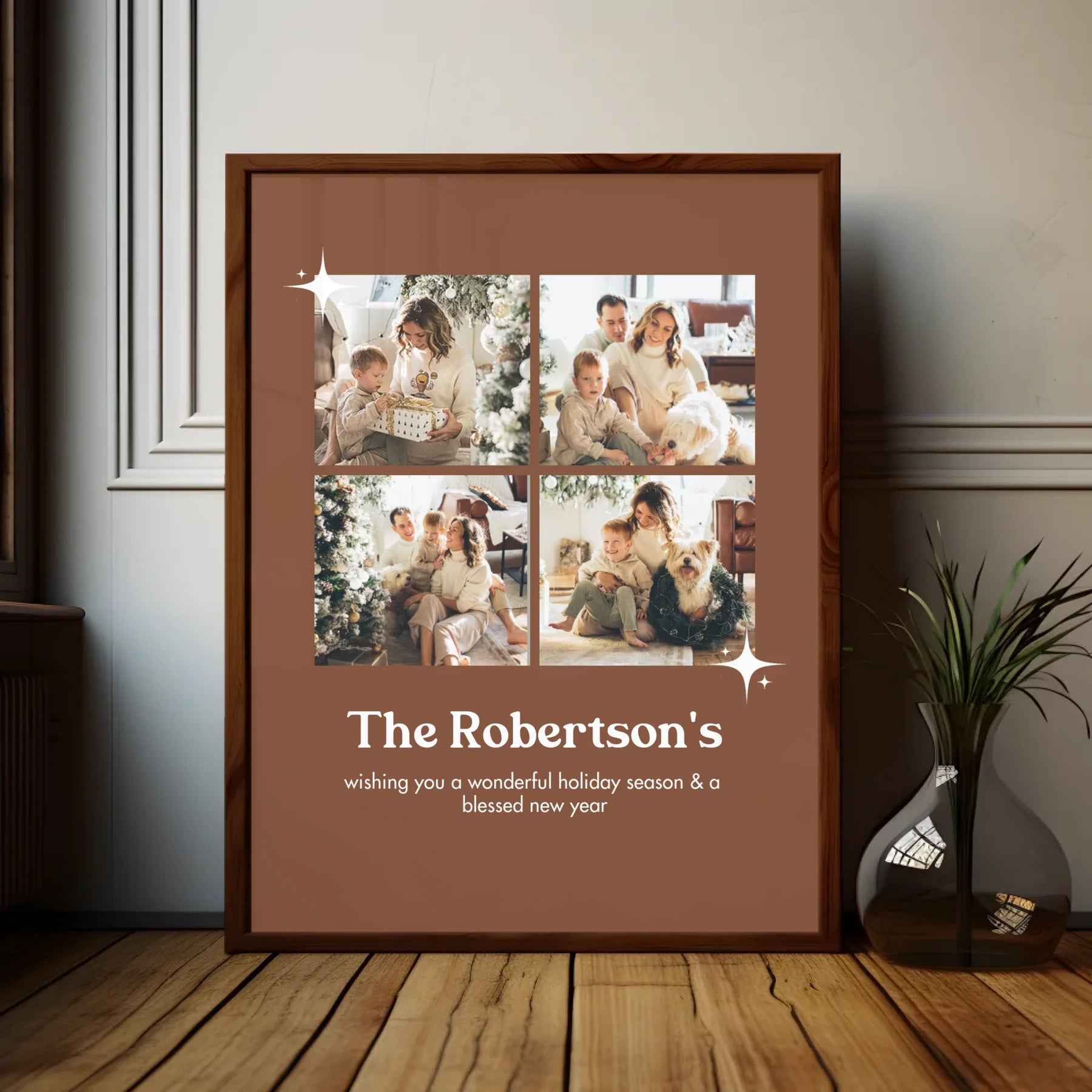 Celebrate the joy of the holidays with our Personalized Christmas Photo Collage Poster - a festive and heartwarming print featuring your favorite moments of the year. Custom-designed with your selected photos and a cheerful holiday message, this collage makes the perfect keepsake for your home or a thoughtful gift for loved ones.