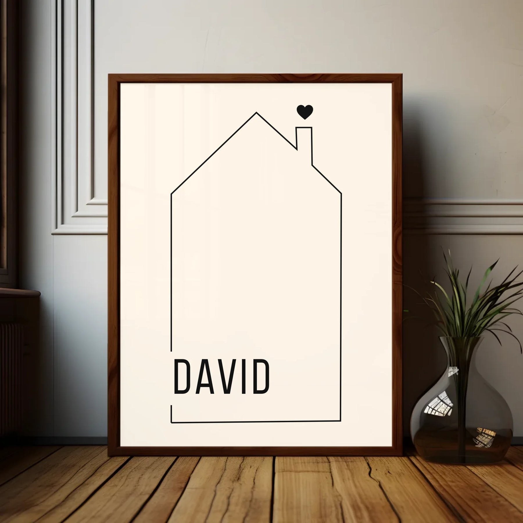 House Shaped Family Customized Design, Cute Minimalist Family Name Wall Art, ...