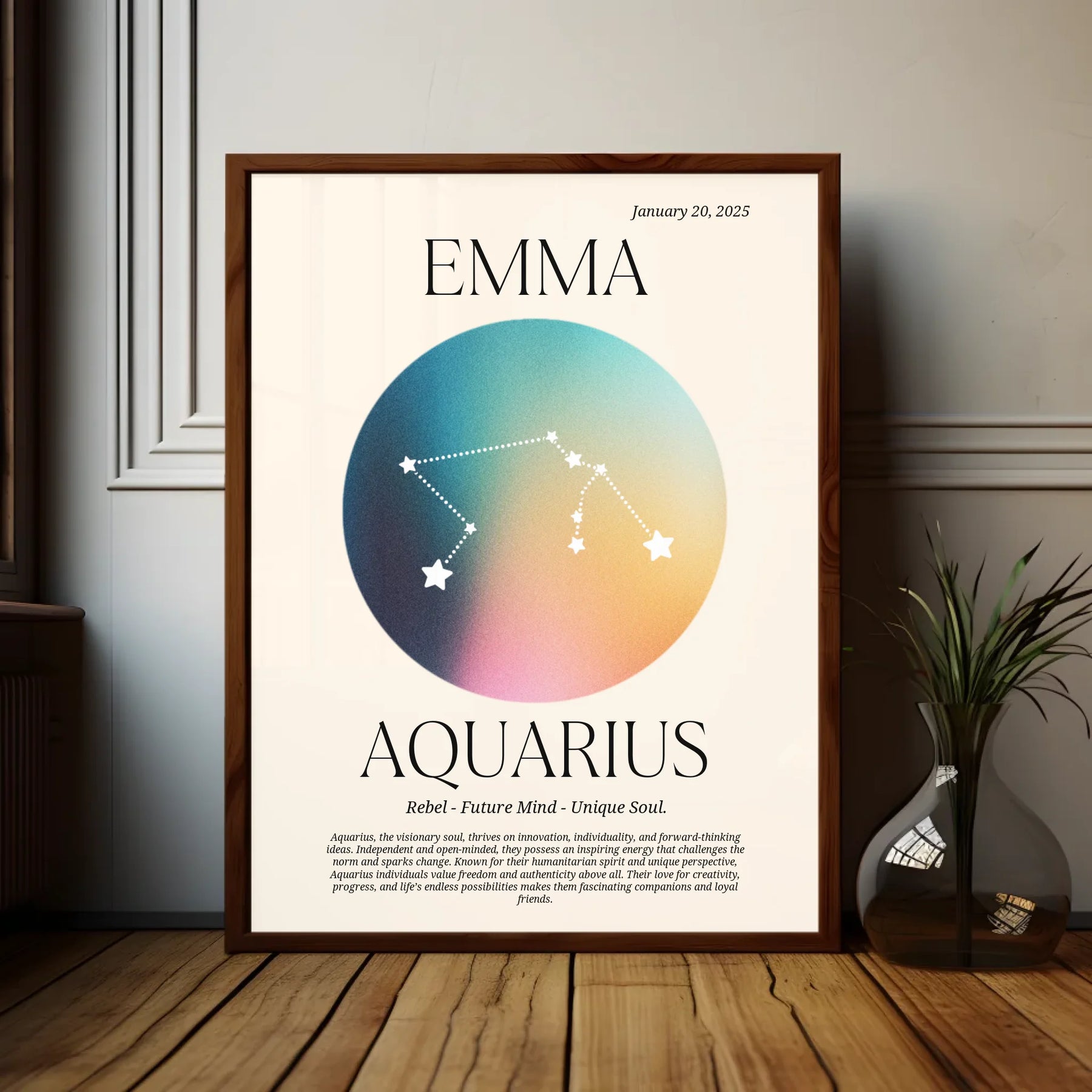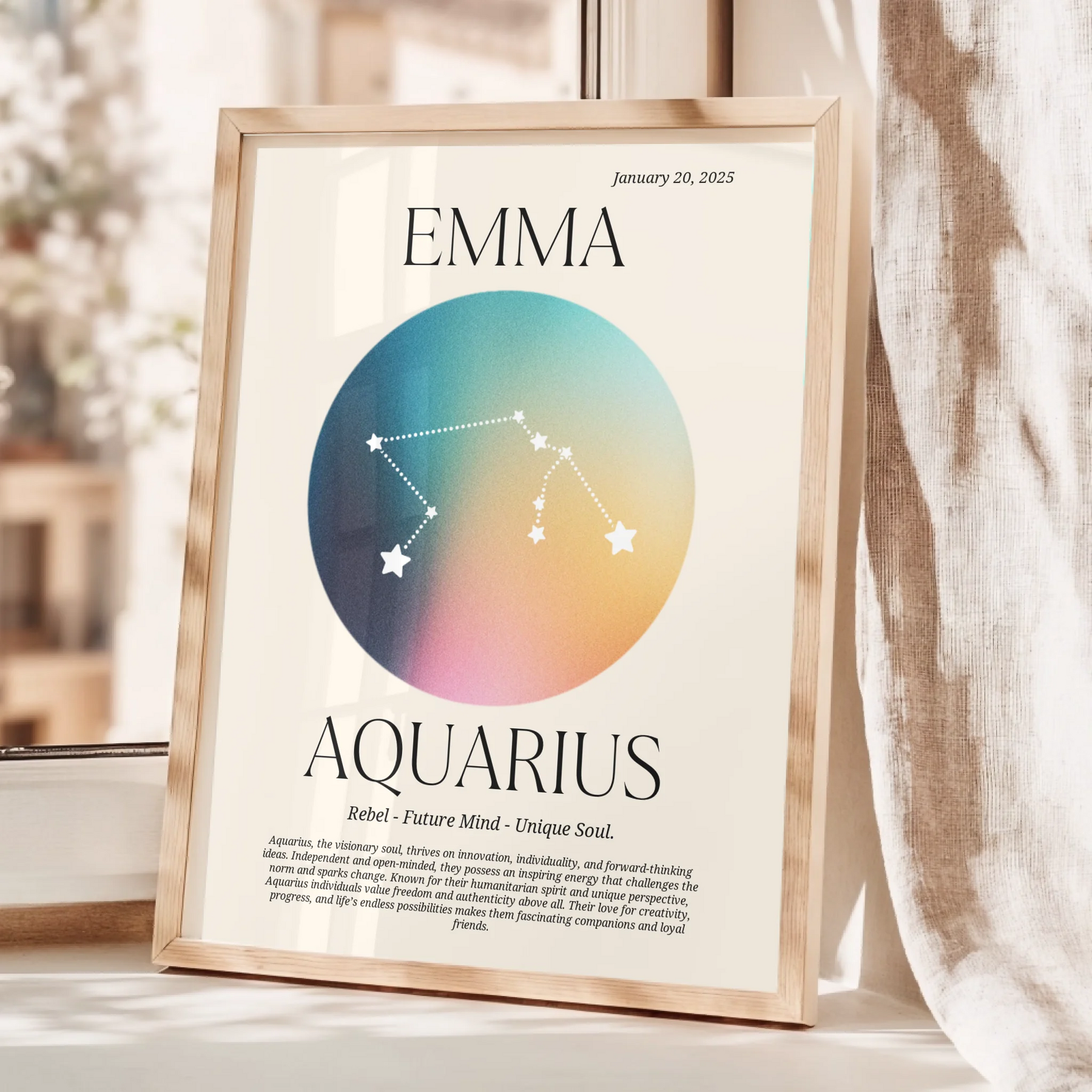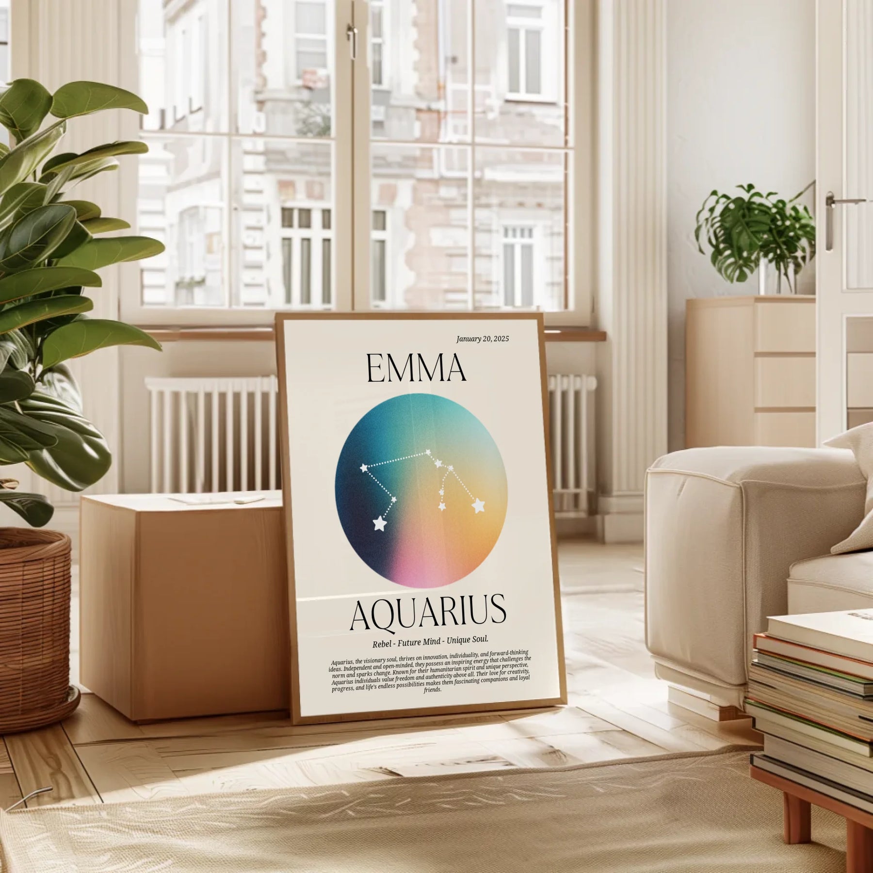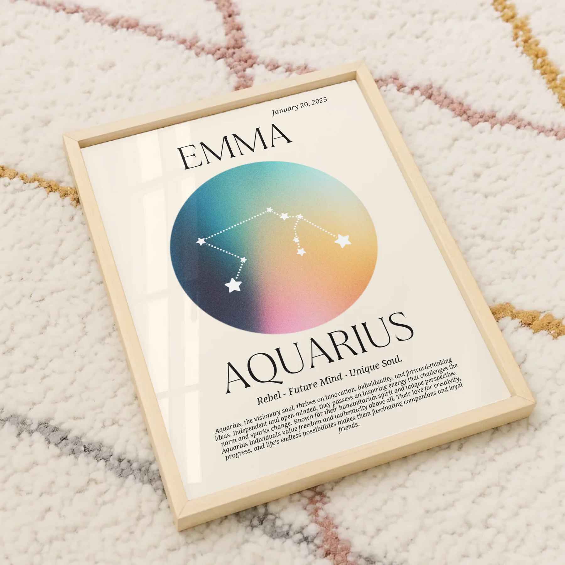 Turn your zodiac into art with our Custom Zodiac Art Print. Featuring your star sign, and personalized name or phrase, this piece is a subtle and meaningful addition to any room - perfect for birthdays, astrology lovers, or simply embracing your inner star.
