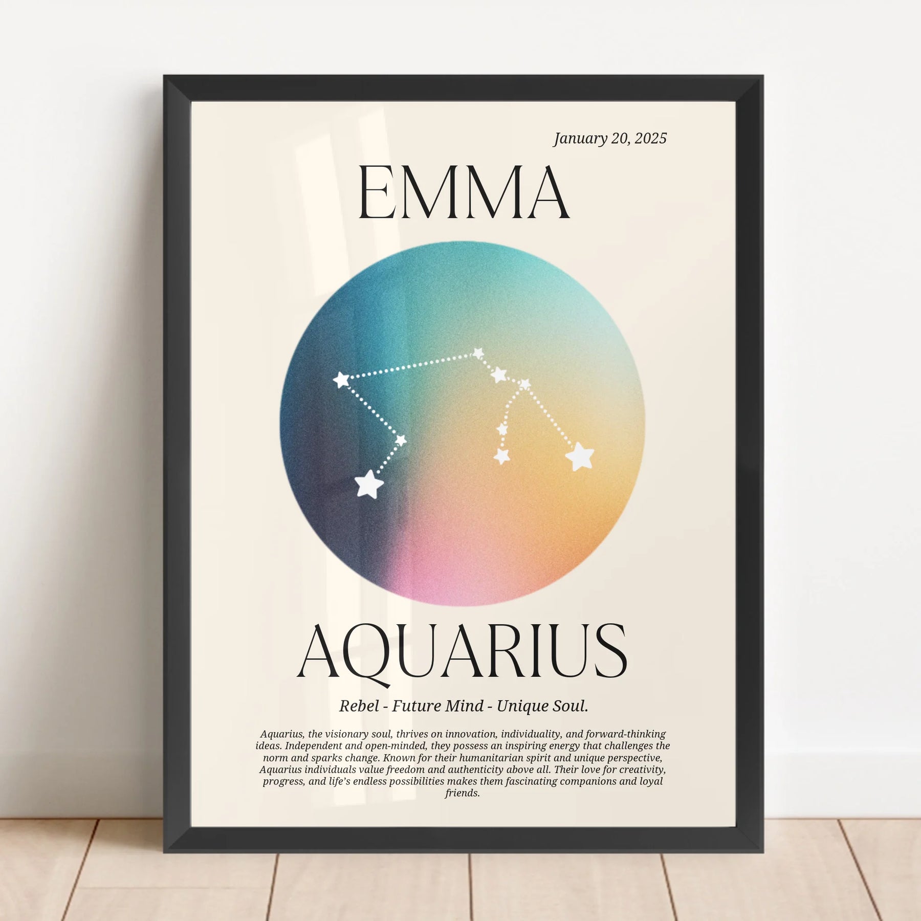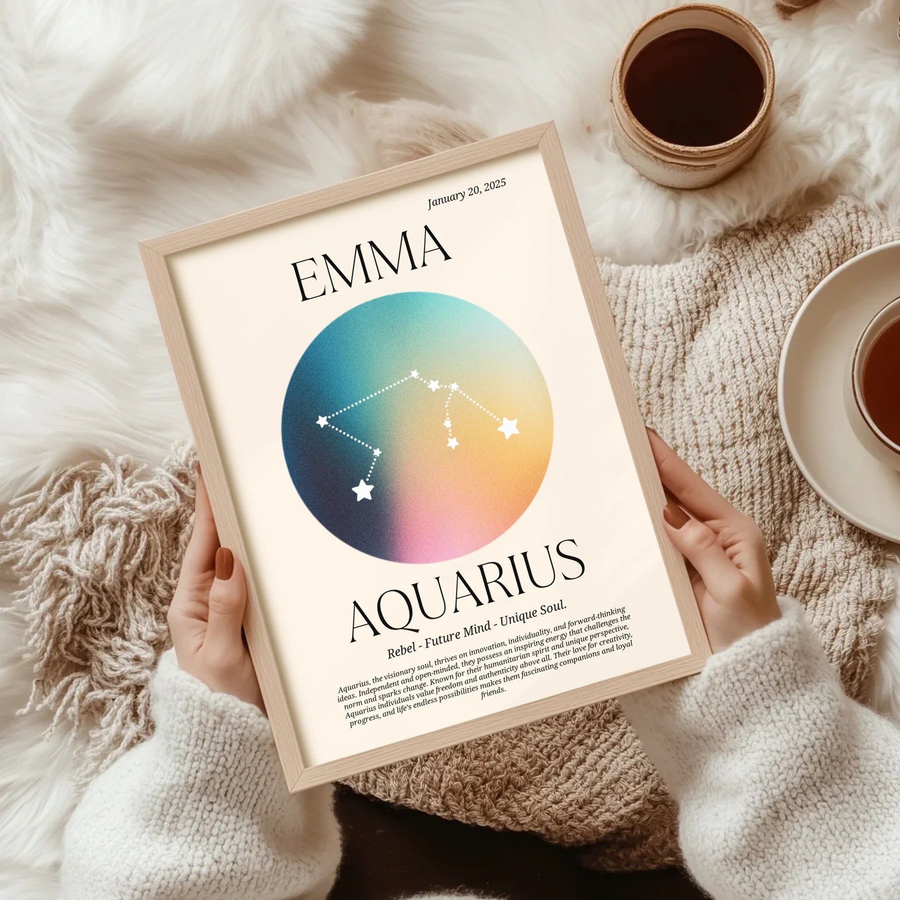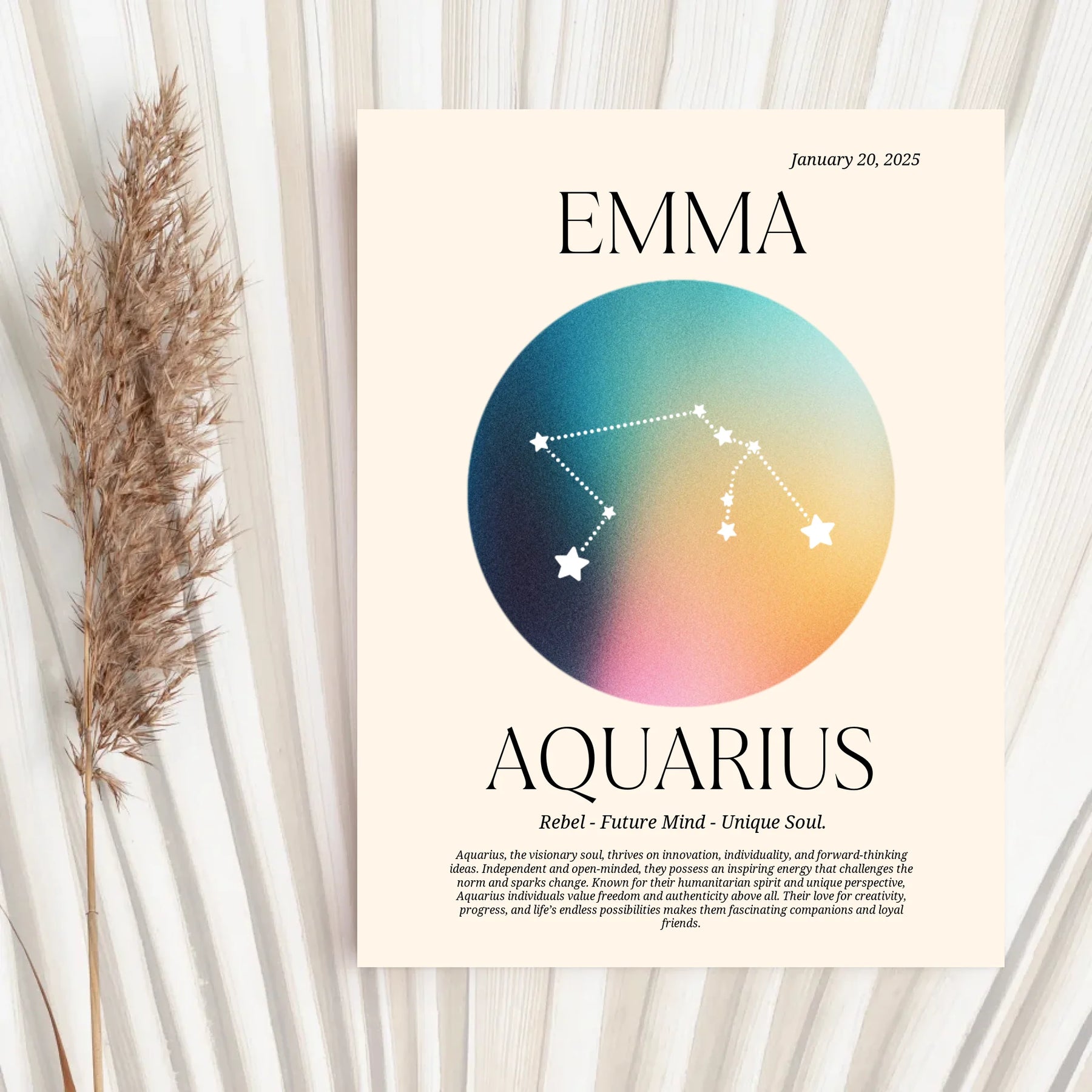 Turn your zodiac into art with our Custom Zodiac Art Print. Featuring your star sign, and personalized name or phrase, this piece is a subtle and meaningful addition to any room - perfect for birthdays, astrology lovers, or simply embracing your inner star.