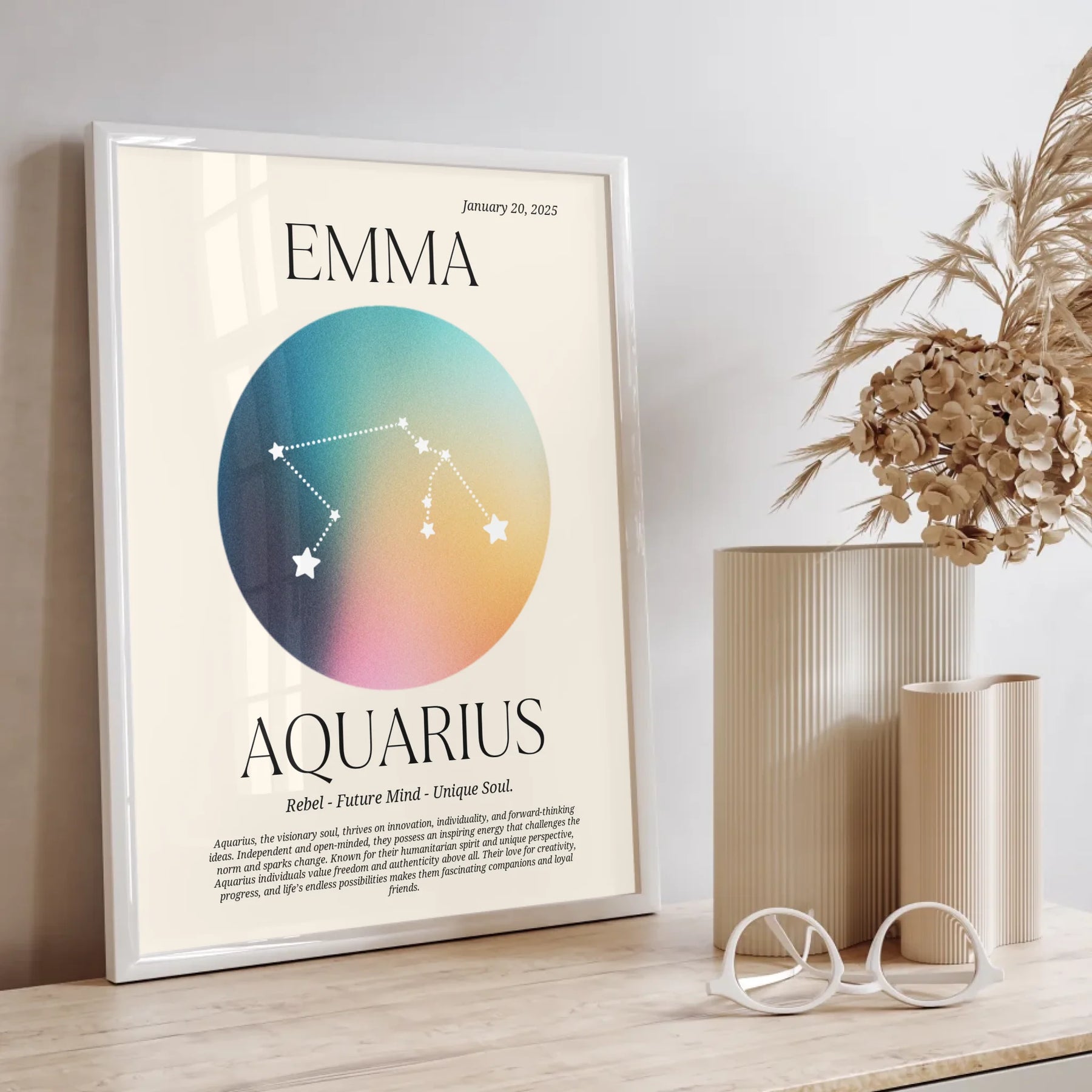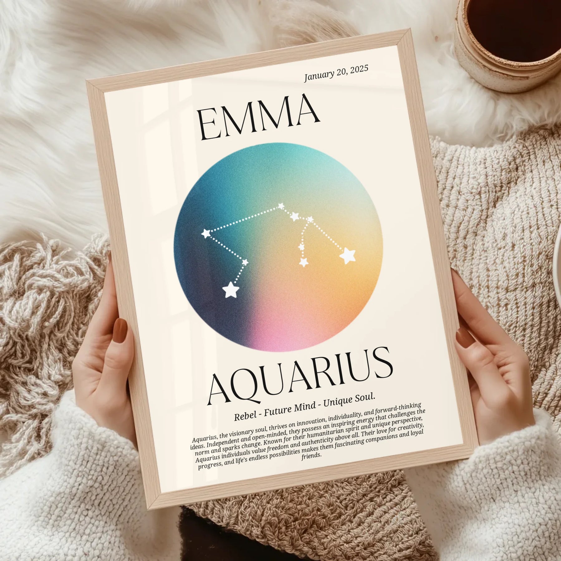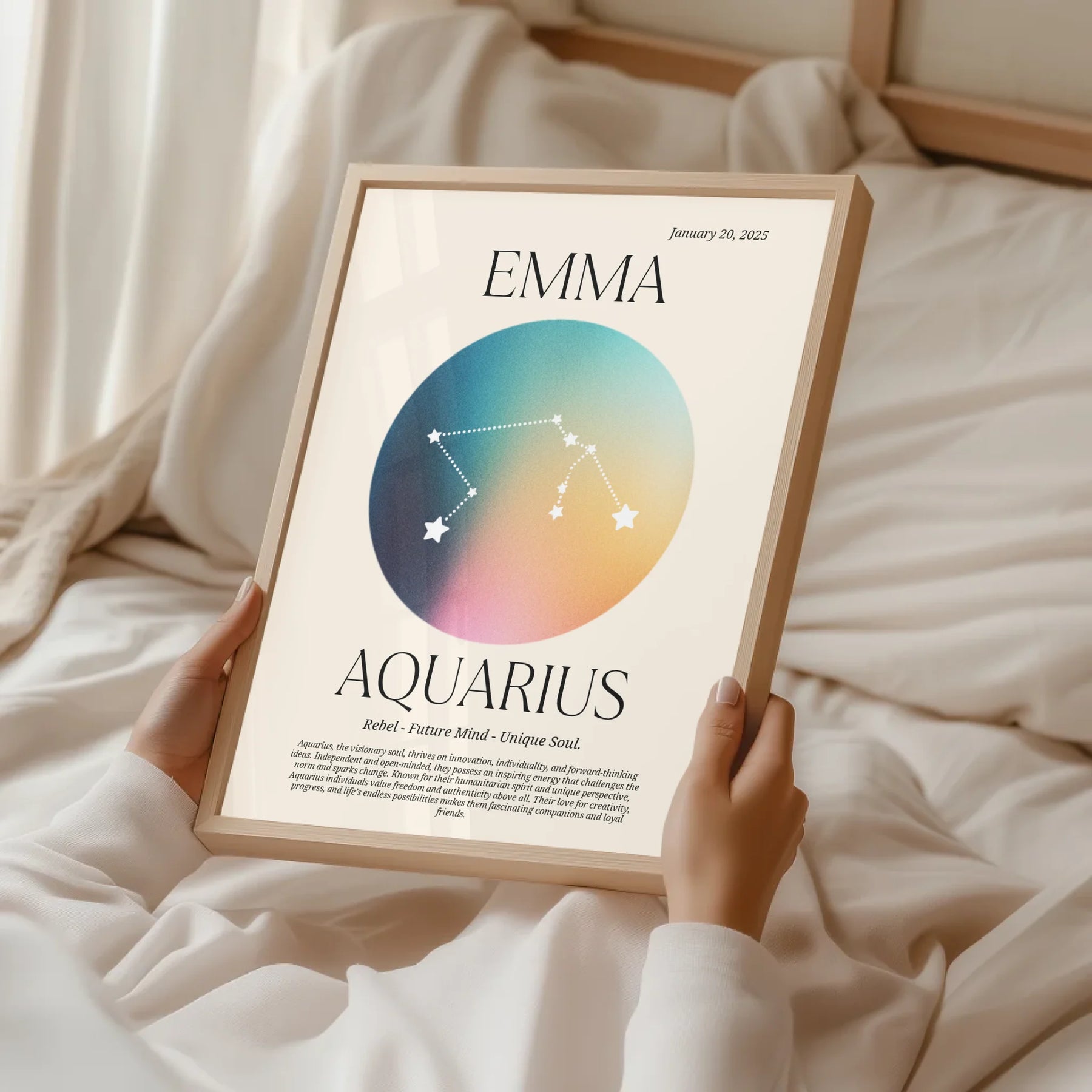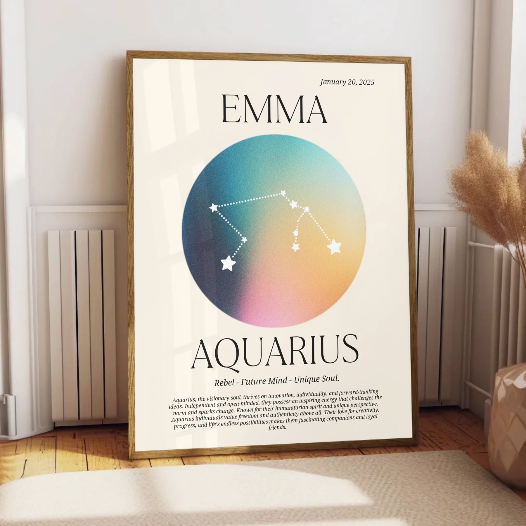 Turn your zodiac into art with our Custom Zodiac Art Print. Featuring your star sign, and personalized name or phrase, this piece is a subtle and meaningful addition to any room - perfect for birthdays, astrology lovers, or simply embracing your inner star.