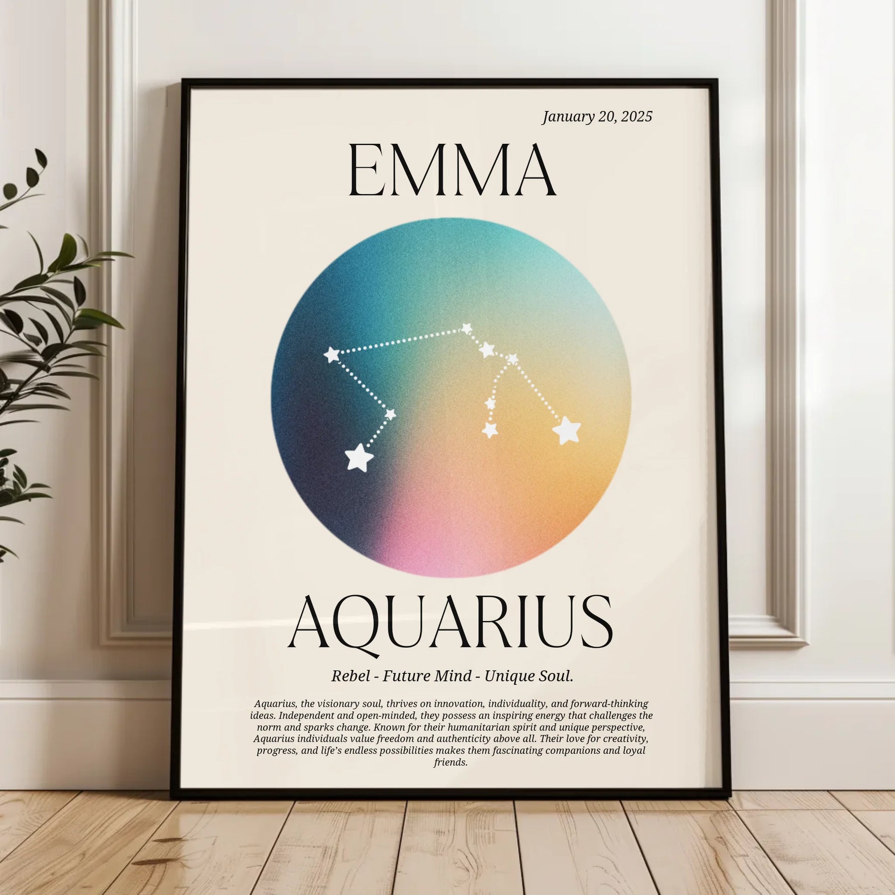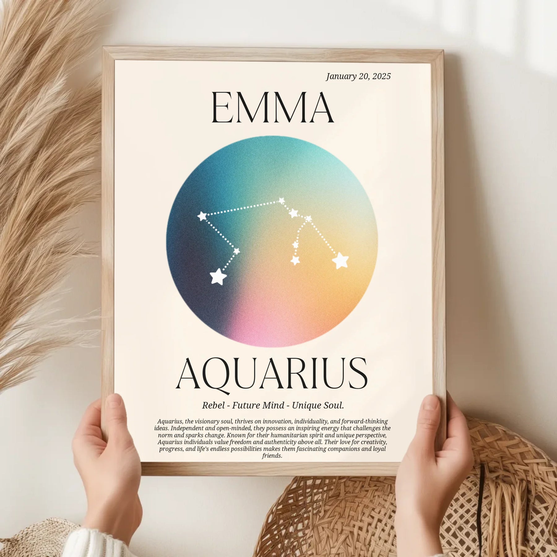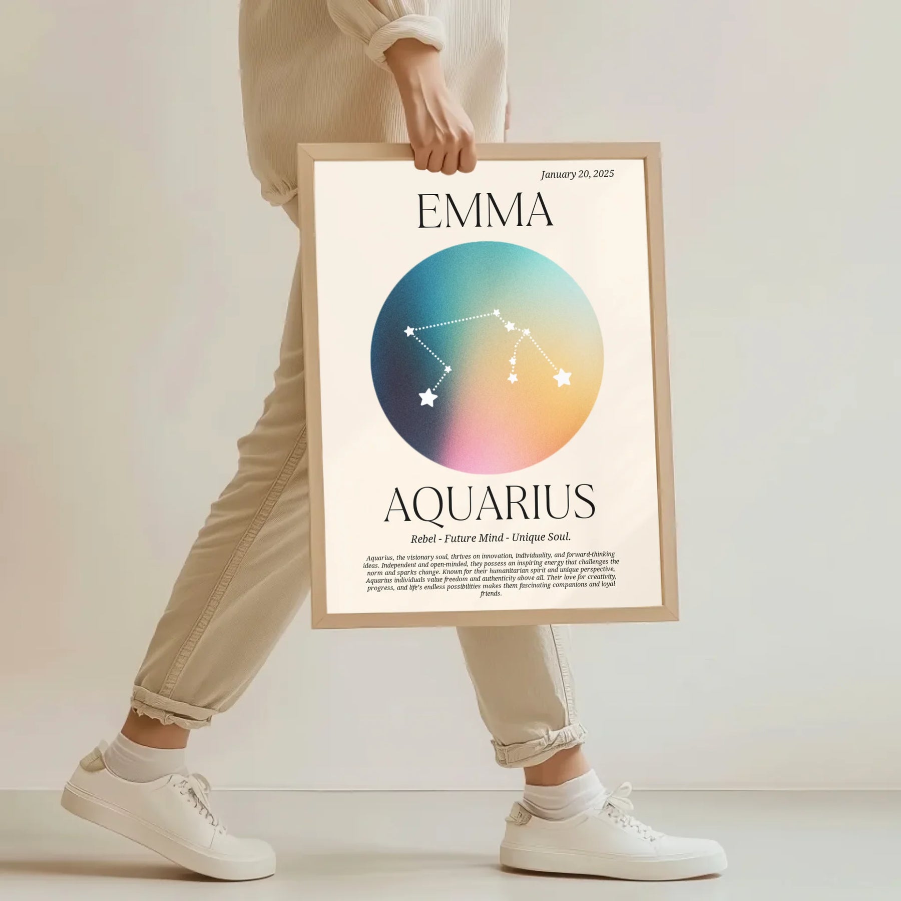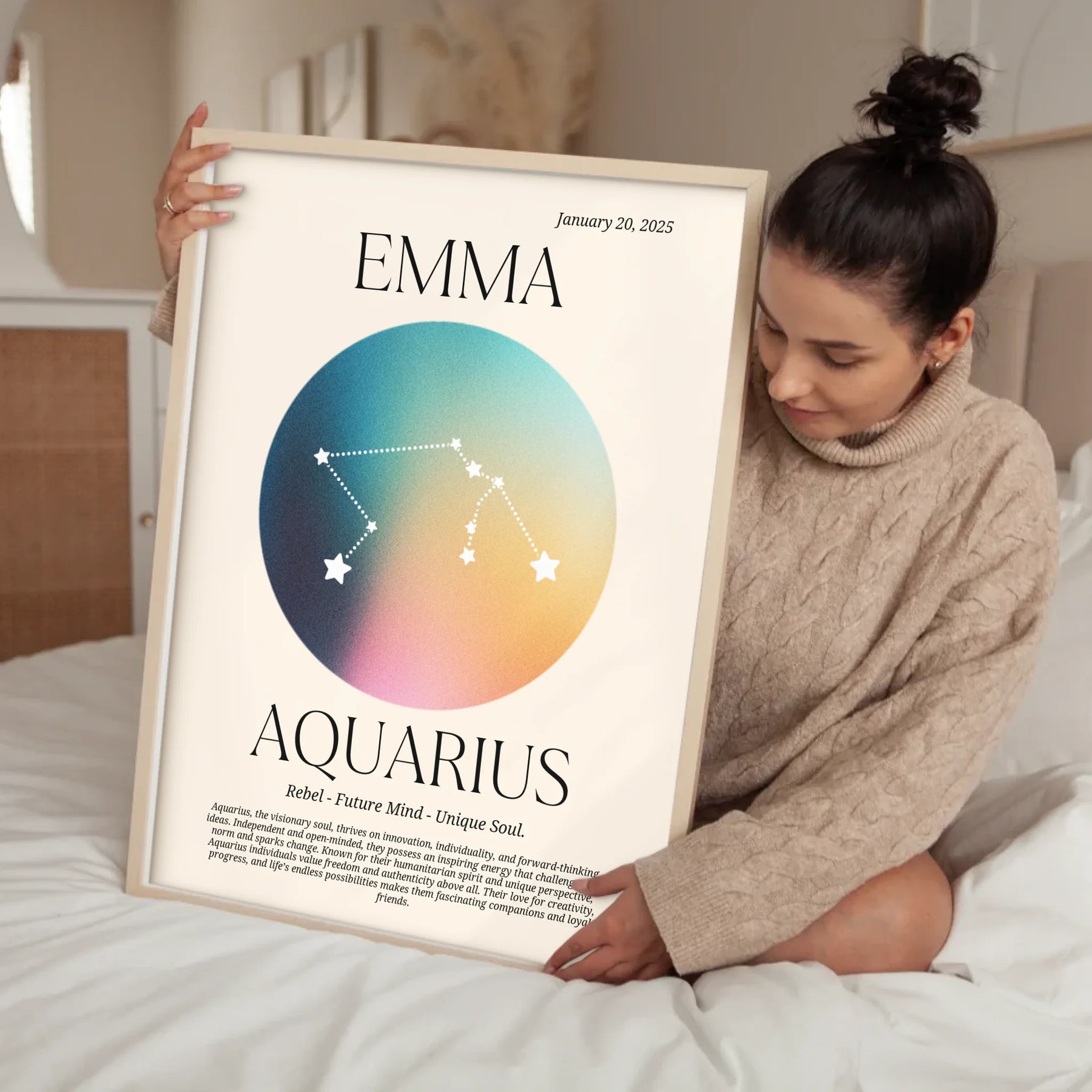 Personalized Zodiac Name Poster, Custom Star Sign Art, Zodiac Art Print, Cust...