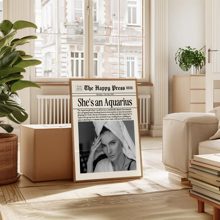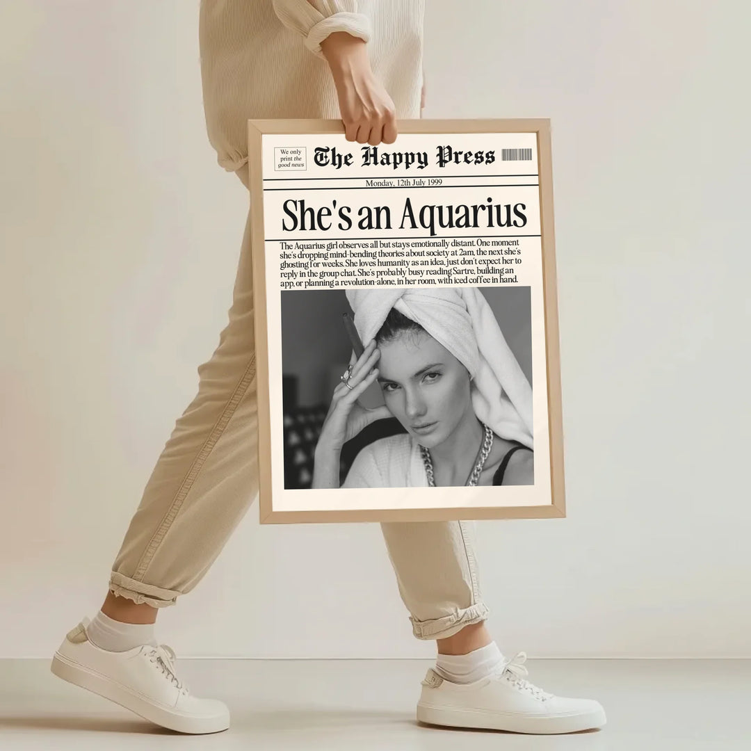 Innovative. Independent. Iconic. This Aquarius-inspired fashion poster blends cosmic cool with downtown chic — the perfect wall art for trendsetters born under the water bearer sign.