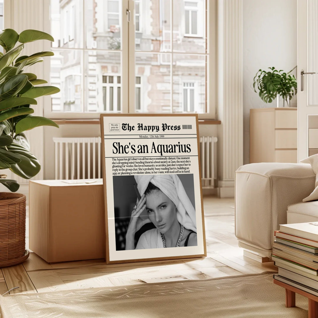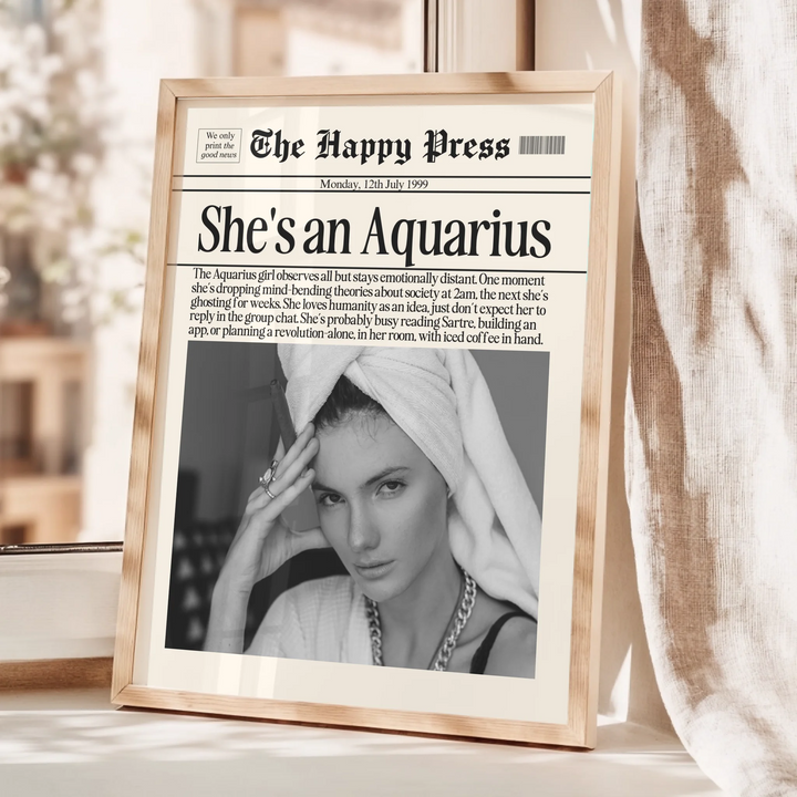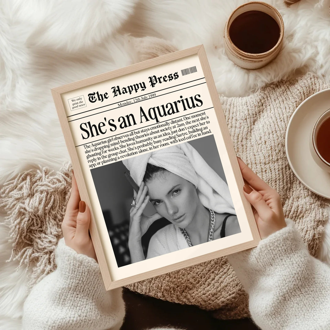 Custom Newspaper Photo Wall Art, Girly Zodiac A...