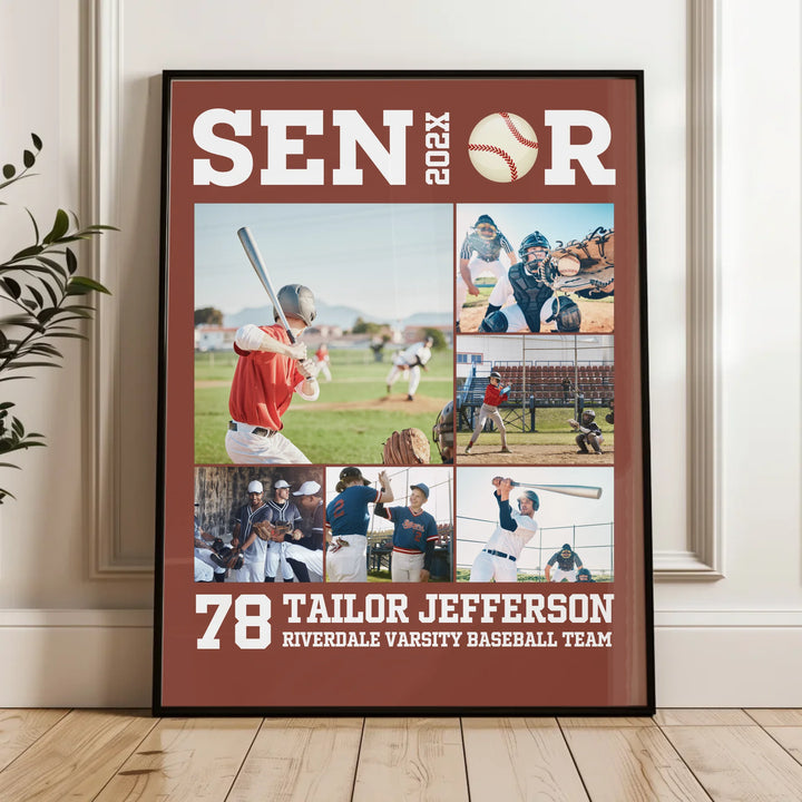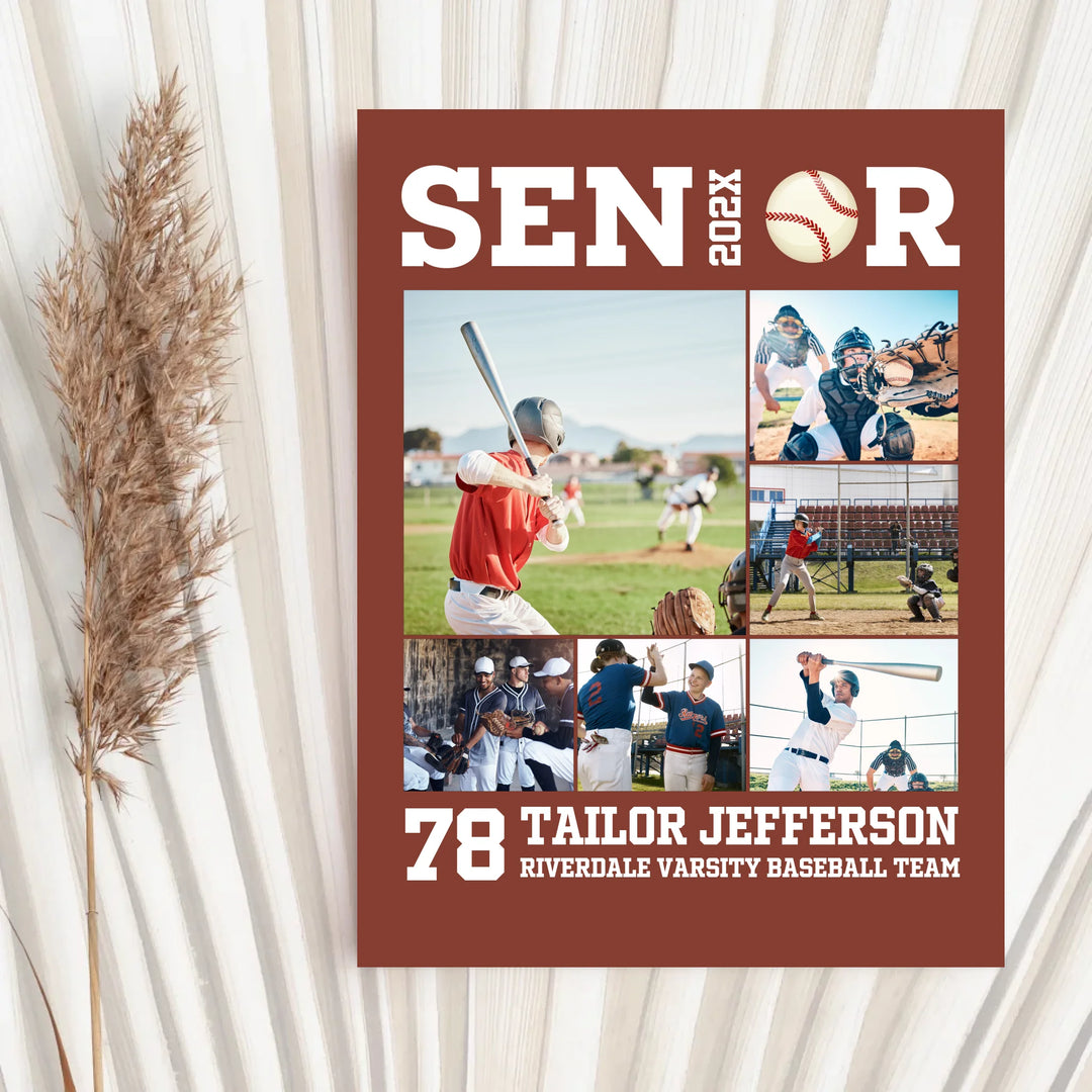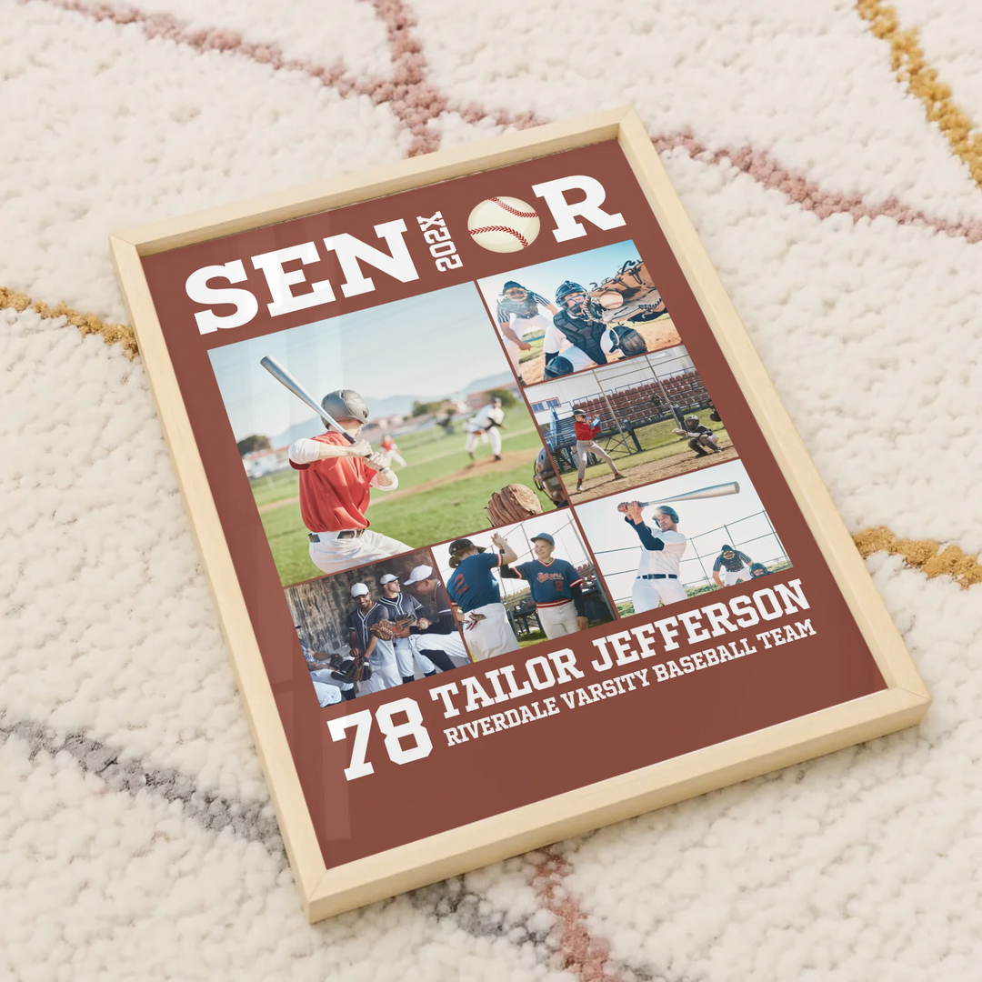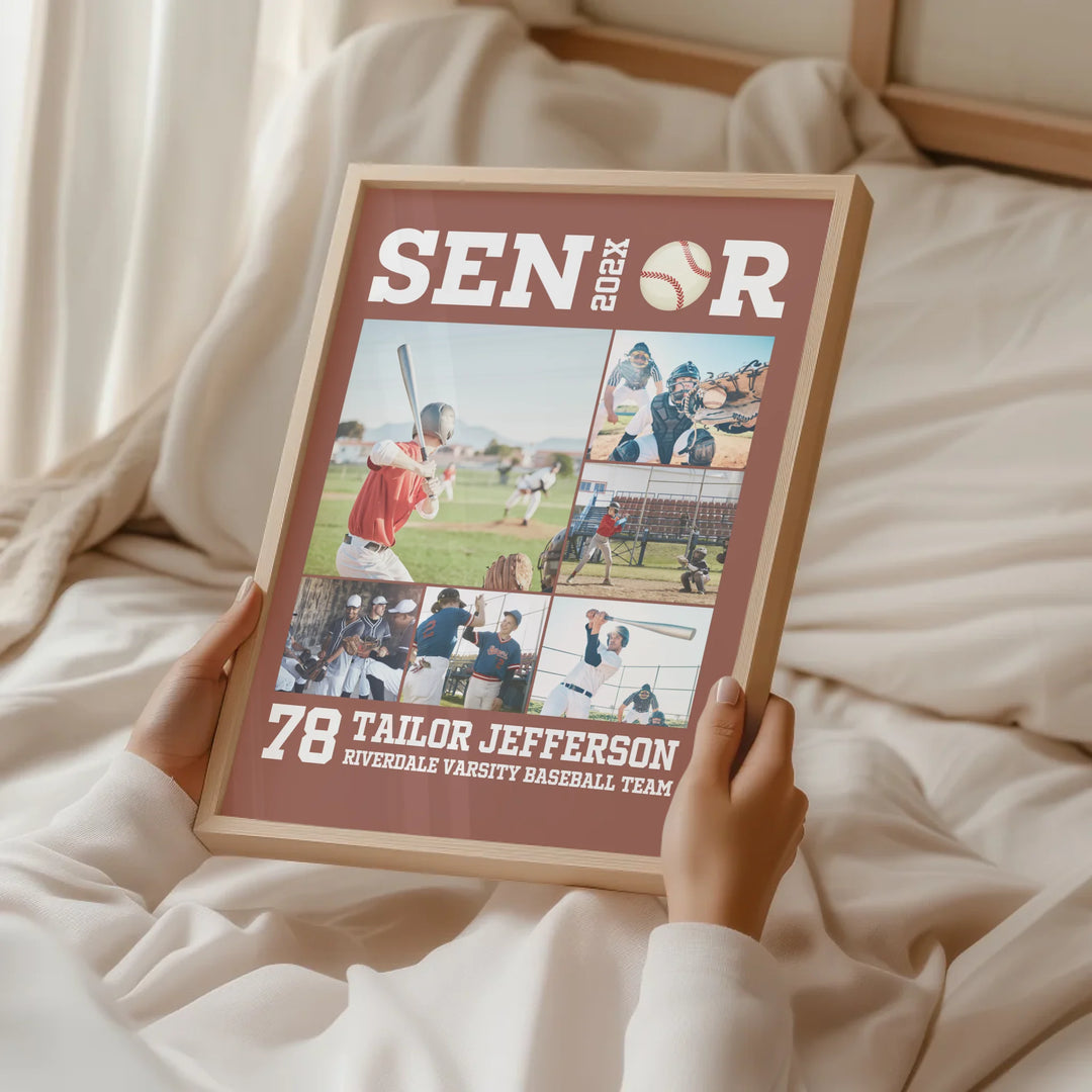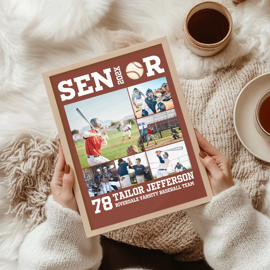 Celebrate your senior’s journey with our Custom Baseball Senior Night Poster. Featuring your favorite photos, player’s name, jersey number, and graduation year, this collage-style print captures the highlights of their baseball story in one unforgettable tribute.