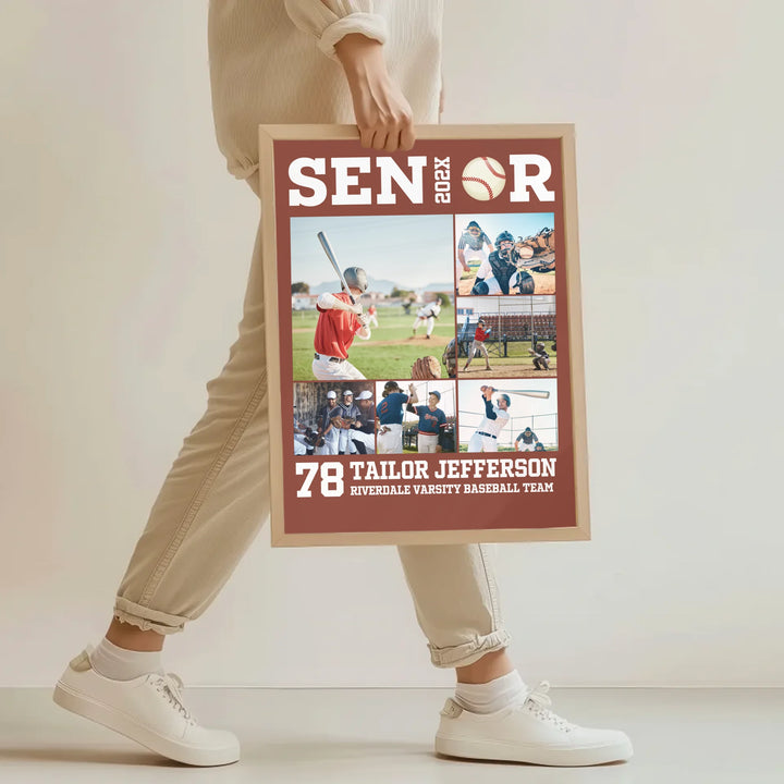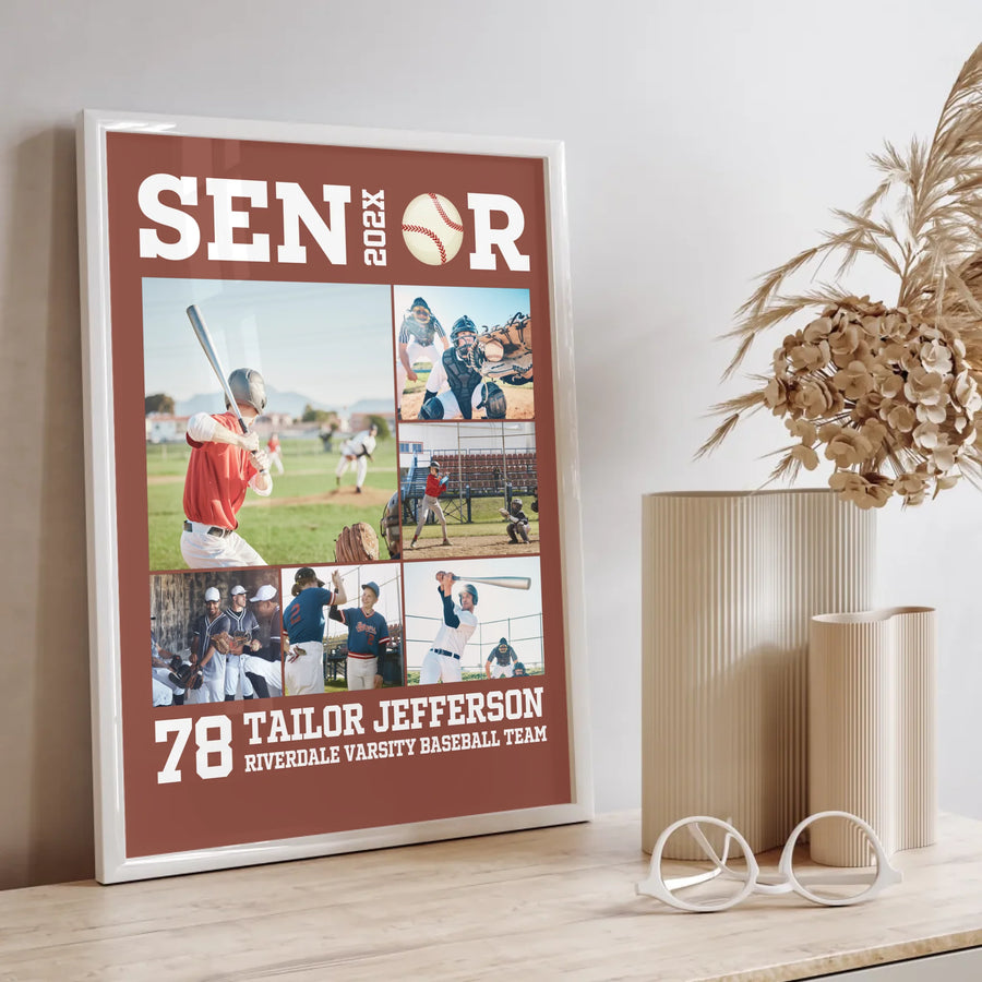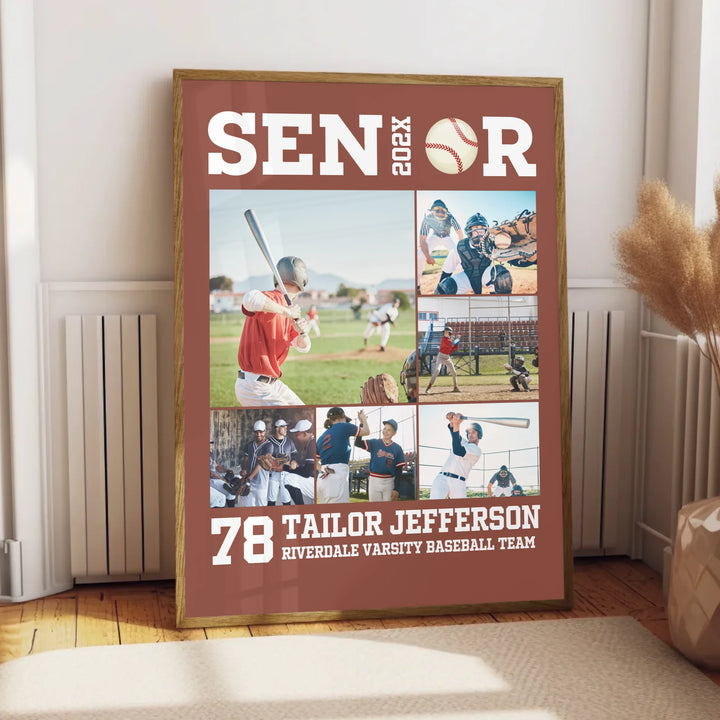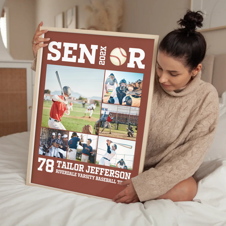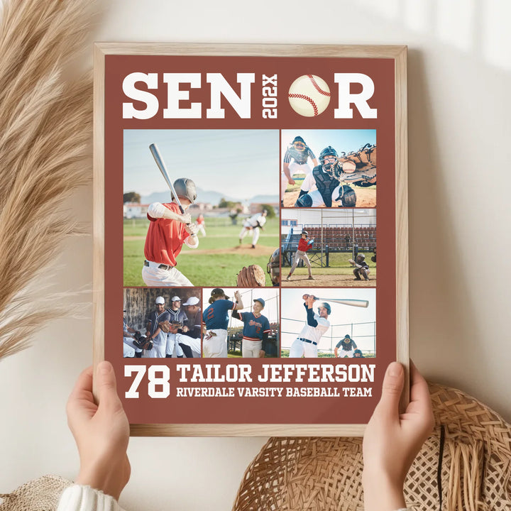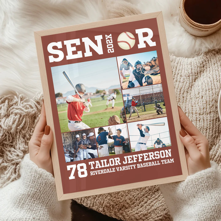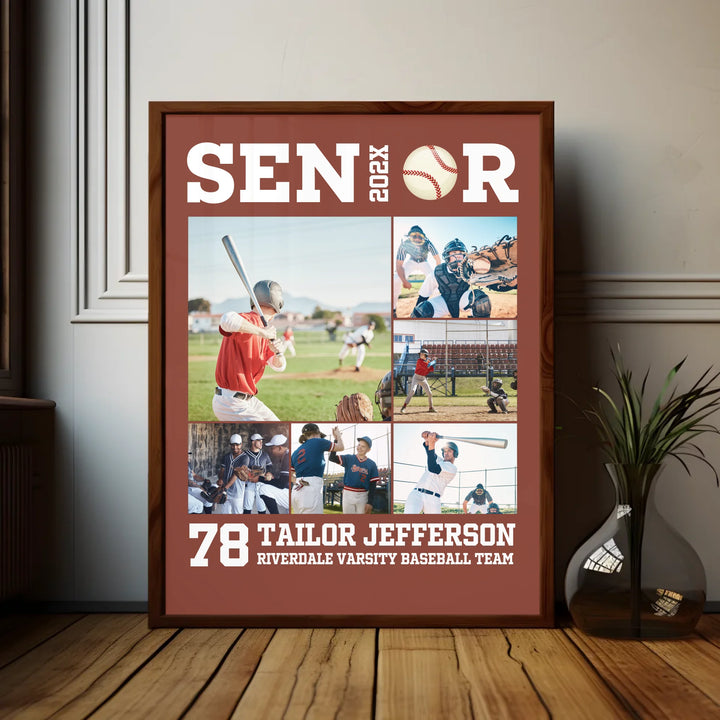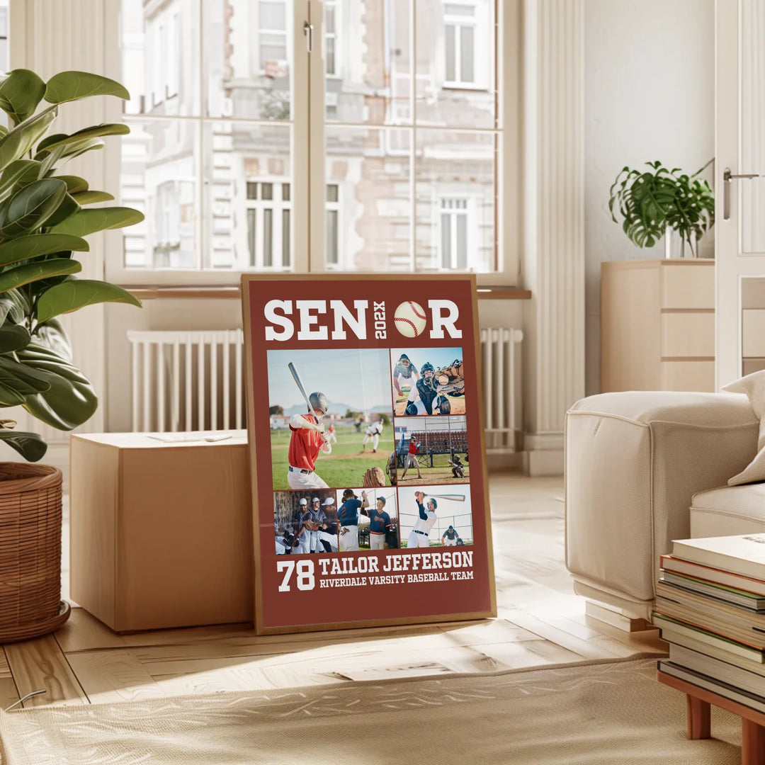 Celebrate your senior’s journey with our Custom Baseball Senior Night Poster. Featuring your favorite photos, player’s name, jersey number, and graduation year, this collage-style print captures the highlights of their baseball story in one unforgettable tribute.