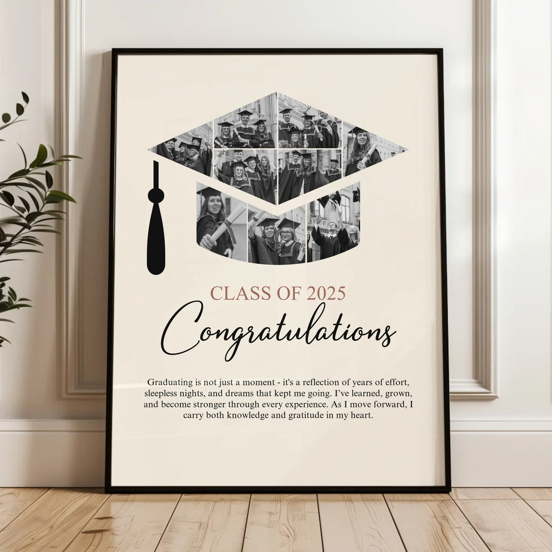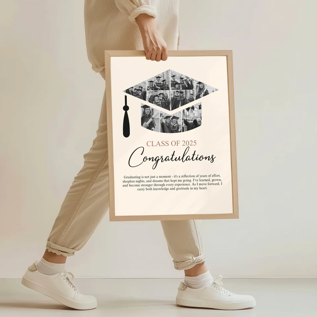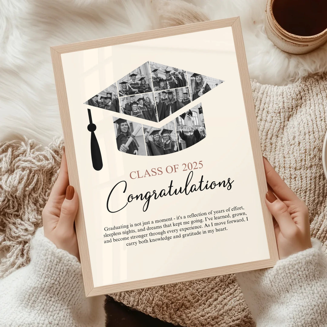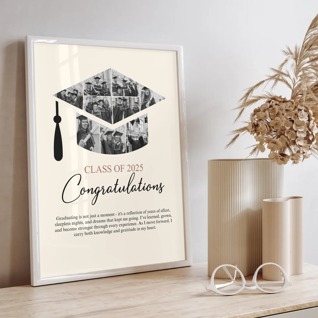 Celebrate your senior’s incredible journey with our Graduation Cap Photo Collage Poster - a custom design shaped like a graduation cap and filled with your favorite photos. From first-day memories to final achievements, this one-of-a-kind print captures it all in a meaningful and creative way.