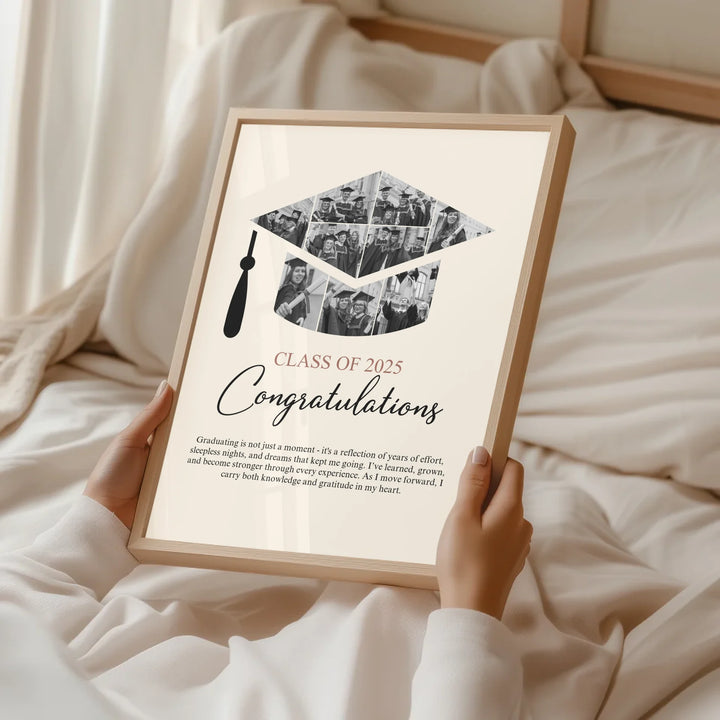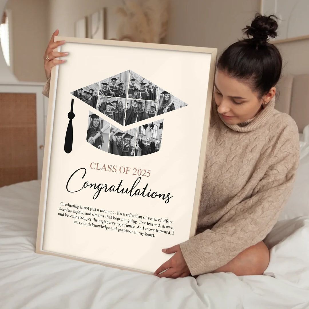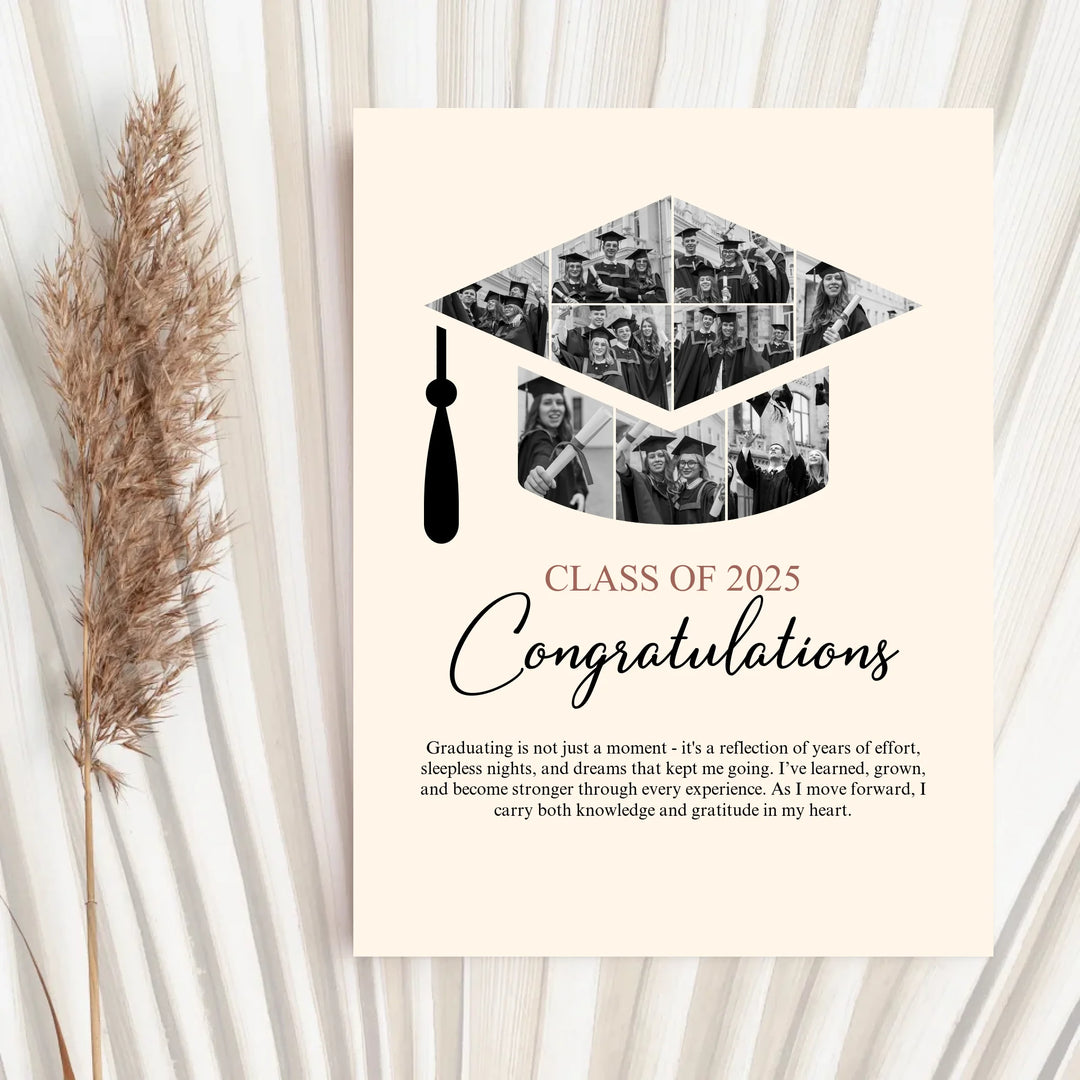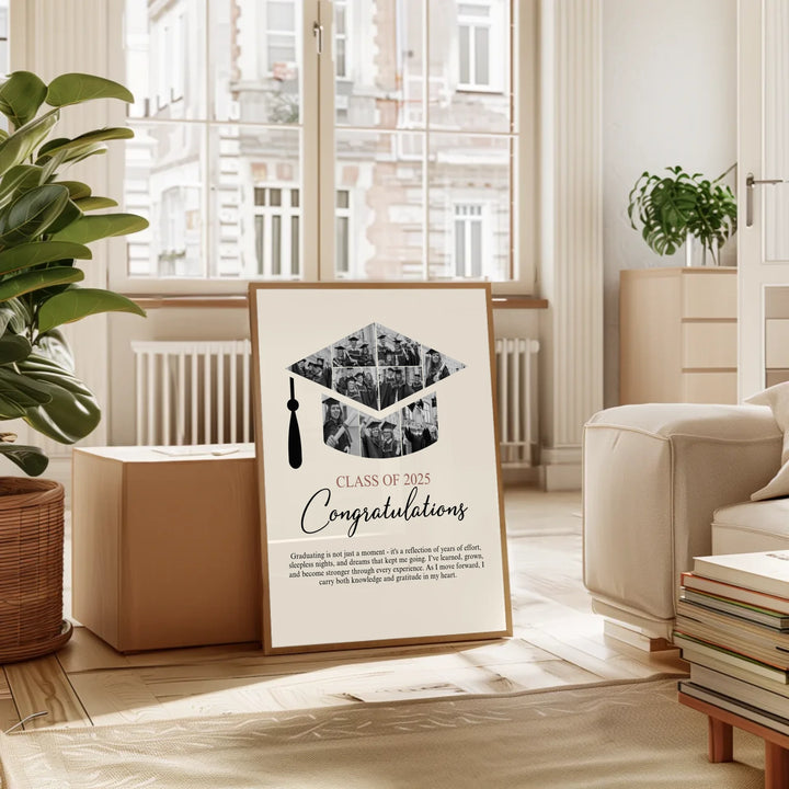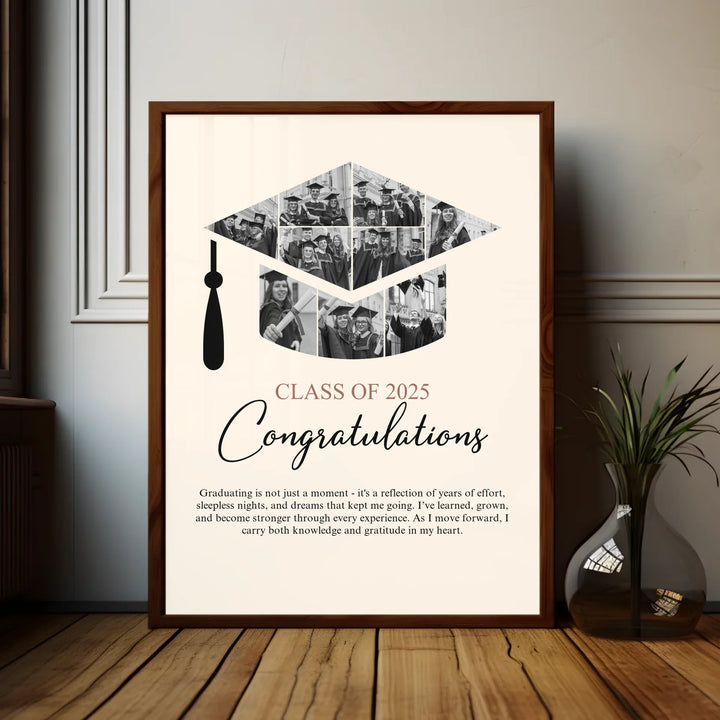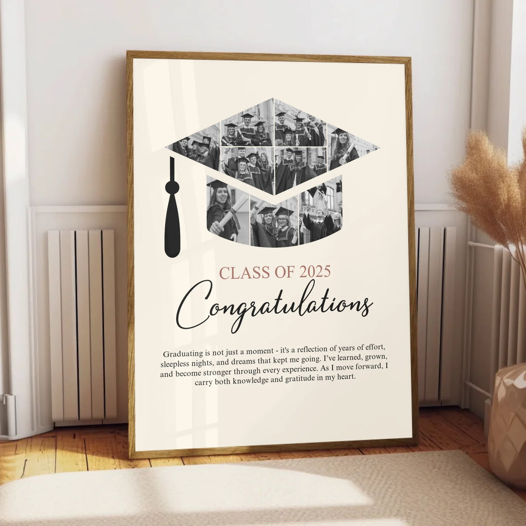 Celebrate your senior’s incredible journey with our Graduation Cap Photo Collage Poster - a custom design shaped like a graduation cap and filled with your favorite photos. From first-day memories to final achievements, this one-of-a-kind print captures it all in a meaningful and creative way.