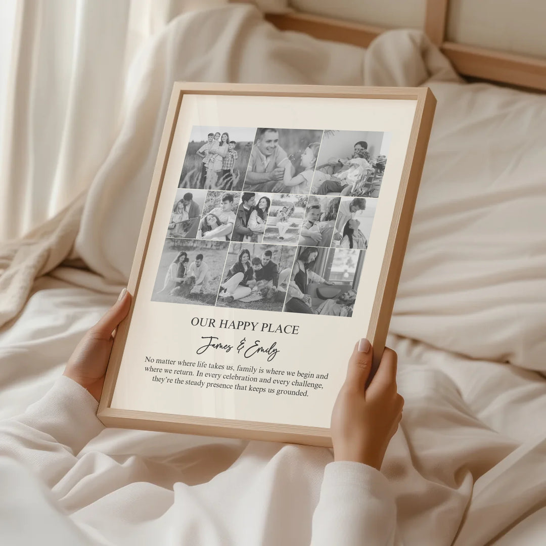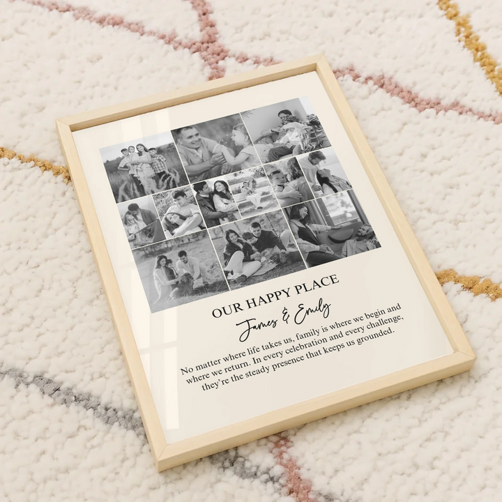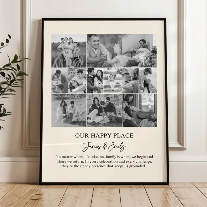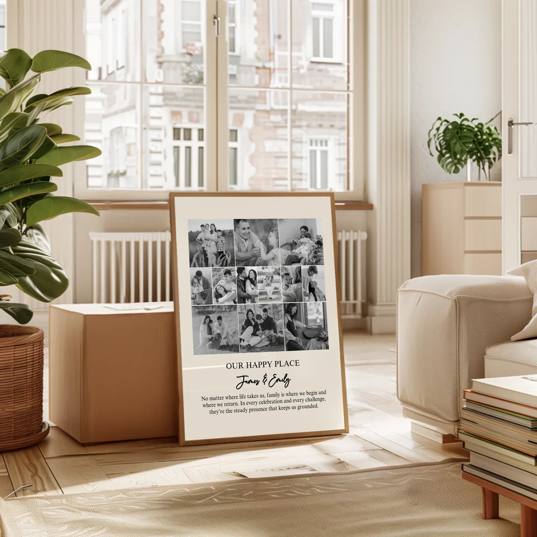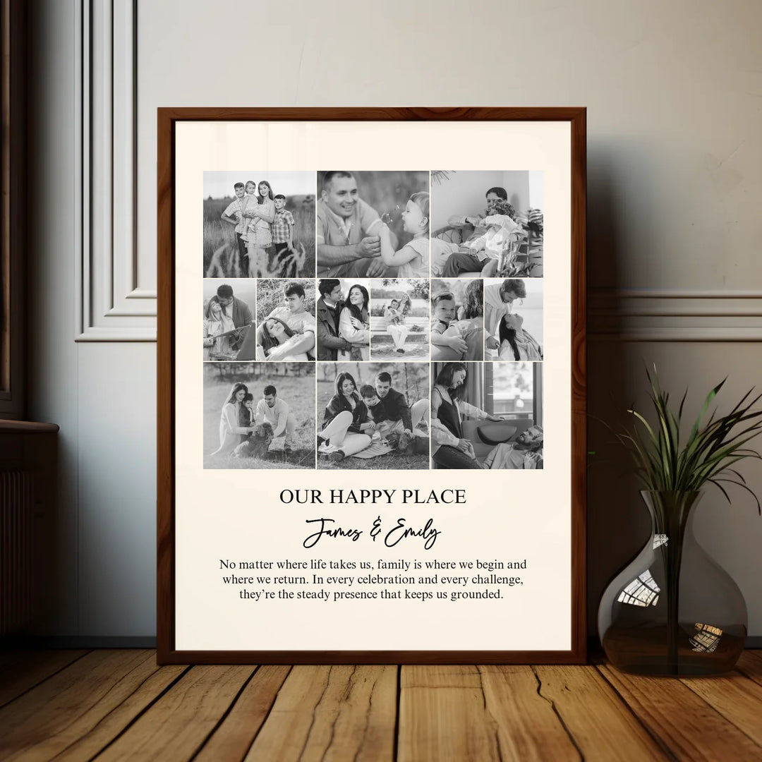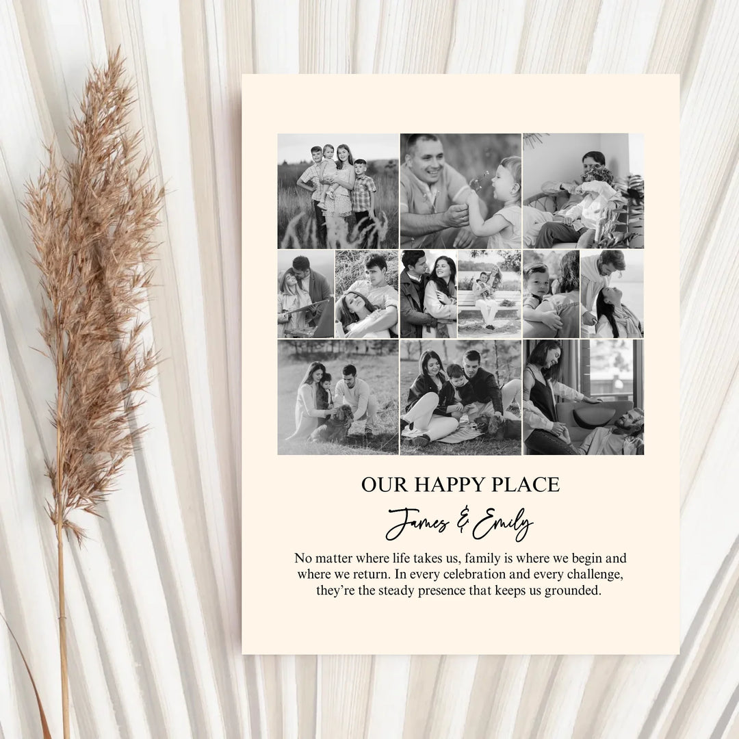 Celebrate the heart of your home with our Custom Family Photo Collage Print — a beautifully personalized piece that brings your favorite moments together in one elegant design. Featuring your chosen photos and family name, this wall art is a timeless tribute to love, laughter, and togetherness.
