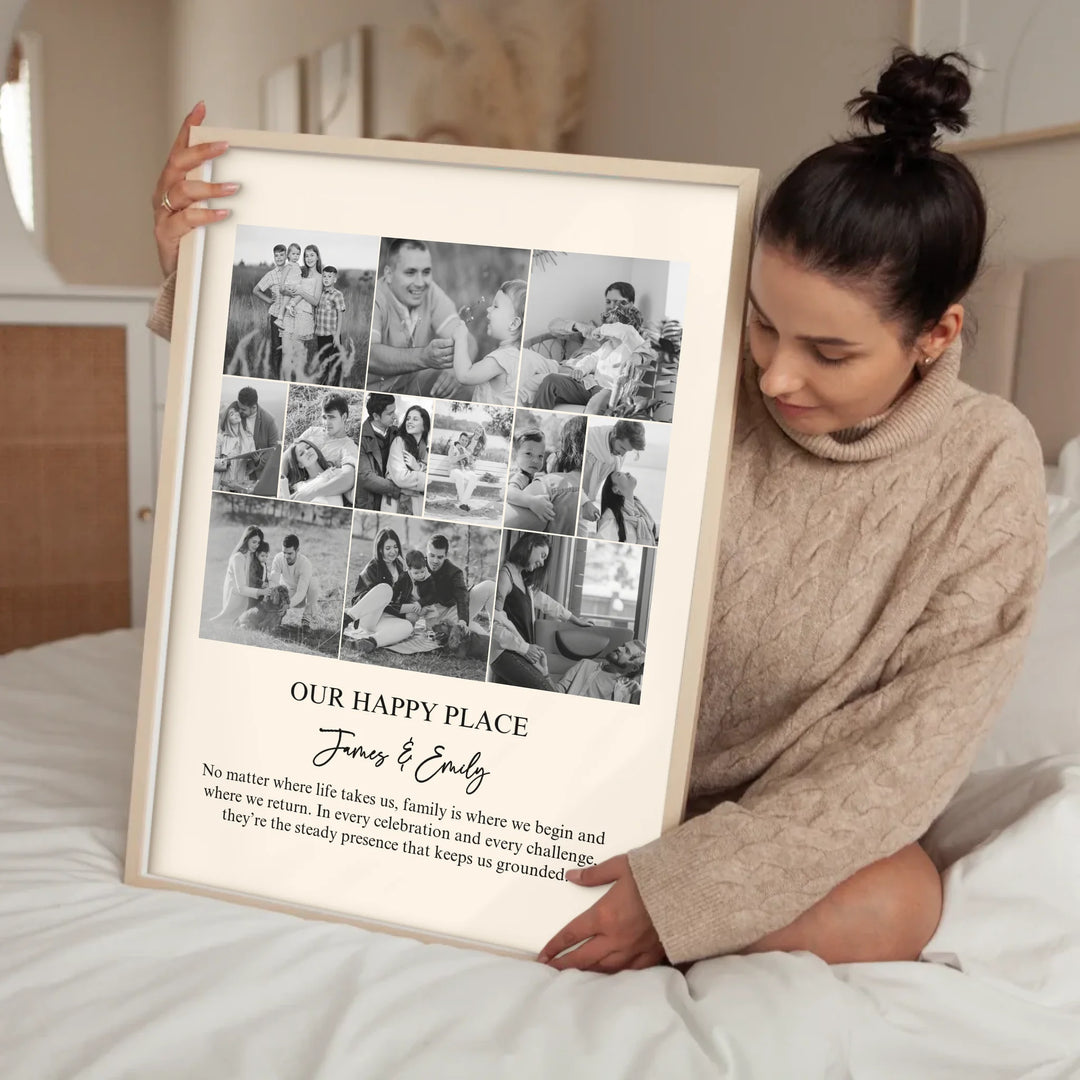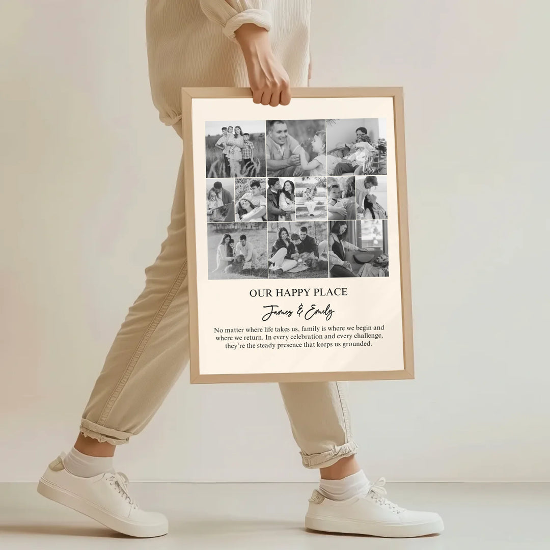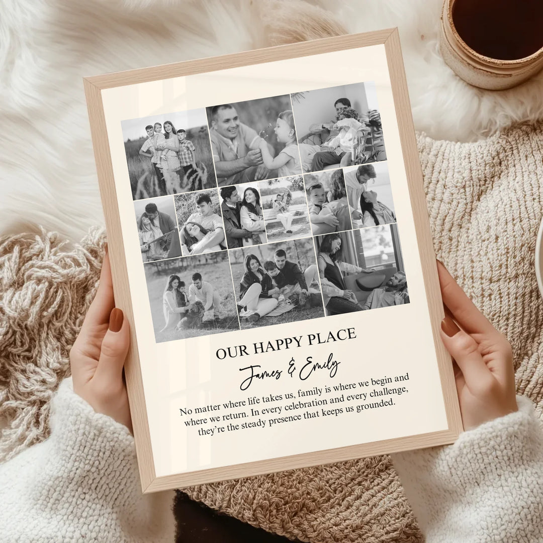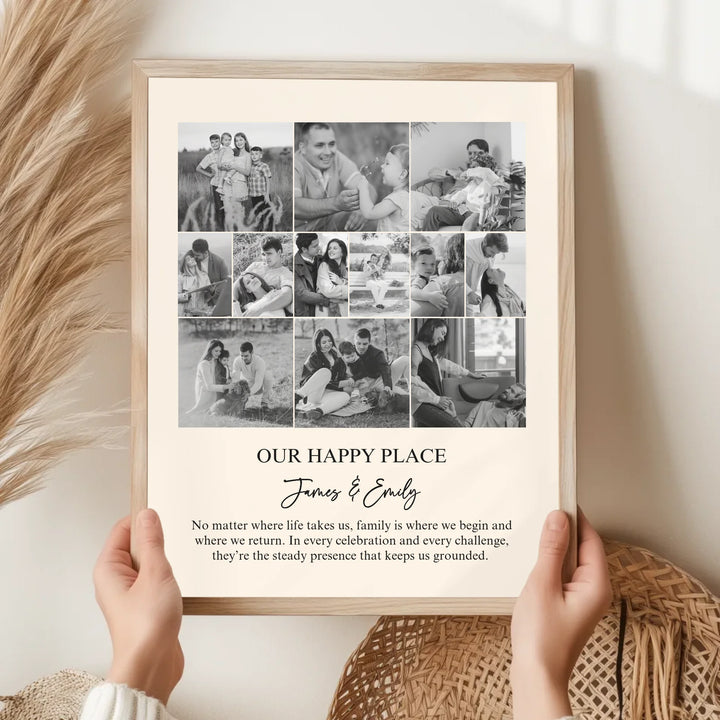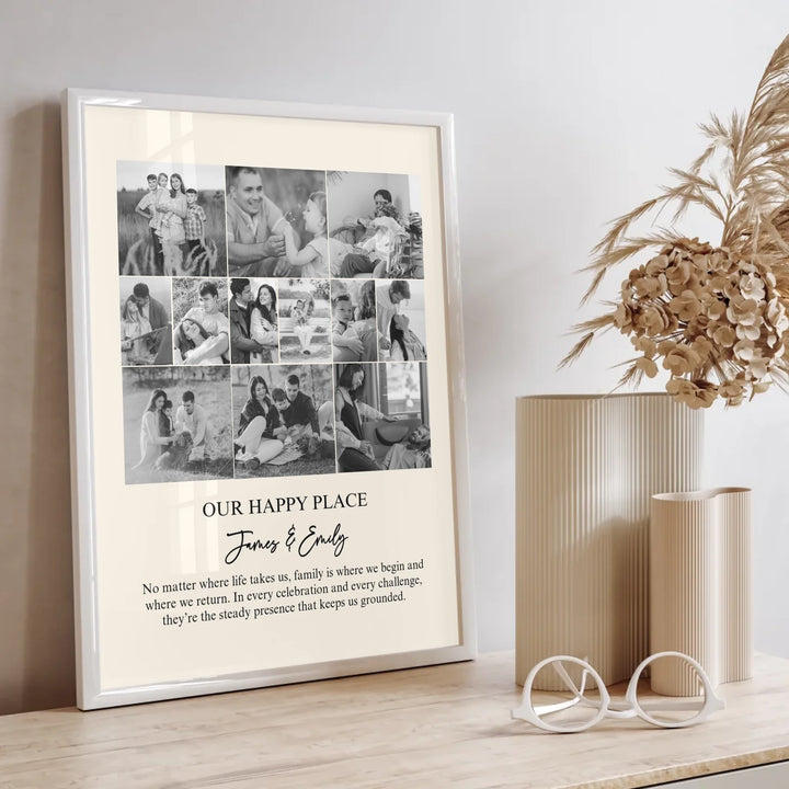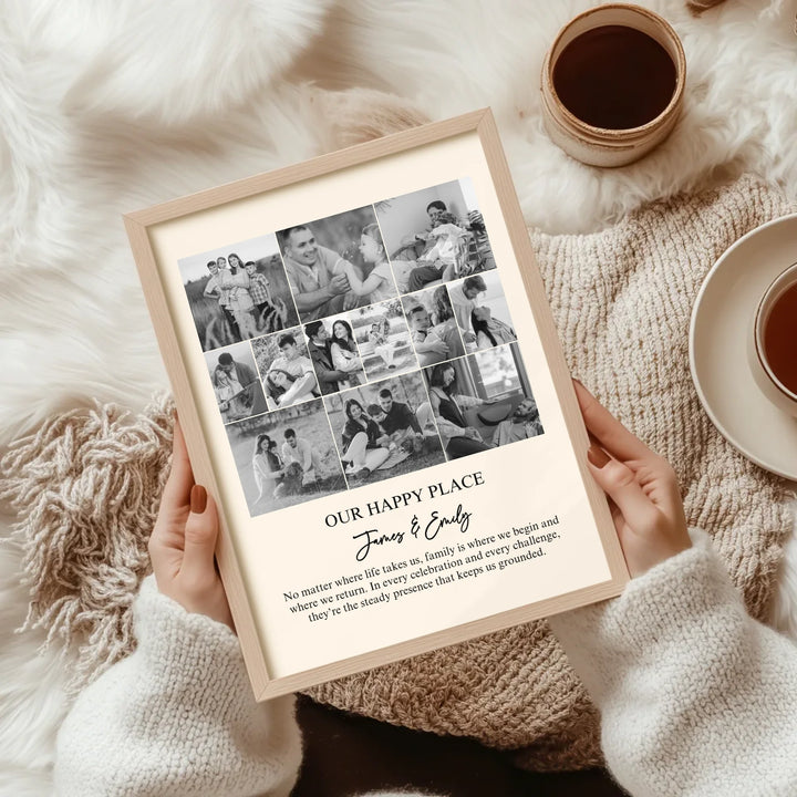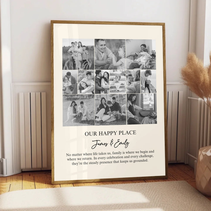 Celebrate the heart of your home with our Custom Family Photo Collage Print — a beautifully personalized piece that brings your favorite moments together in one elegant design. Featuring your chosen photos and family name, this wall art is a timeless tribute to love, laughter, and togetherness.