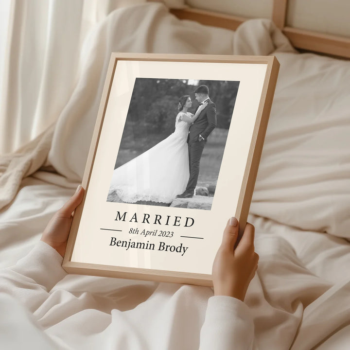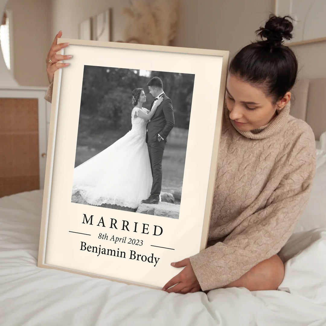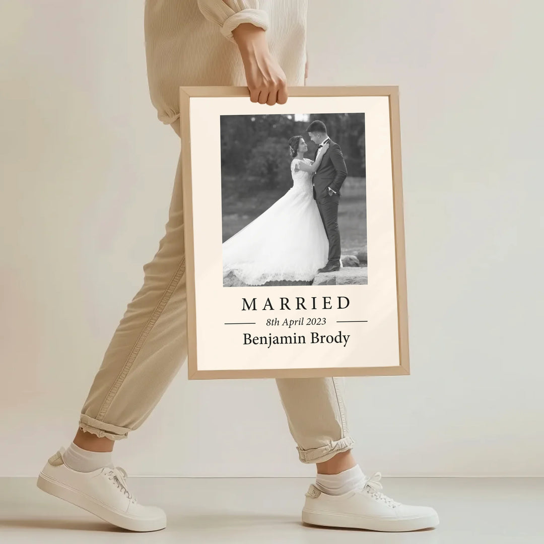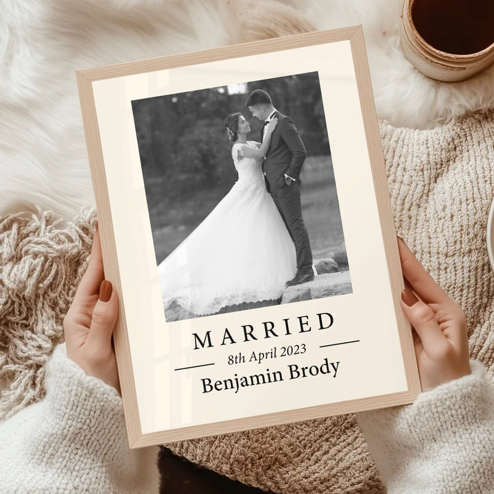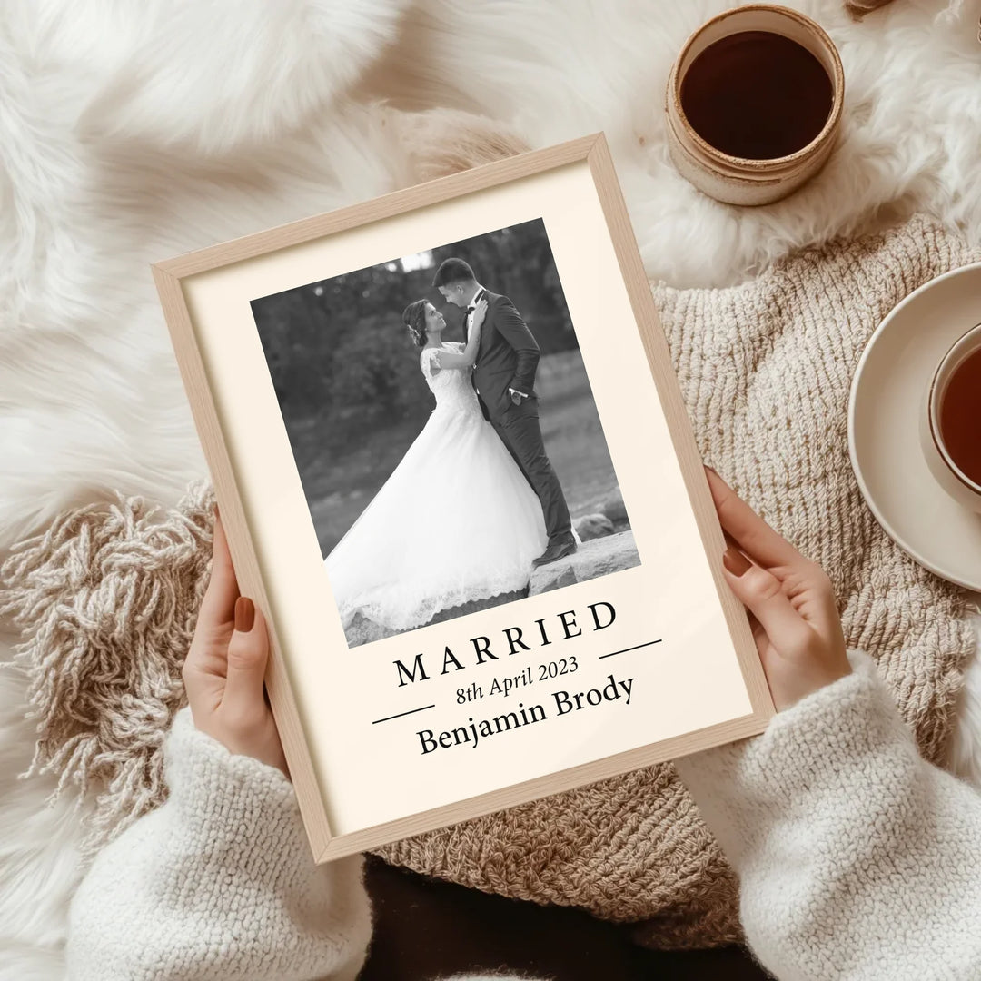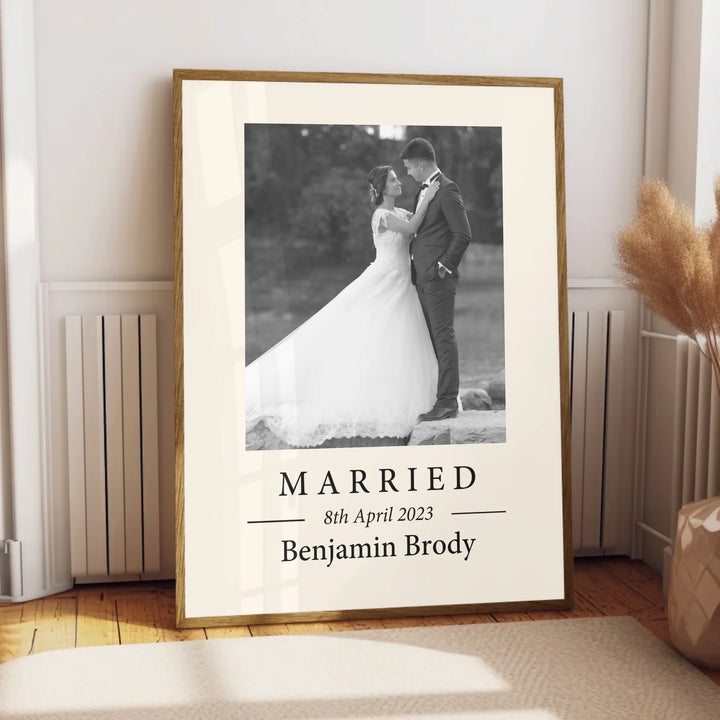 Celebrate your love story with our Custom Wedding Photo Poster — a beautifully framed keepsake featuring your favorite wedding photo, names, and special date. Elegant and timeless, this personalized print is the perfect way to honor your big day and the memories that mean the most.