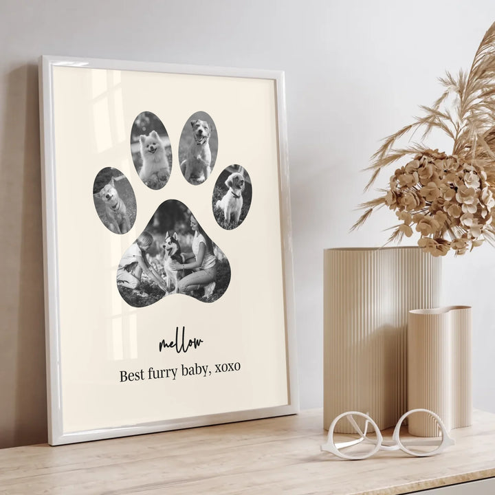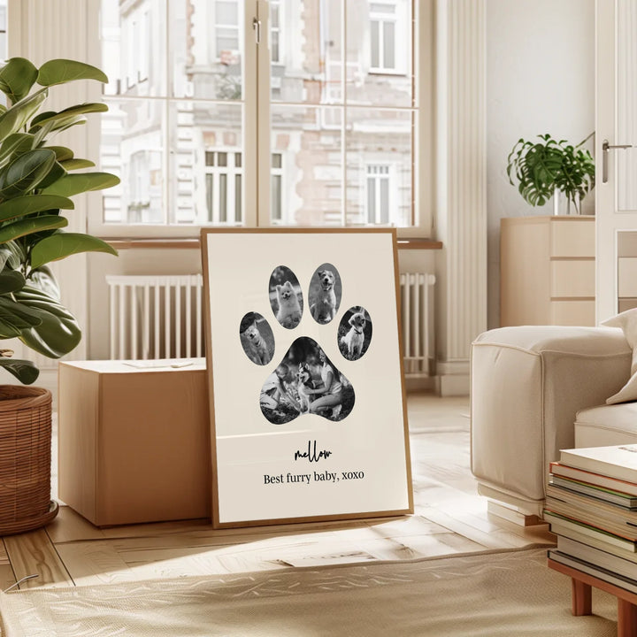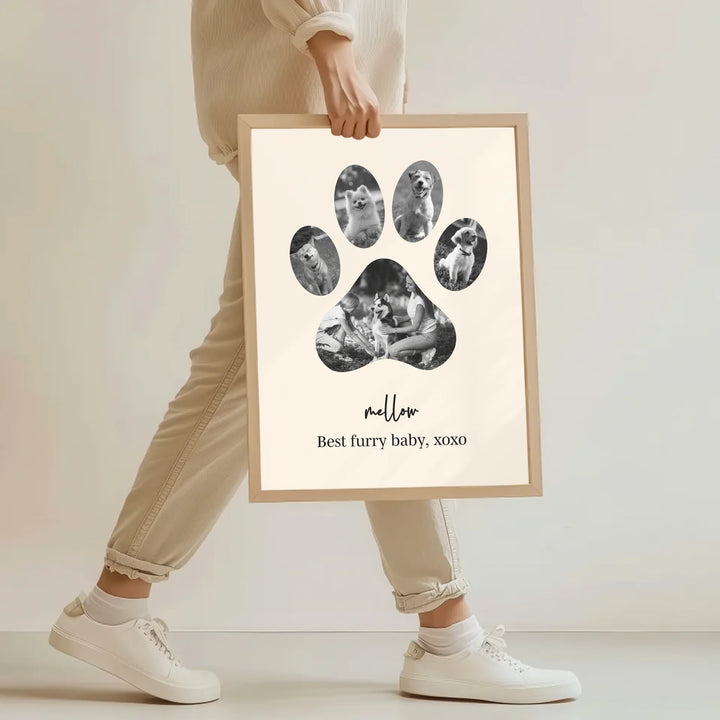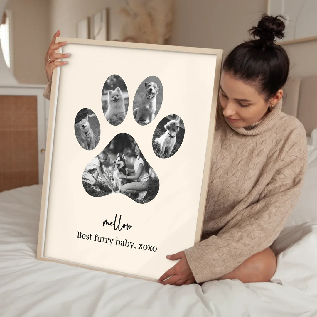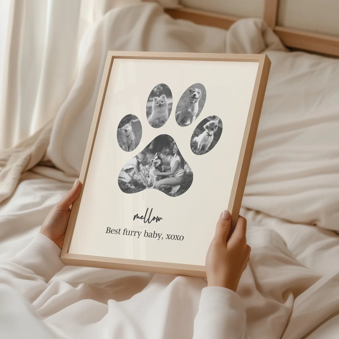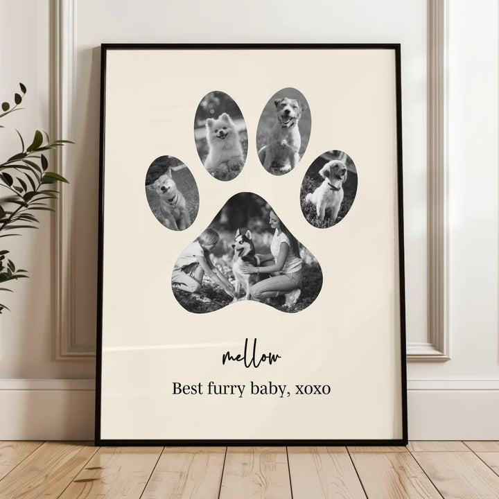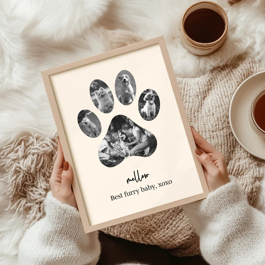 Celebrate the unconditional love of your furry friend with our Dog Paw Photo Collage — a personalized piece designed in the shape of a paw, filled with your favorite memories together. Whether it's to honor a beloved pet or to gift a proud dog parent, this custom print is the perfect tribute to the bond you share.