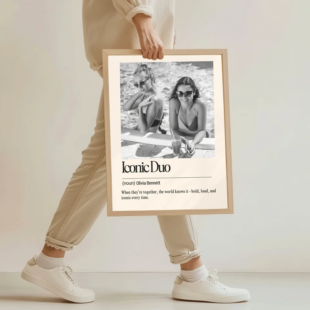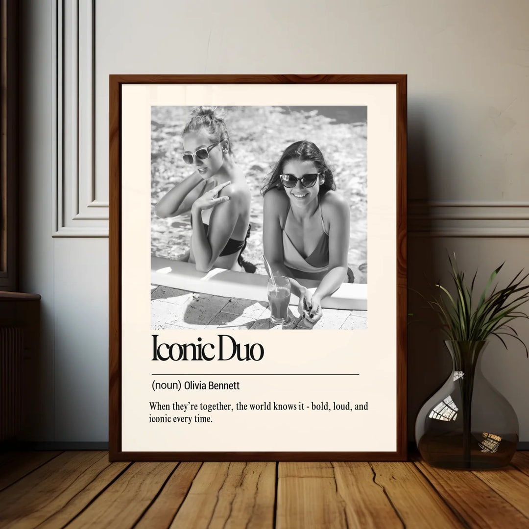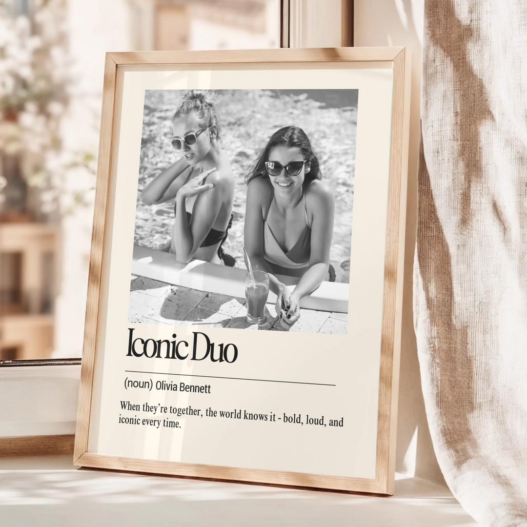 Some duos are just built different. Whether you're the peanut butter to their jelly or the wild to their calm, this Iconic Duo Definition Poster turns your one-of-a-kind bond into wall-worthy art.