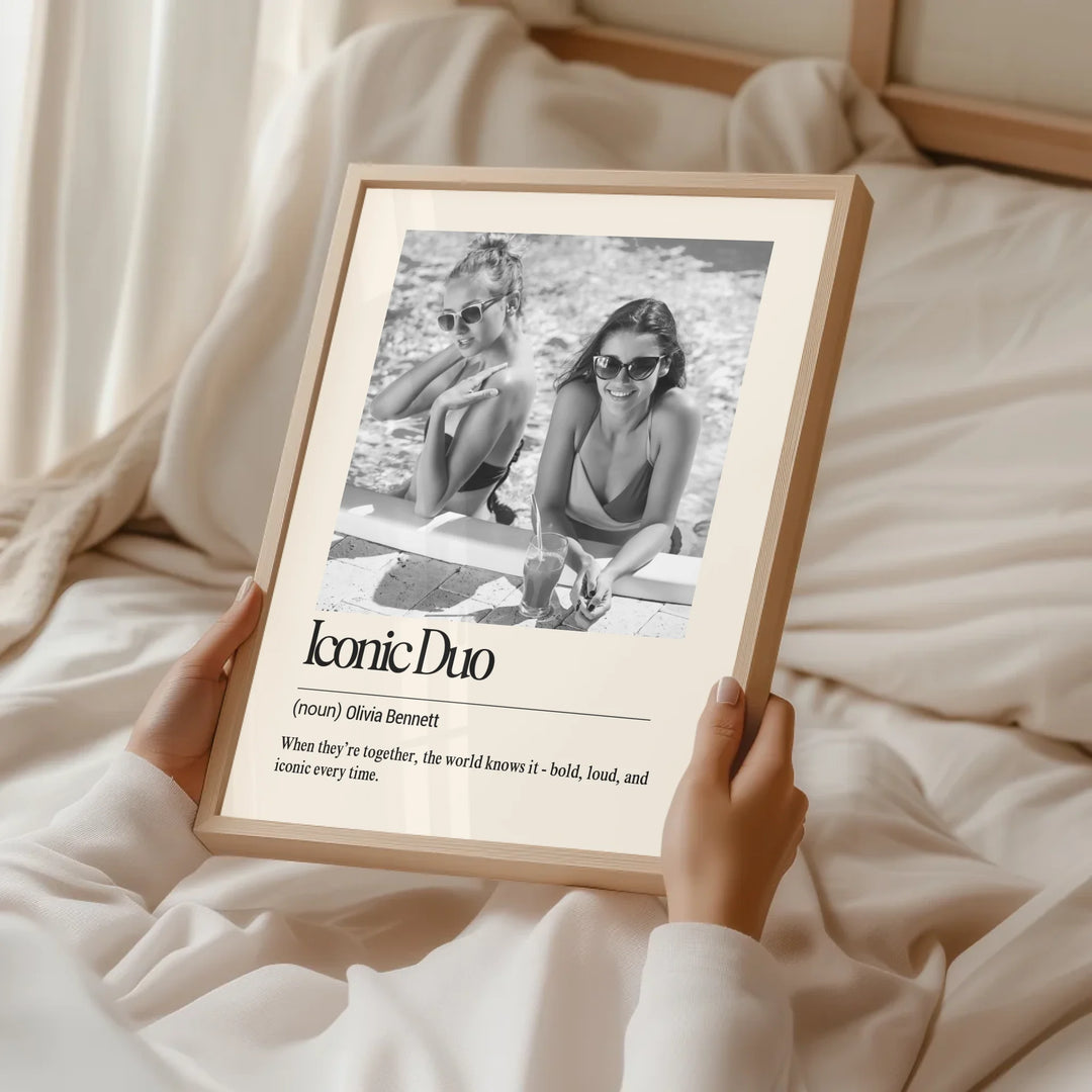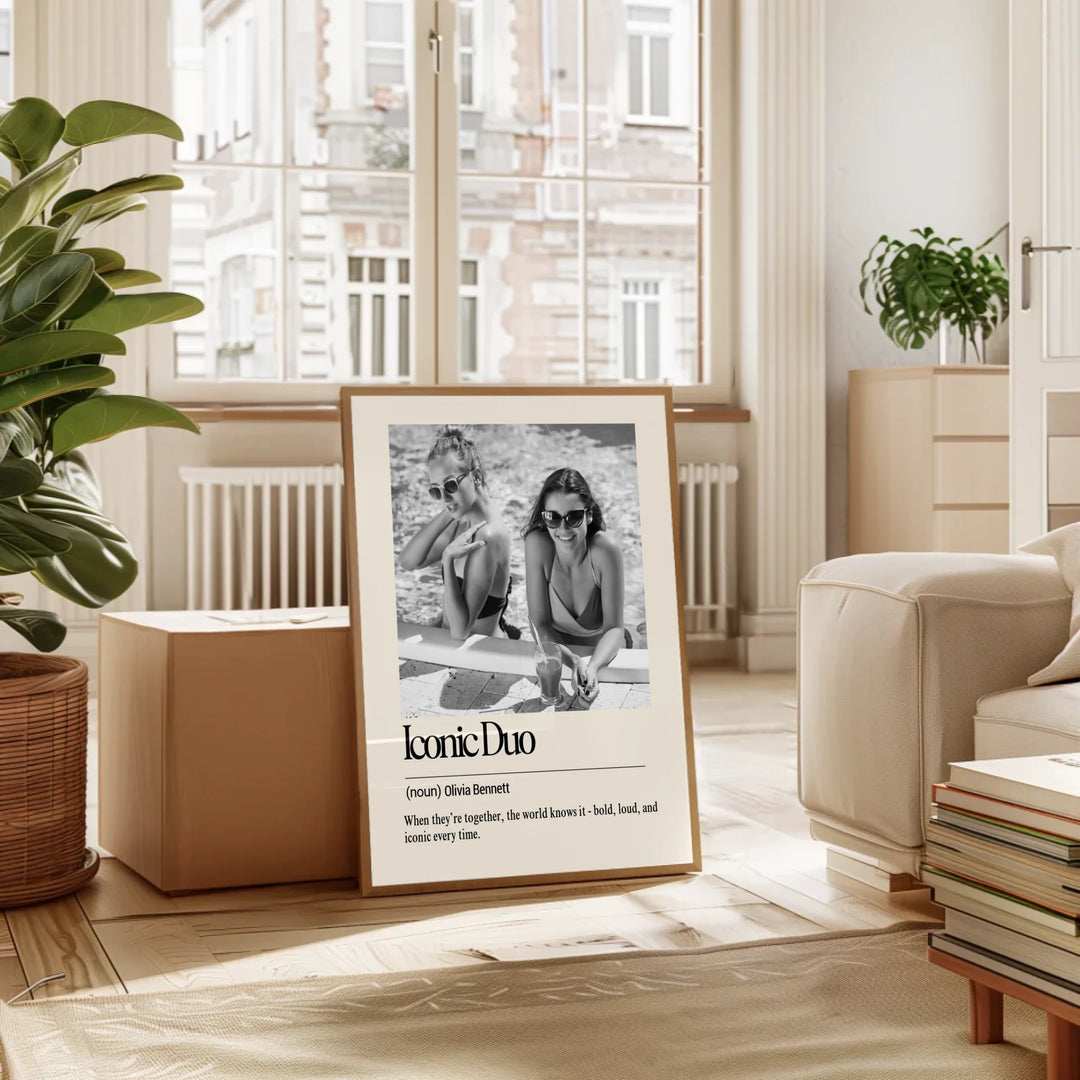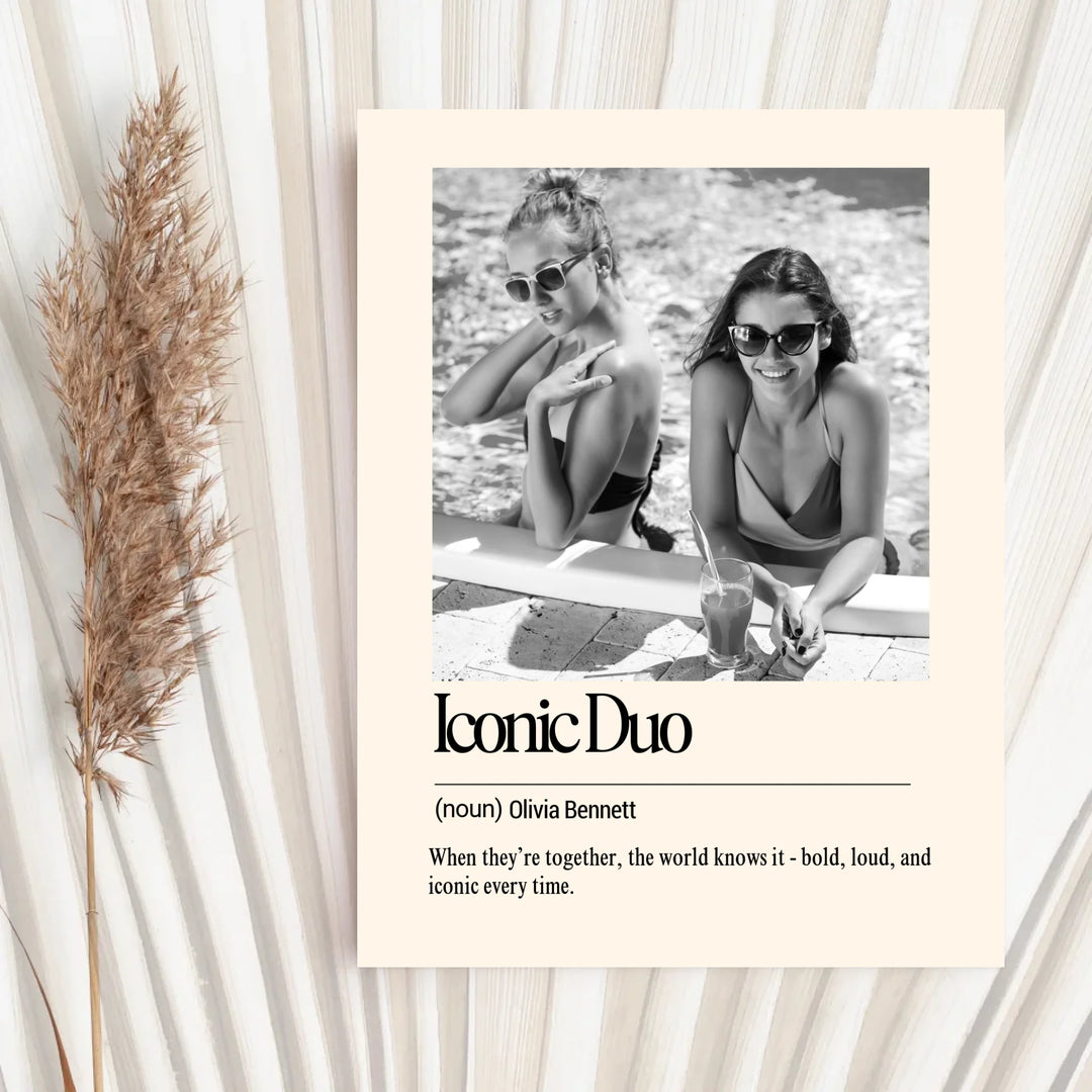 Some duos are just built different. Whether you're the peanut butter to their jelly or the wild to their calm, this Iconic Duo Definition Poster turns your one-of-a-kind bond into wall-worthy art.