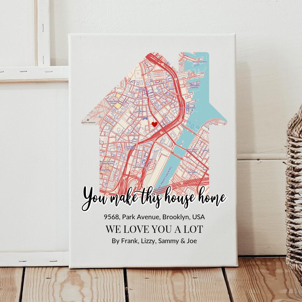 Personalised Home Map Canvas ~ You Make This House Home š”