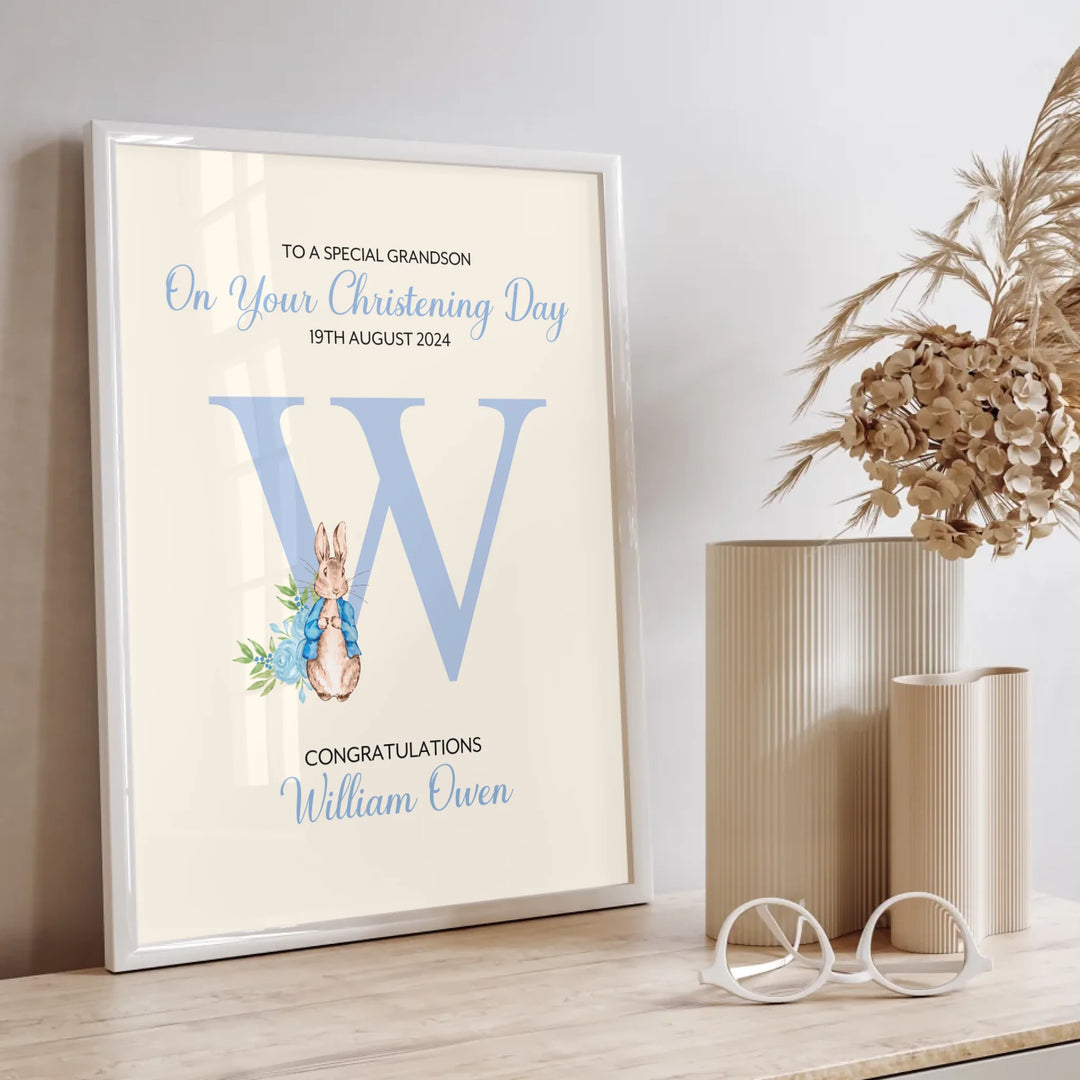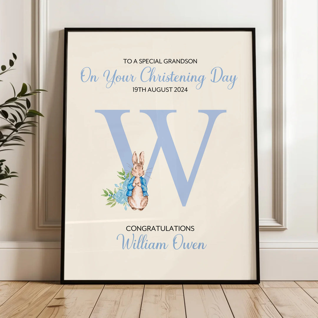 Personalized Peter Rabbit Grandson Christening Gift, Custom Initial Name and ...
