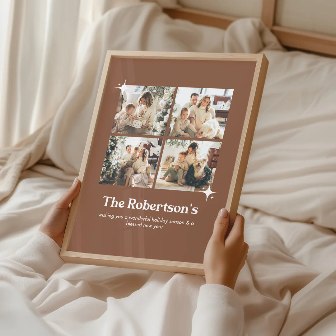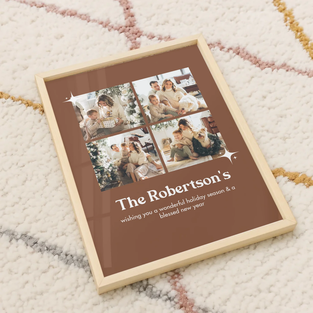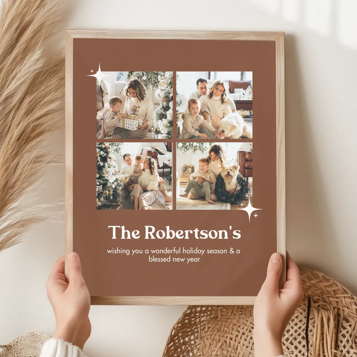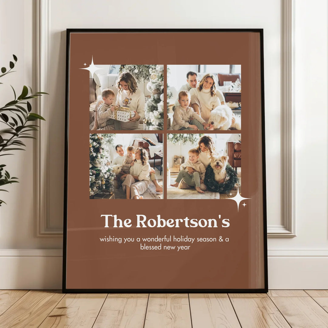 Celebrate the joy of the holidays with our Personalized Christmas Photo Collage Poster - a festive and heartwarming print featuring your favorite moments of the year. Custom-designed with your selected photos and a cheerful holiday message, this collage makes the perfect keepsake for your home or a thoughtful gift for loved ones.