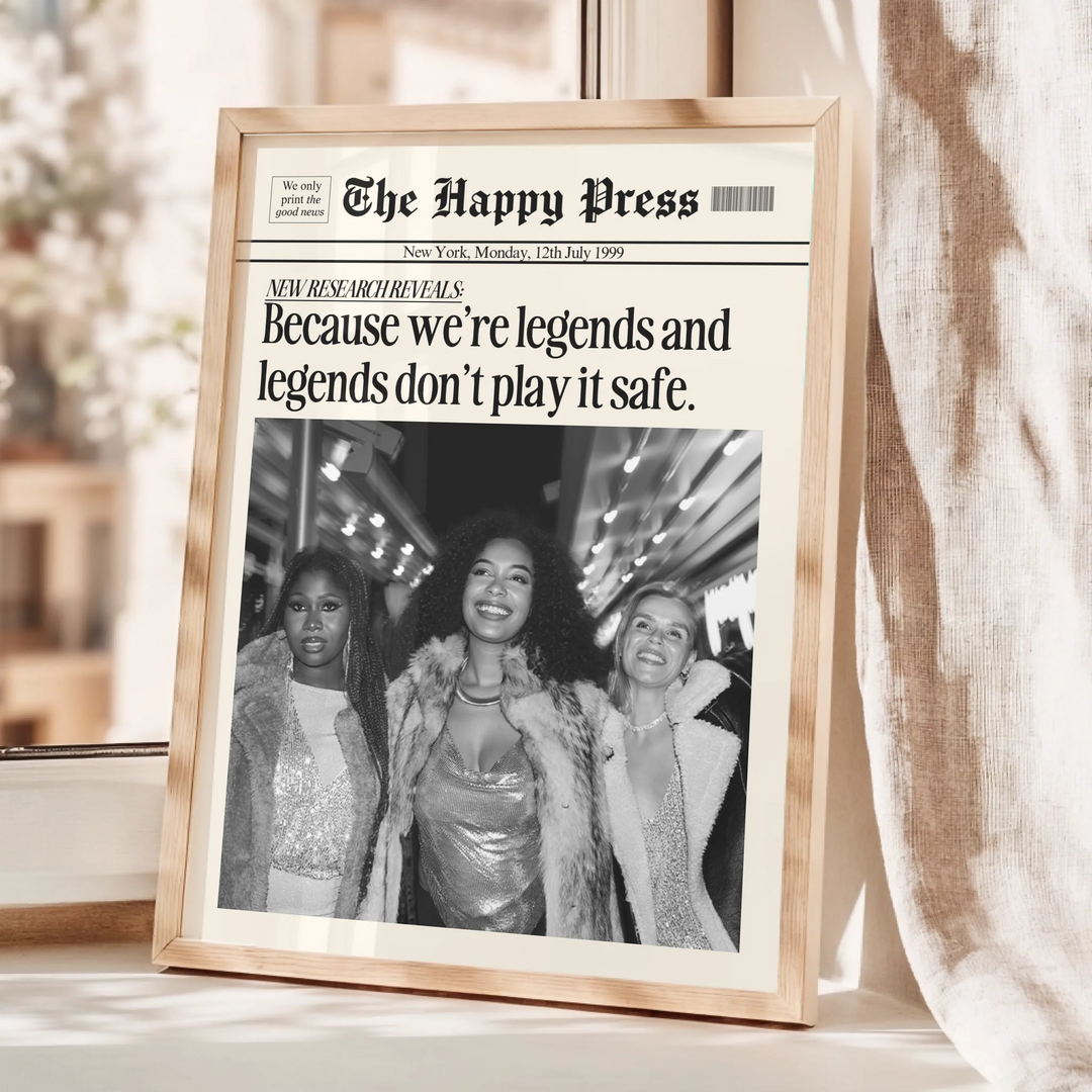 This isn't just wall art — it’s your highlight reel. Designed like a custom newspaper poster, this piece brings your favorite moments, faces, and memories together in one stylish, story-worthy display.