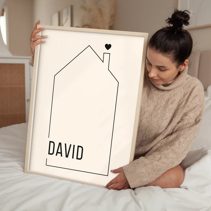 House Shaped Family Customized Design, Cute Minimalist Family Name Wall Art, ...