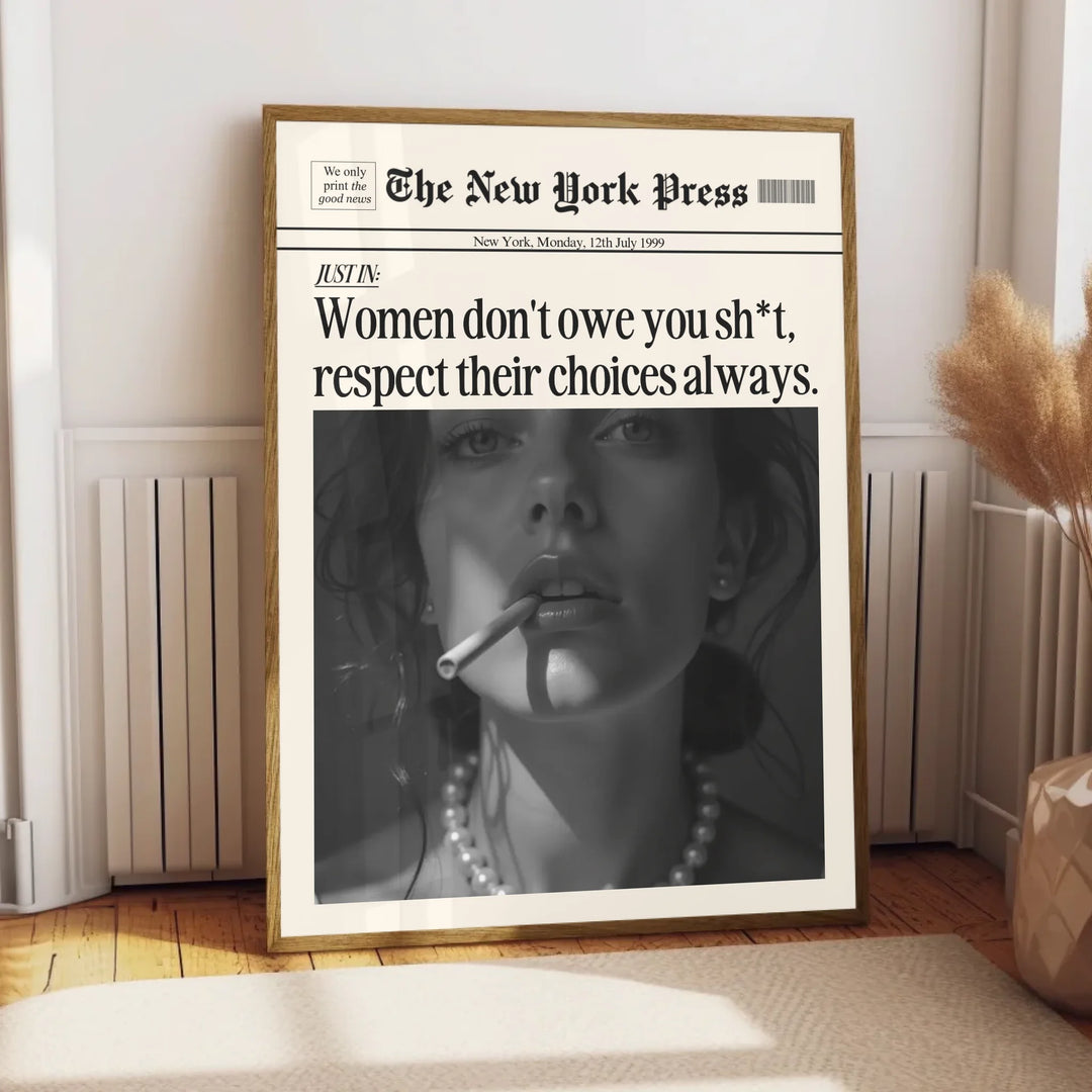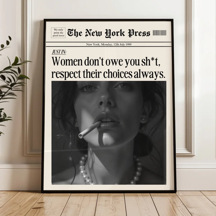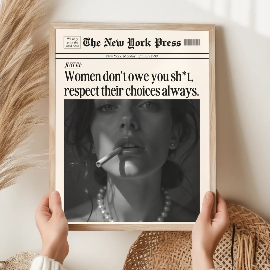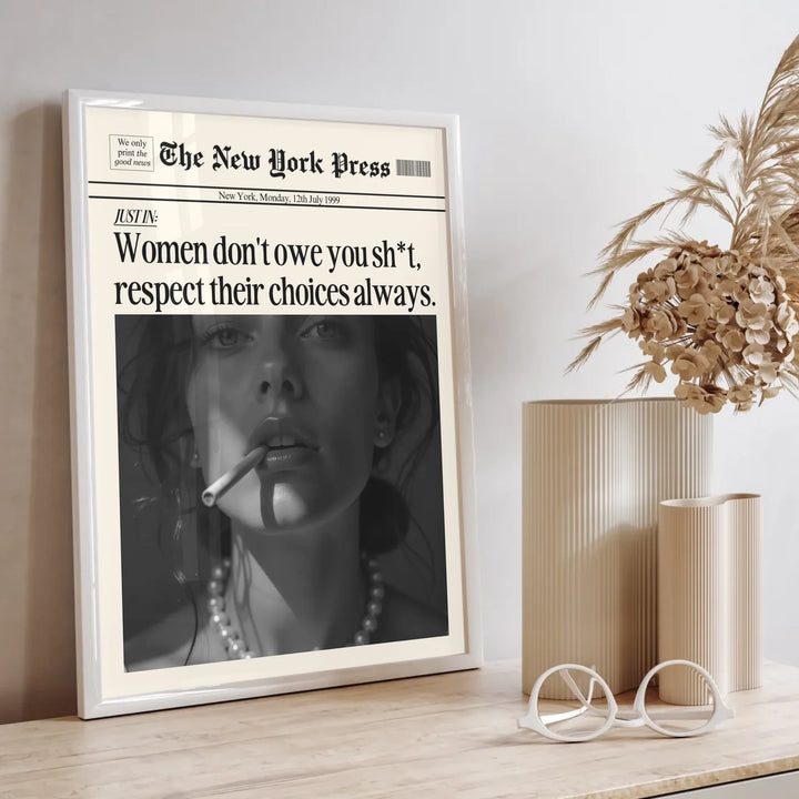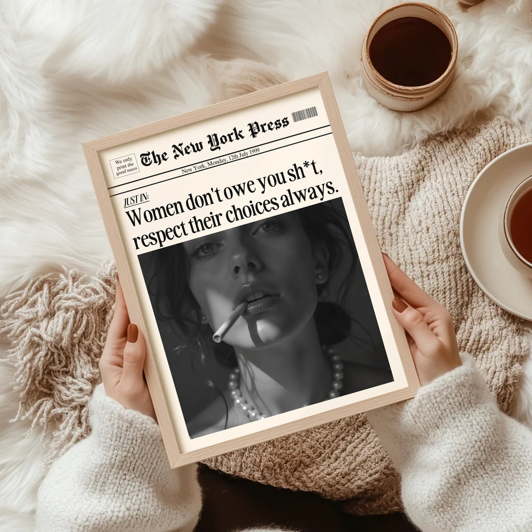 This bold feminist newspaper print is a tribute to unapologetic confidence and unshakable strength. Equal parts retro and rebellious — it’s the perfect blend of art and attitude.