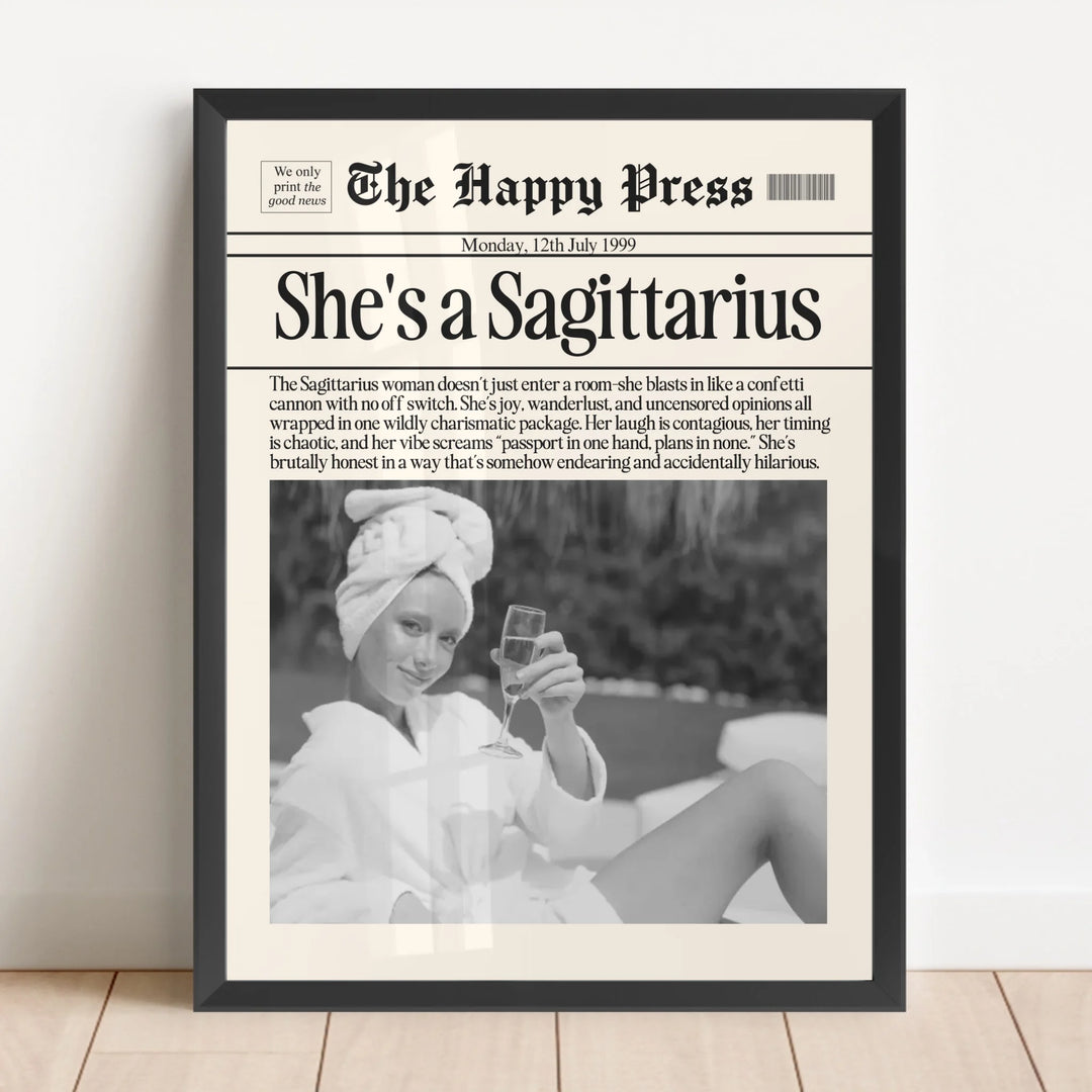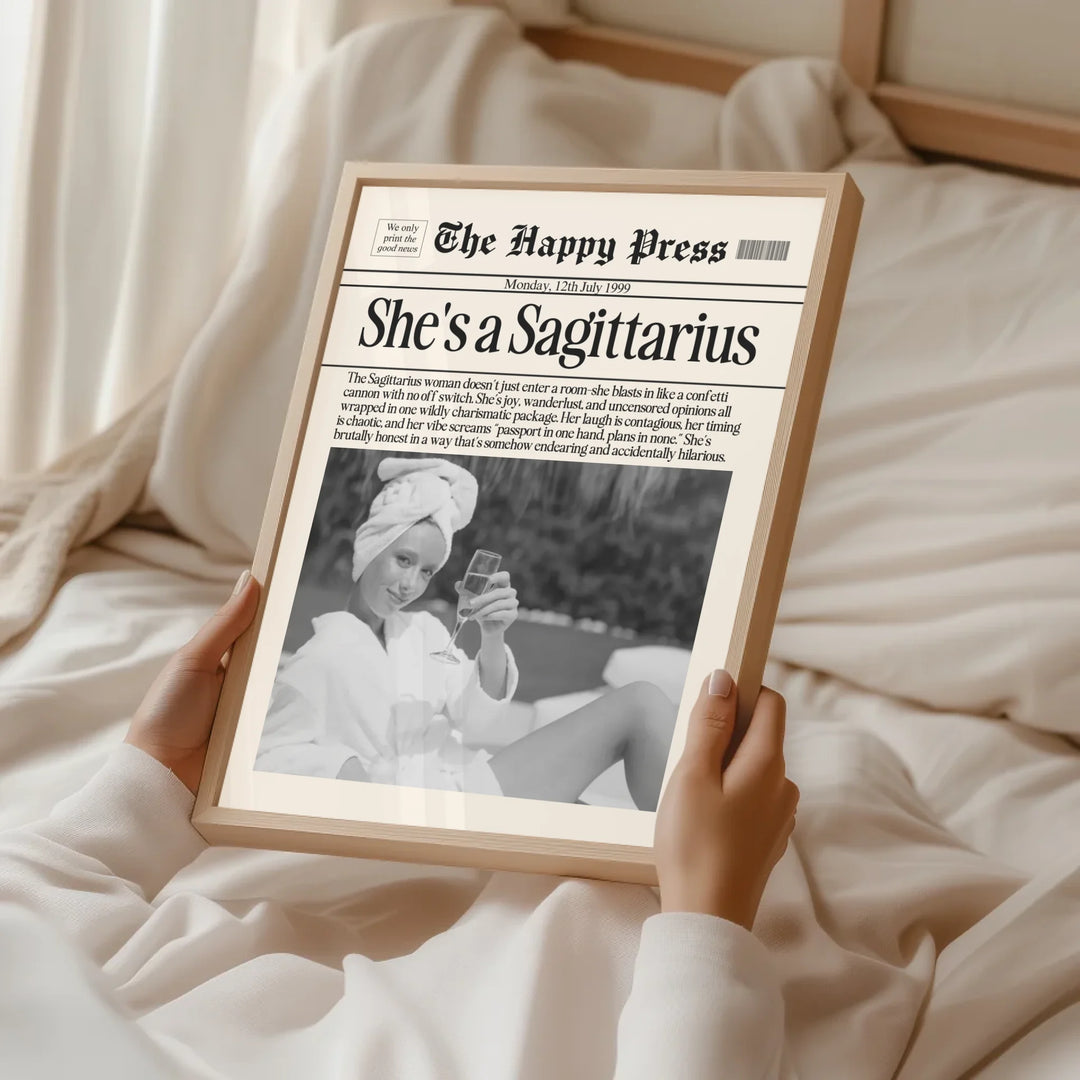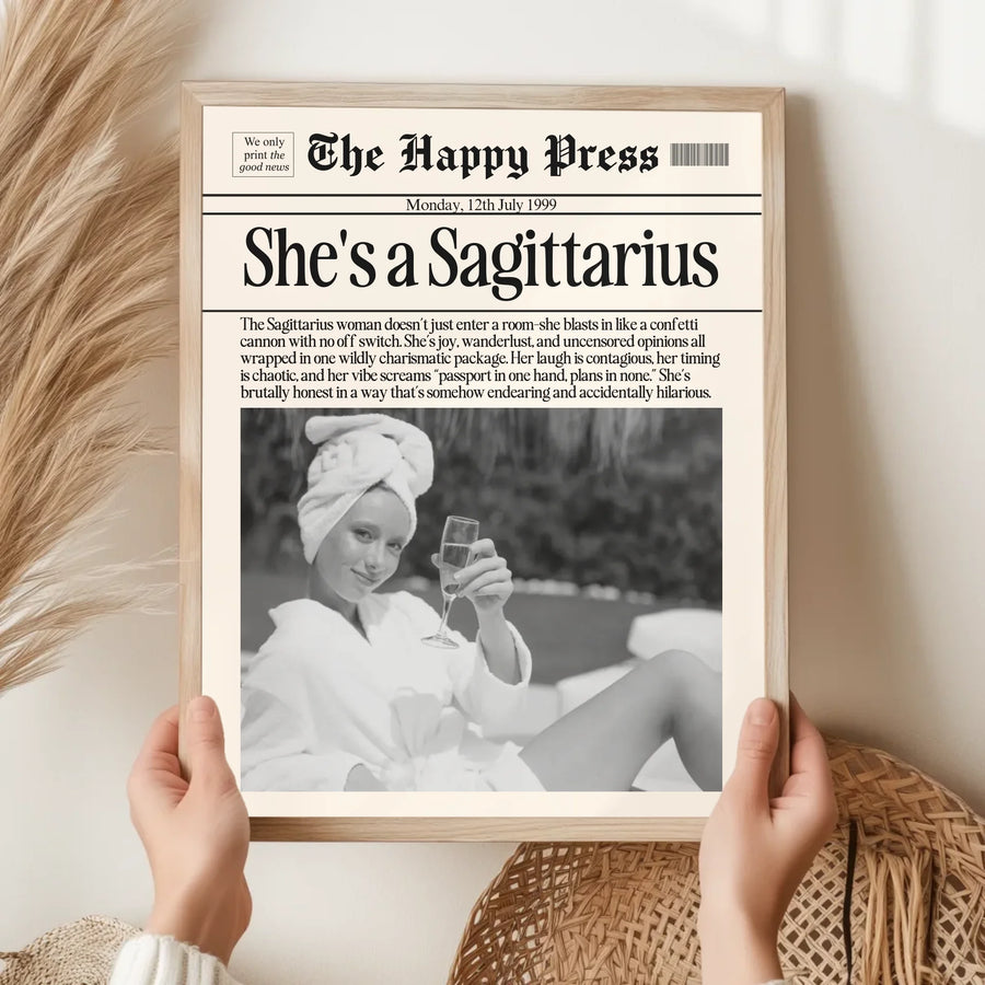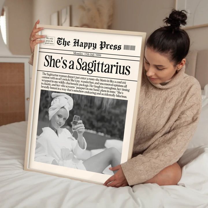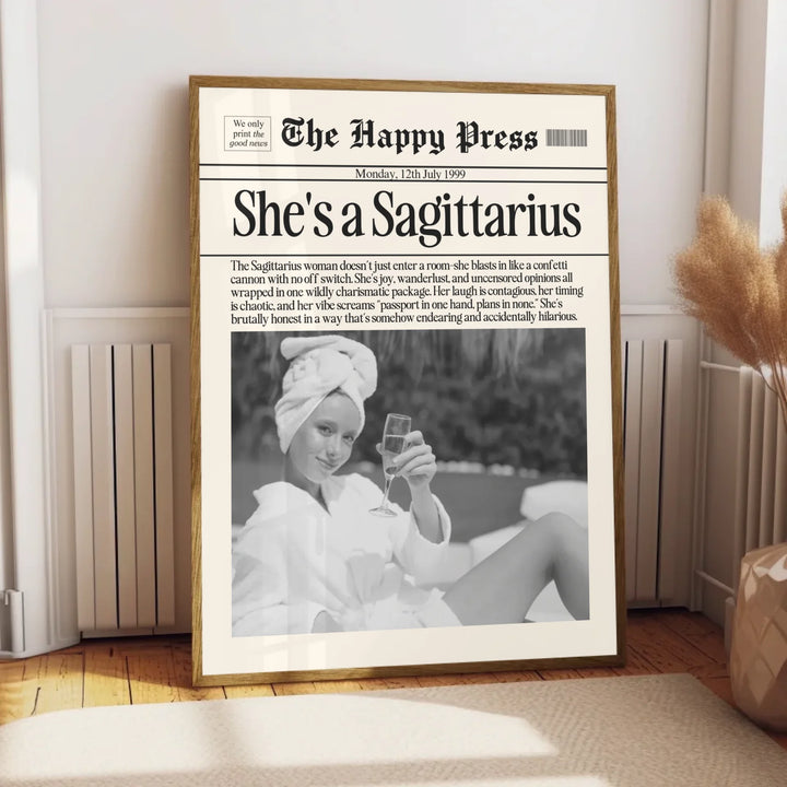 Personalized Sagittarius Print, Wall Art, Girly Astrology Decor, Newspaper Ma...