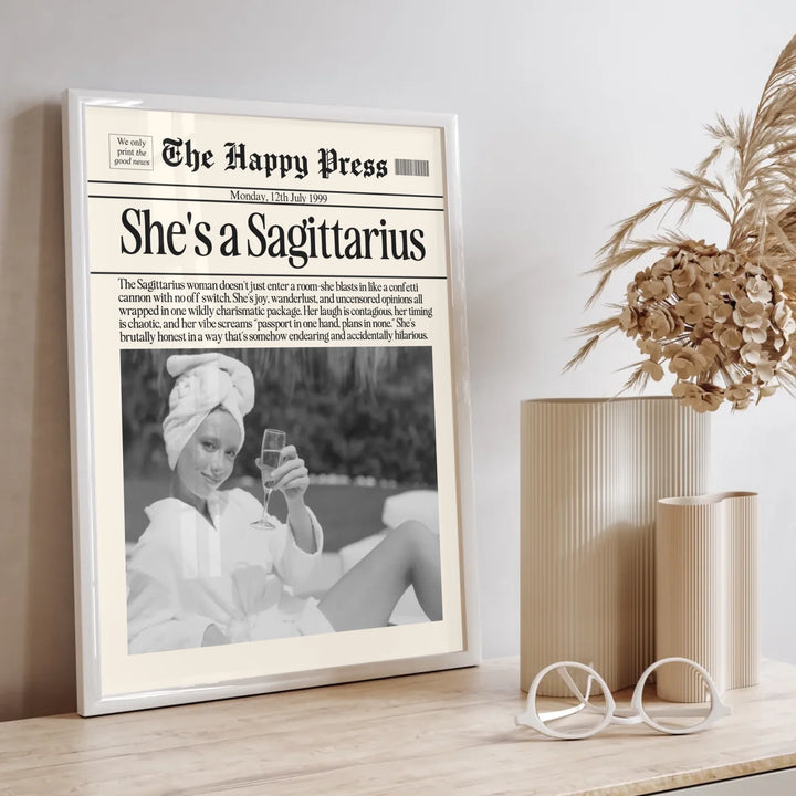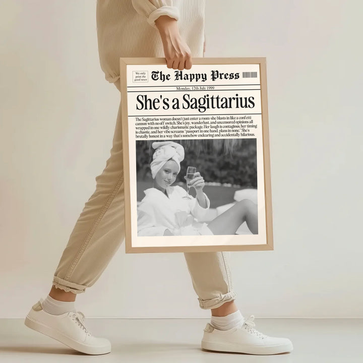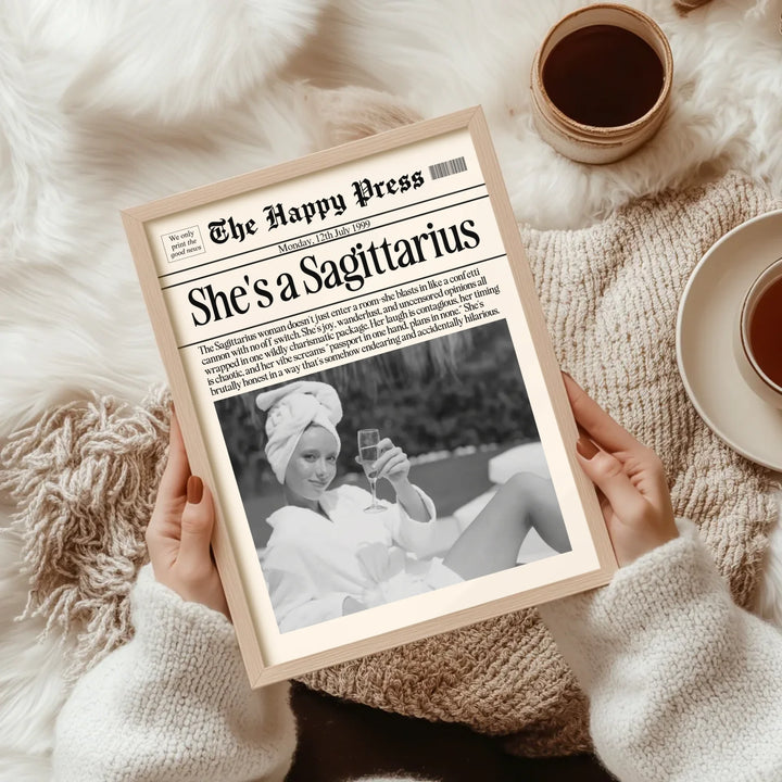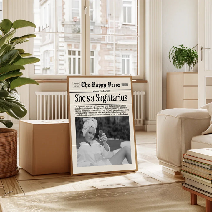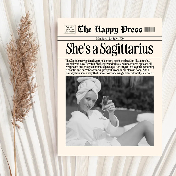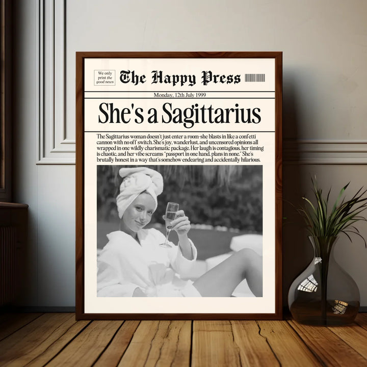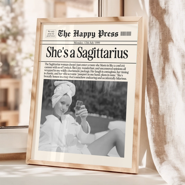Personalized Sagittarius Print, Wall Art, Girly Astrology Decor, Newspaper Ma...